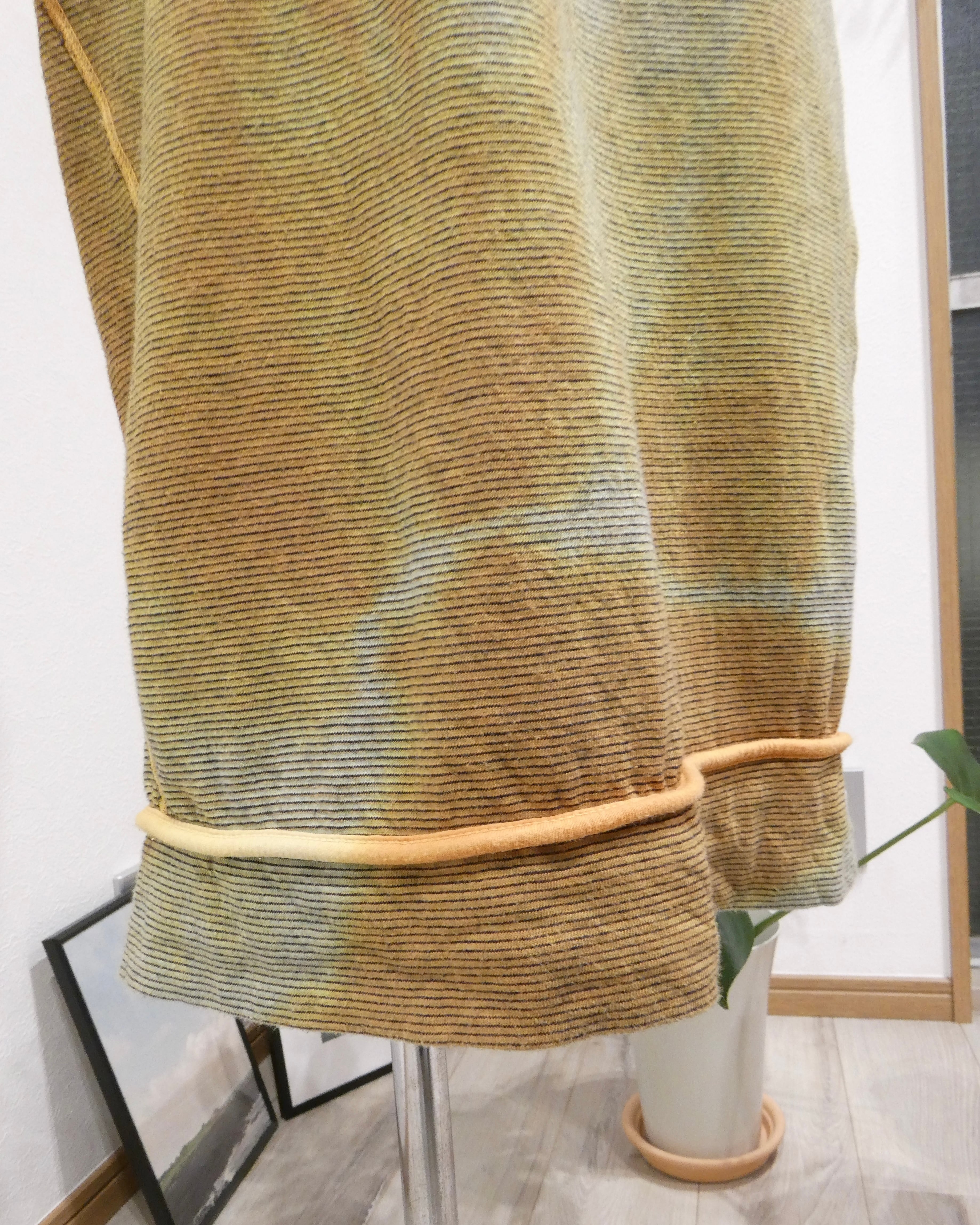 スカートとして着用する場合、ウエストがゆったりになるので折りたたむようにして紐で結んでいただくと綺麗なシルエットになりました。