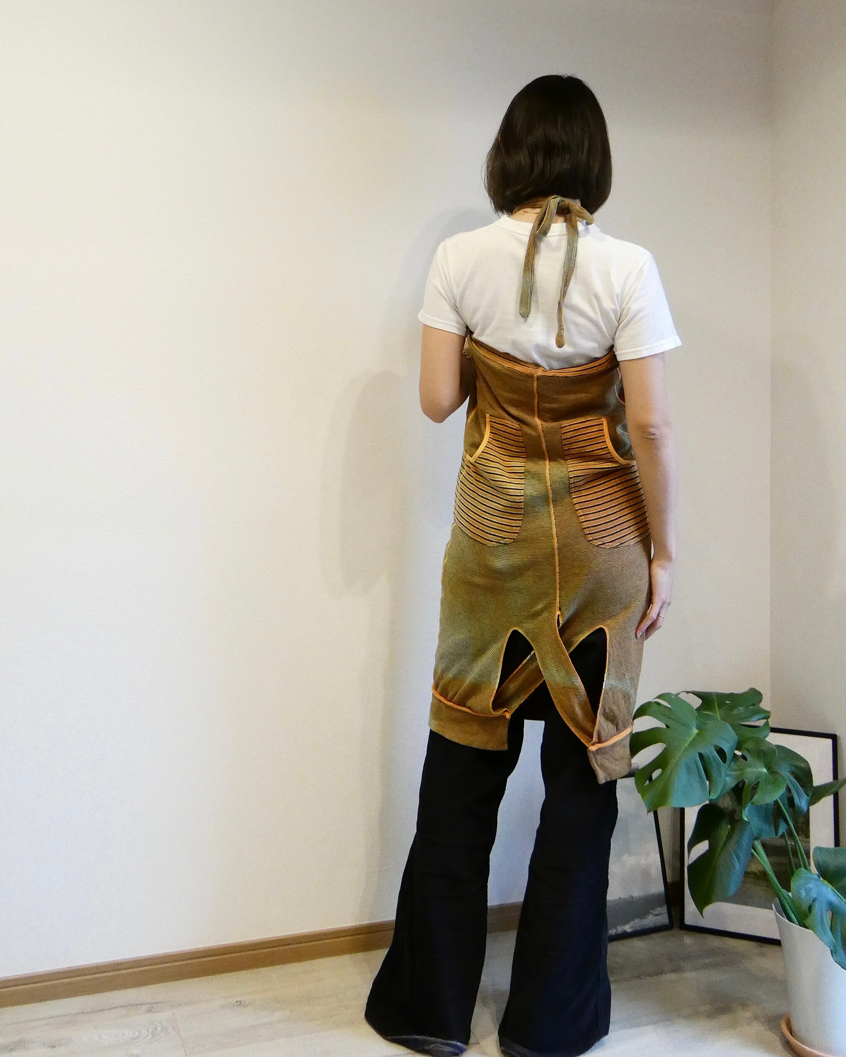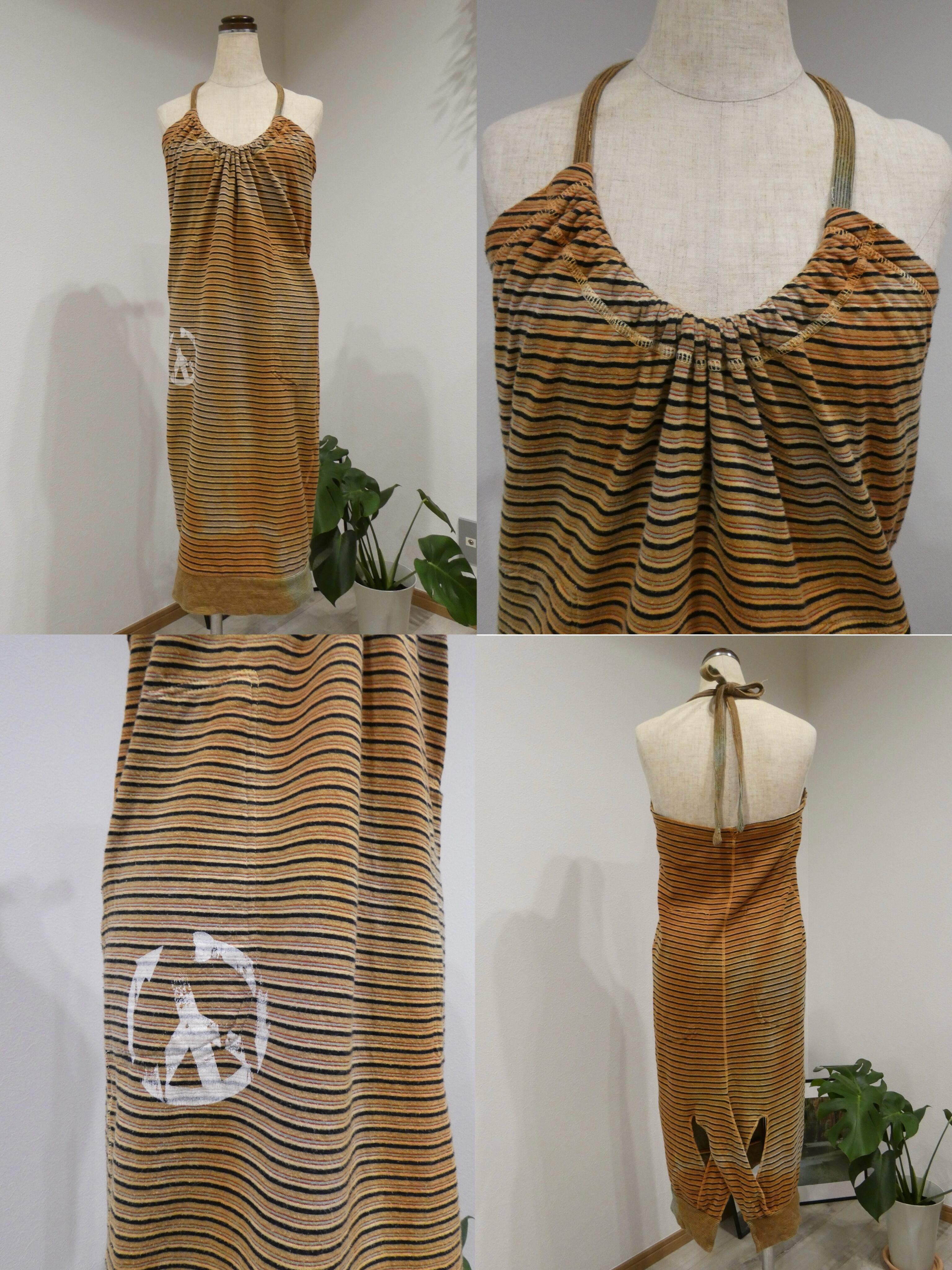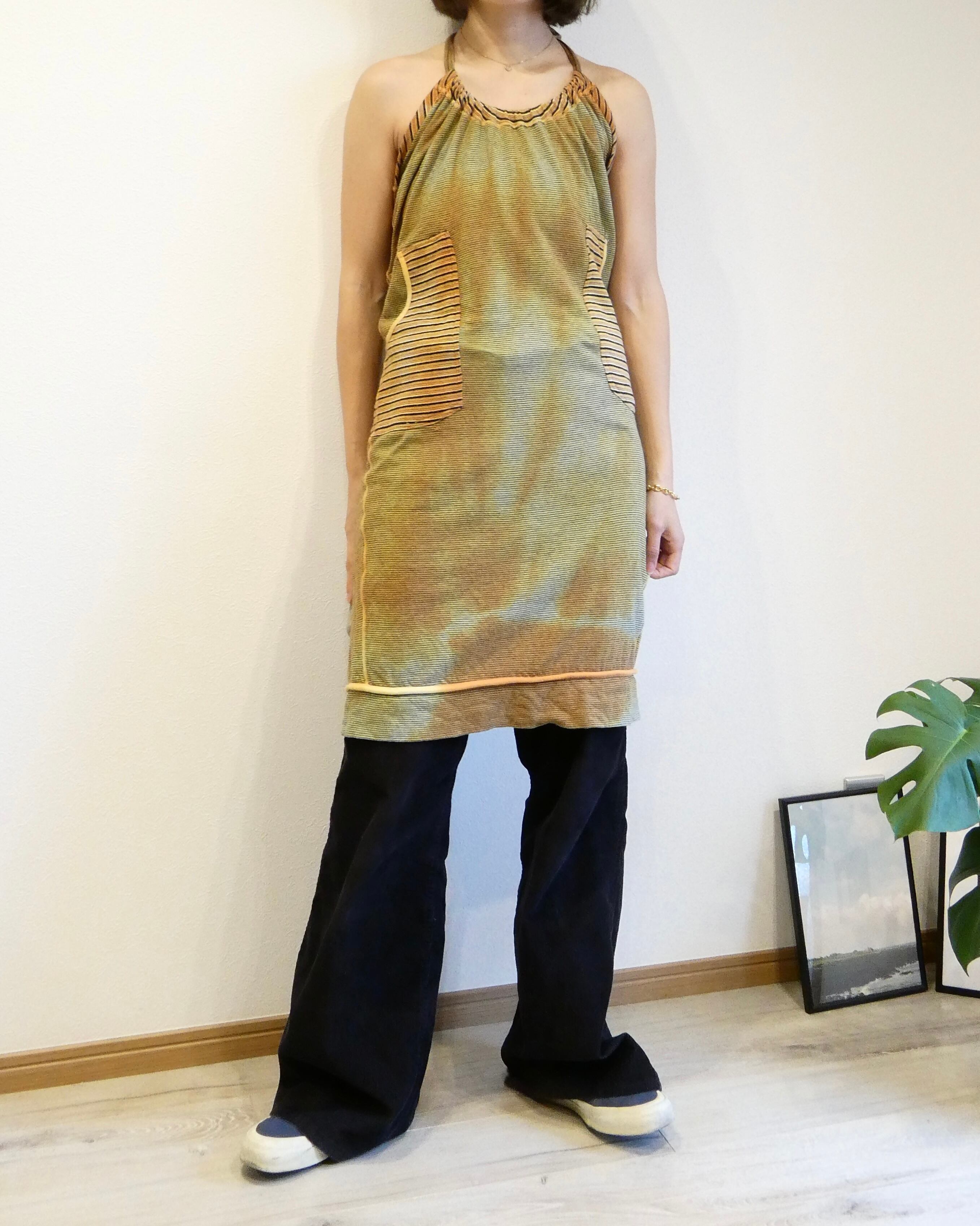 ホルターネックのワンピース、ペンシルスカート、そしてリバーシブルという盛りだくさんなアイテム。