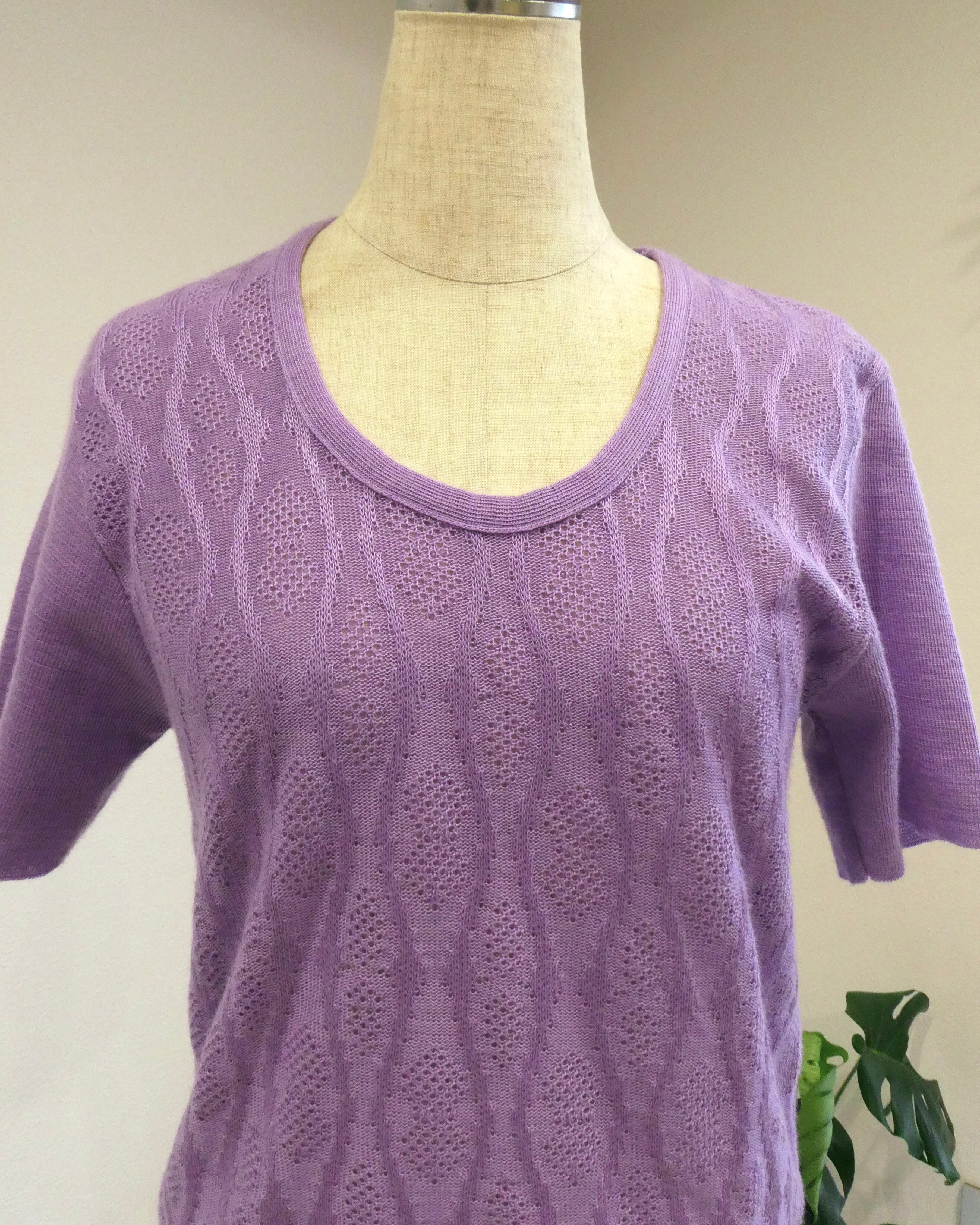 前面にはほんのり透け感のあるジャカード風の編み模様入り