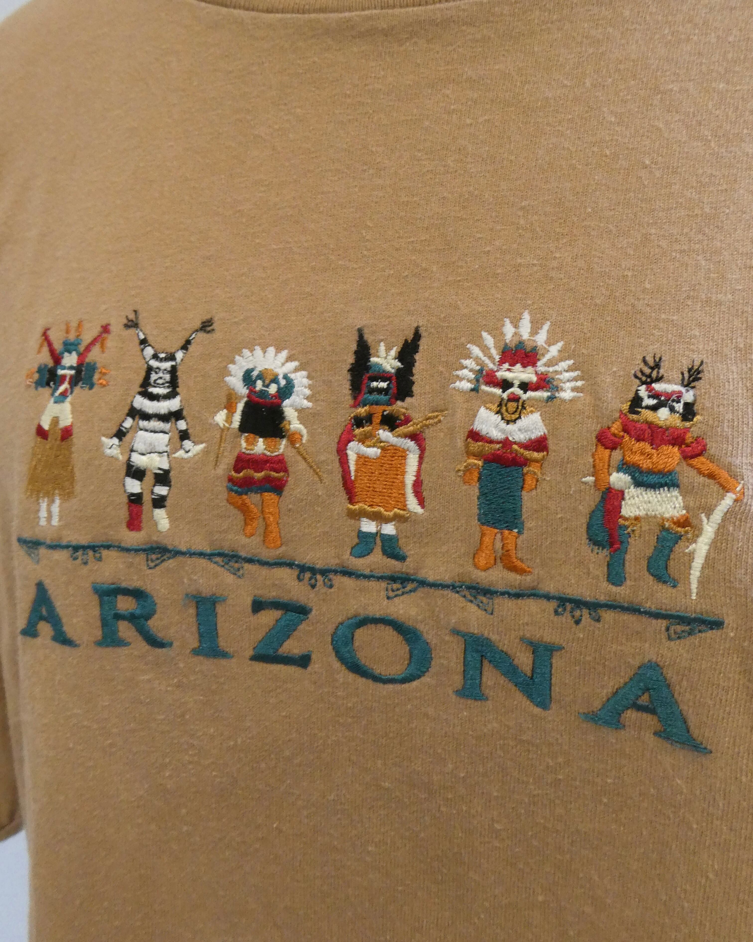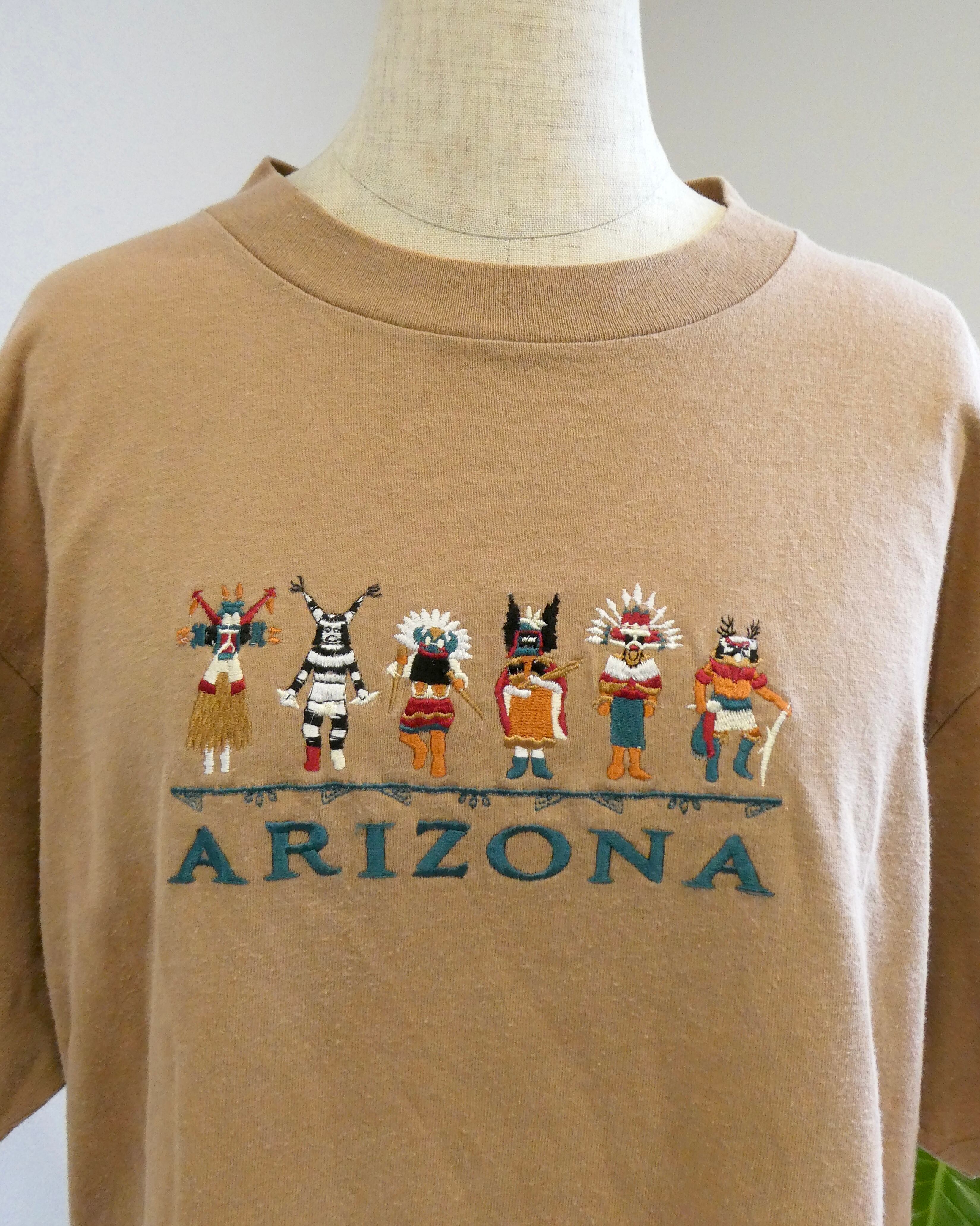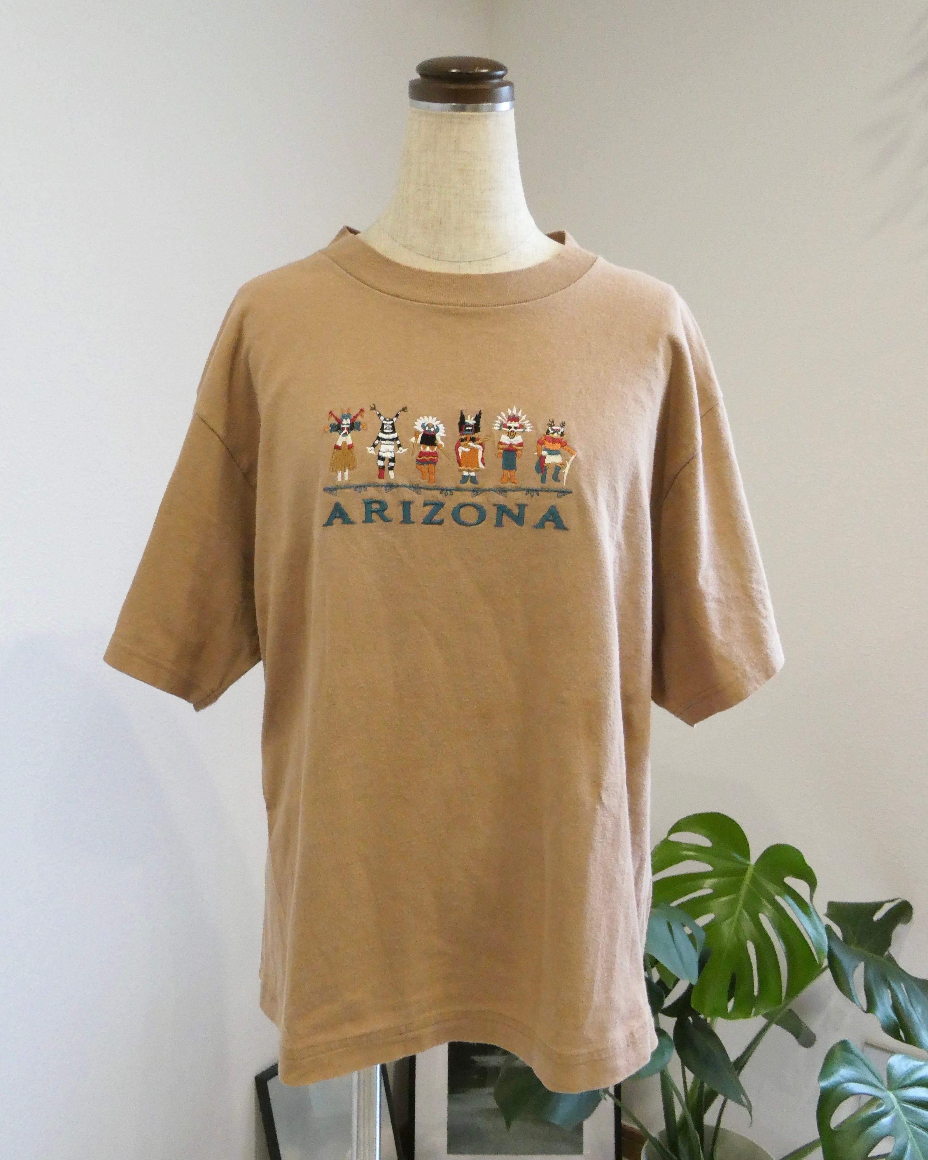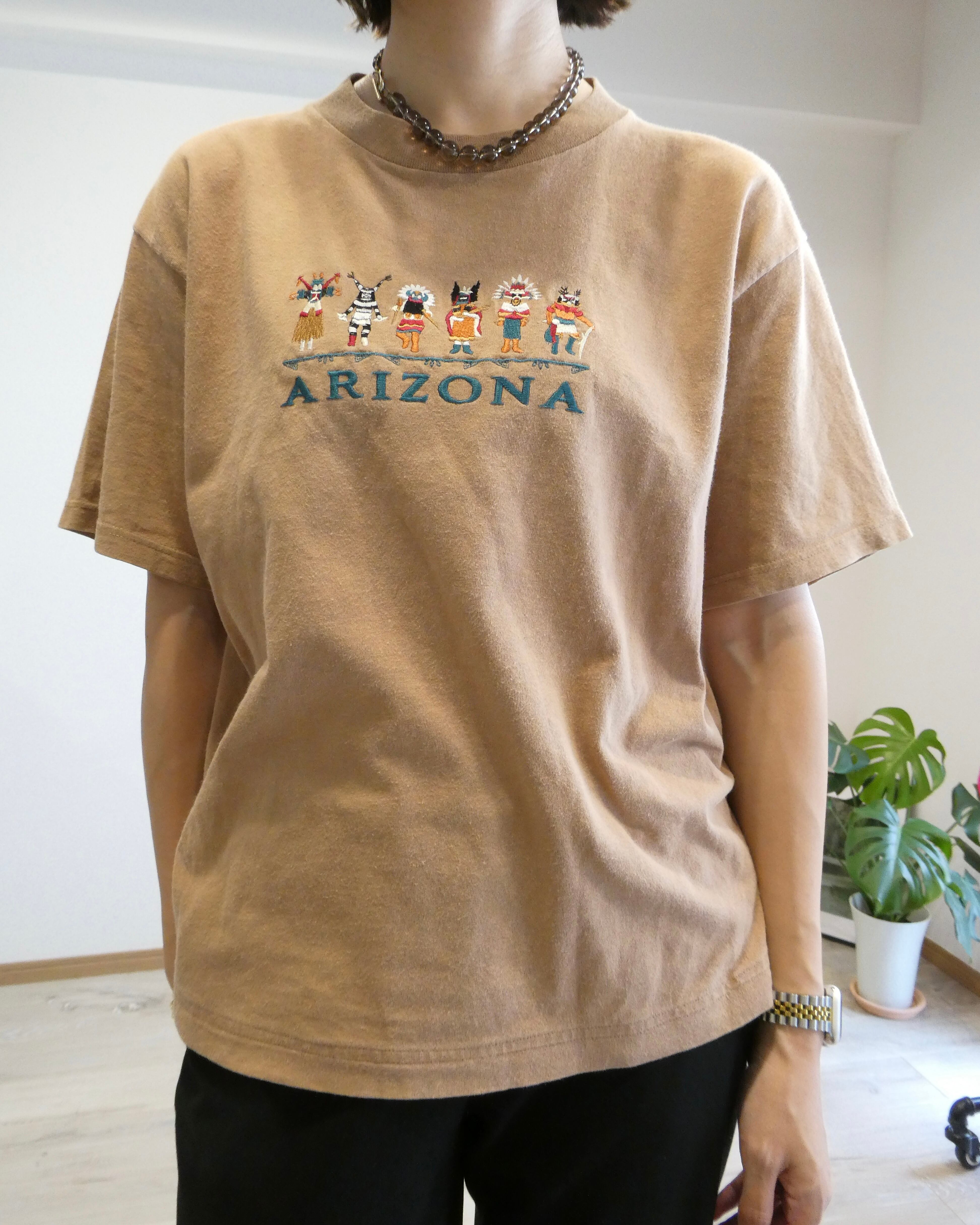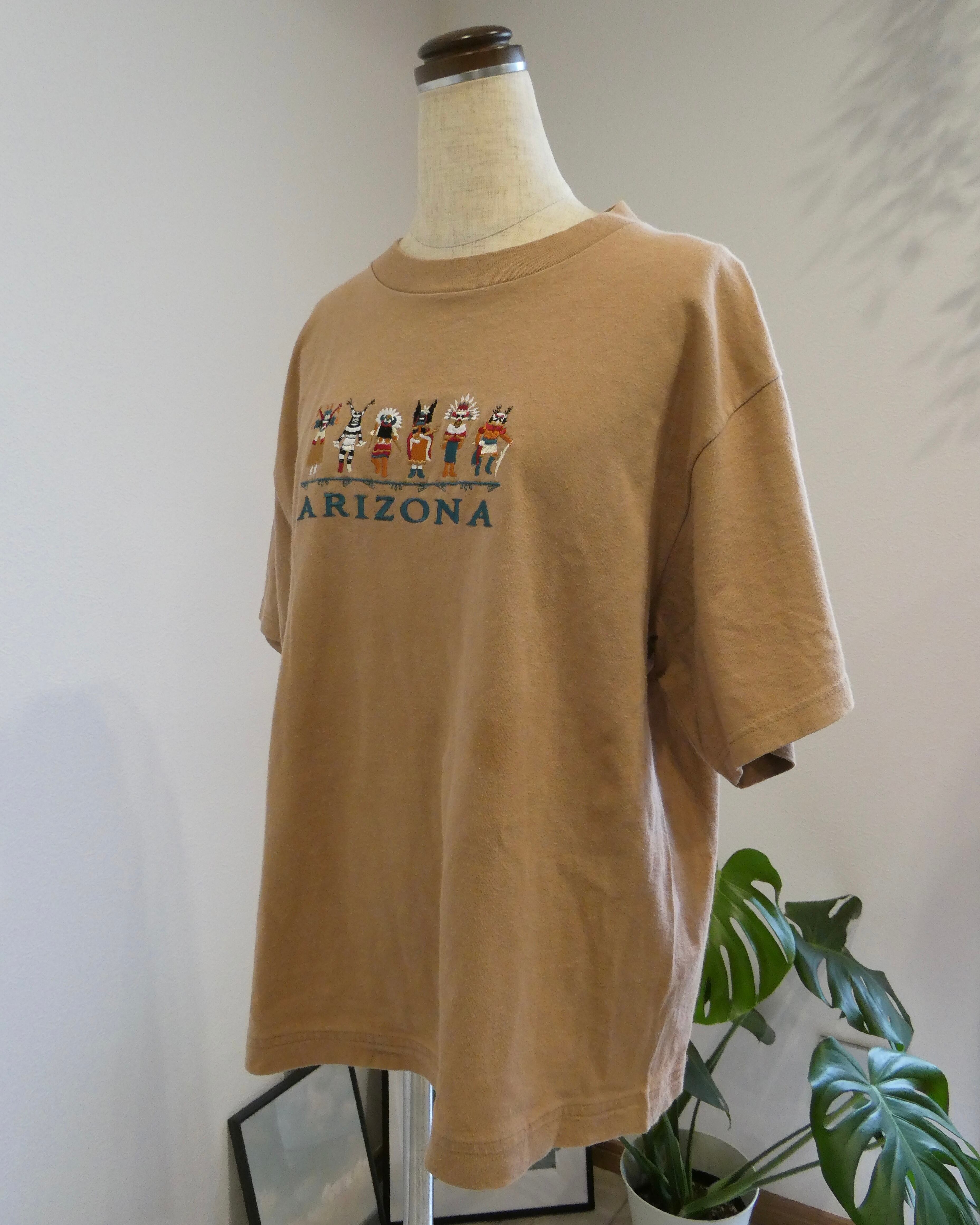 ベージュとブラウンの中間のようなまろやかな色味のボディに「ARIZONA」の文字。
