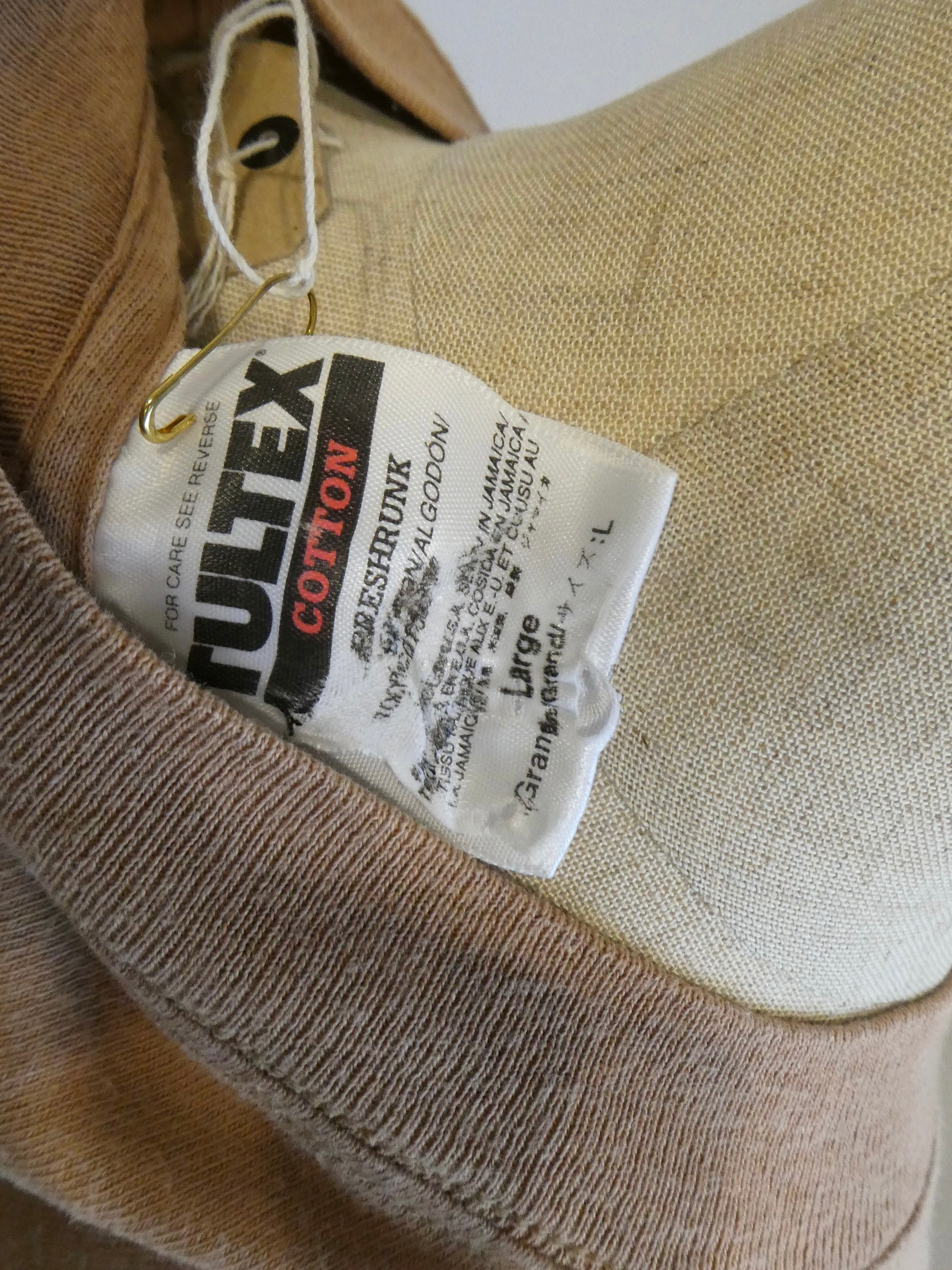 コットン100%でしっかり厚みがあり、ややガサっとした手触りで、90年代らしい無骨な質感が残った風合い