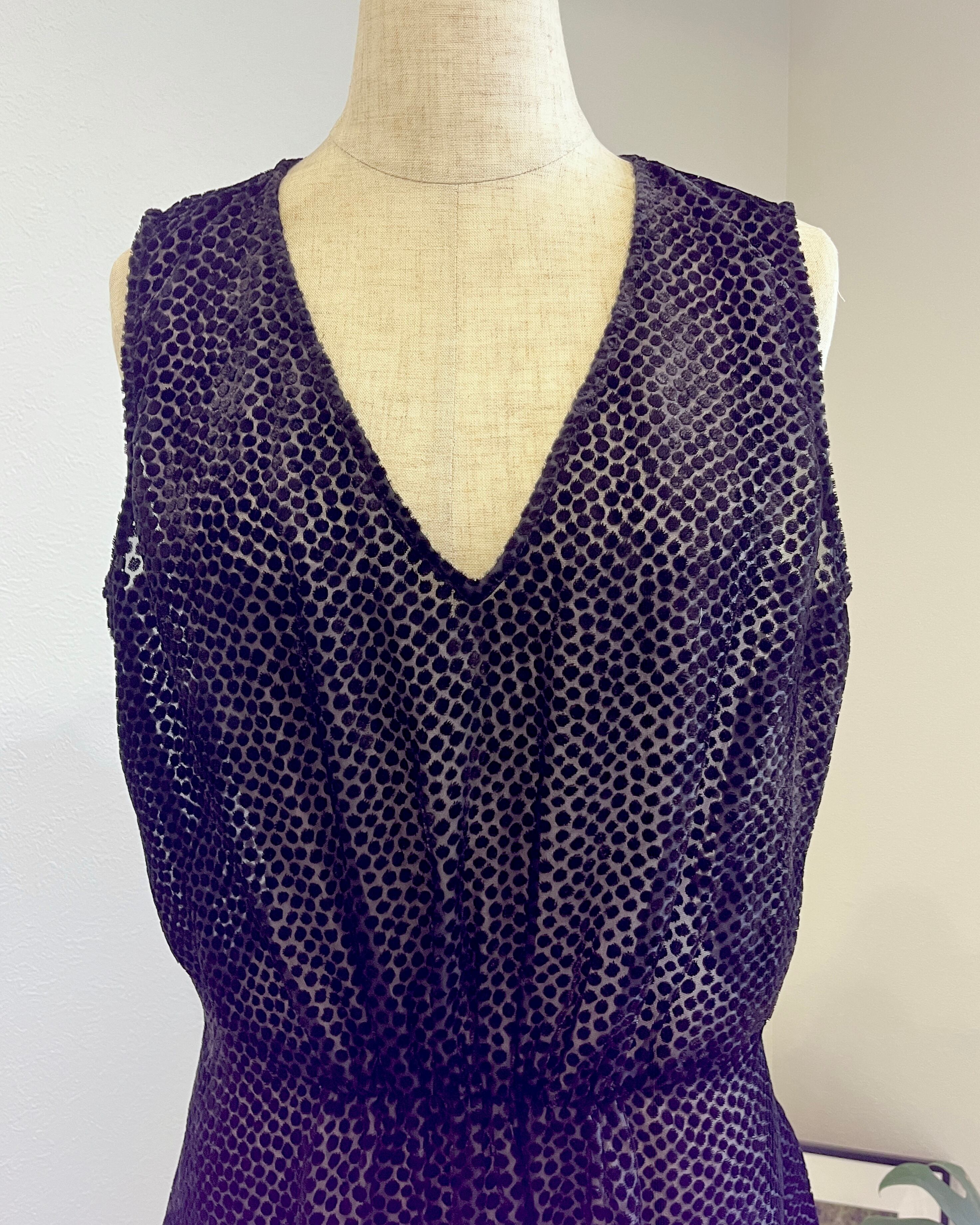 ブラックのシアー素材に、同色のドットをあしらったタンクトップ