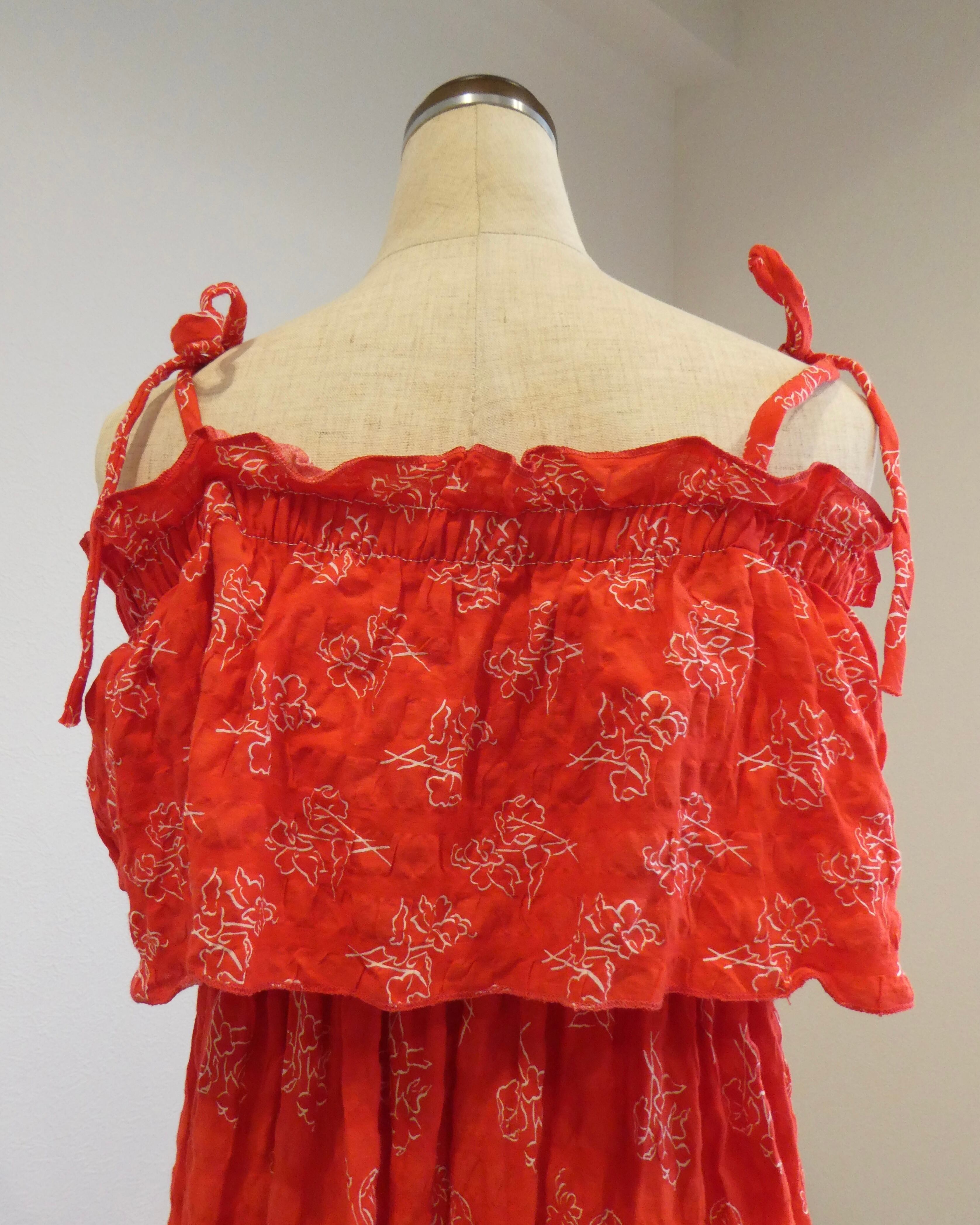 鮮やかなレッドをベースに、白い花柄