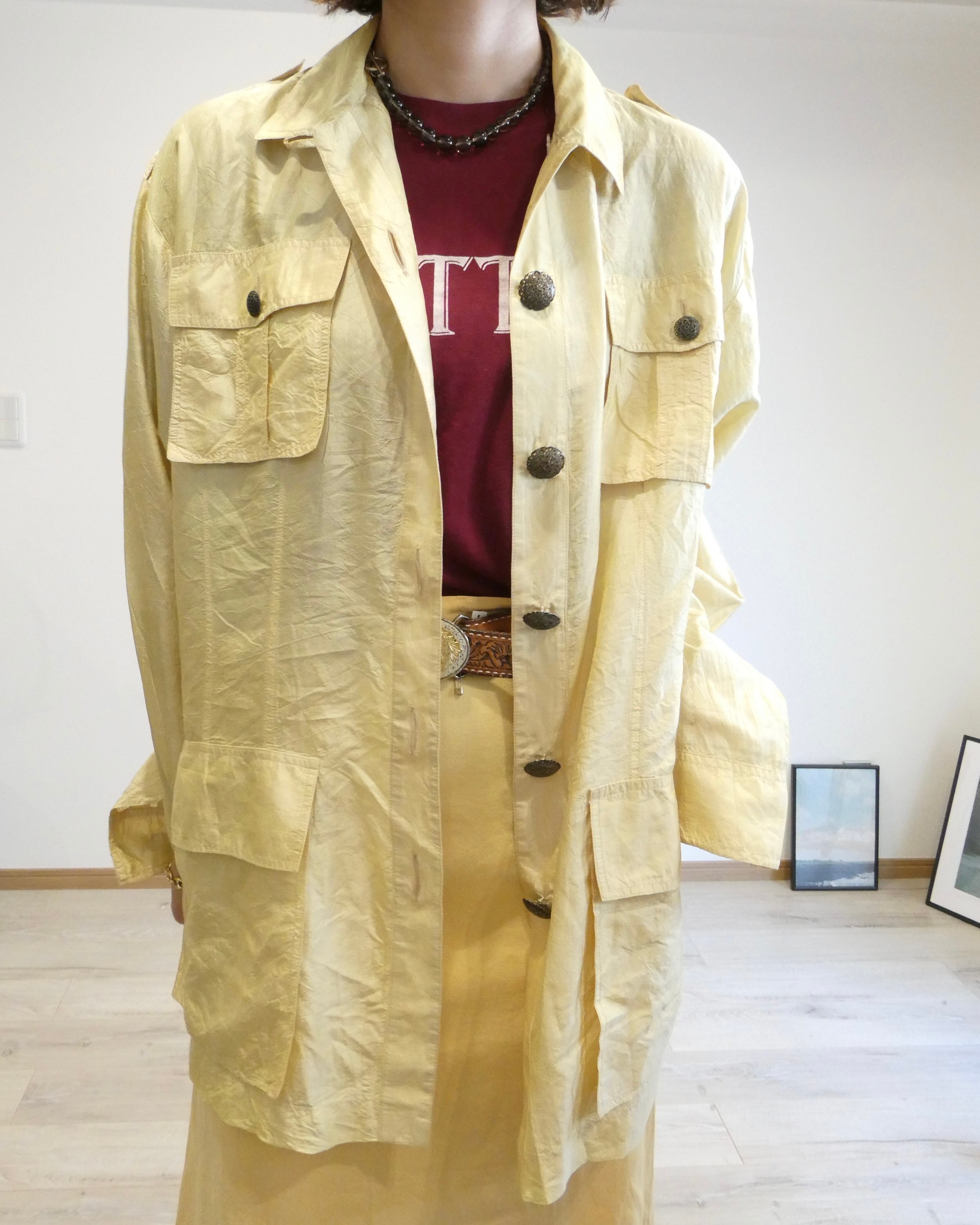 エポレットがついていたり、大きな4つのポケット、まるでジャケットのようなデザイン。面白いです。