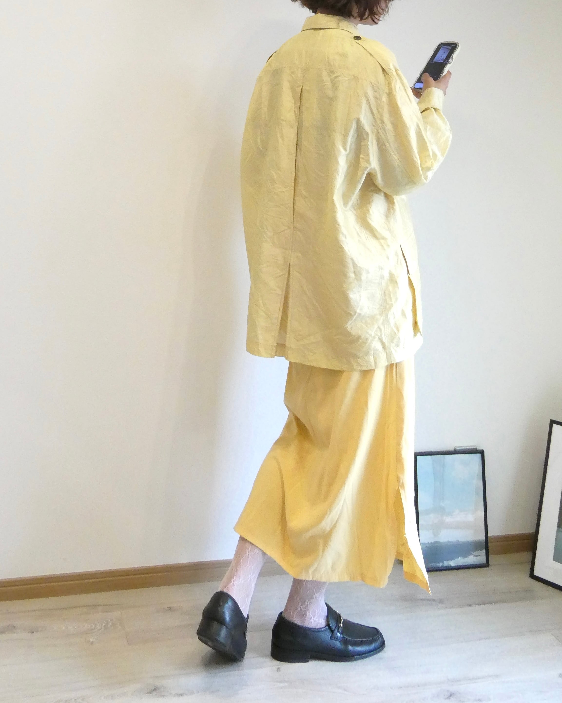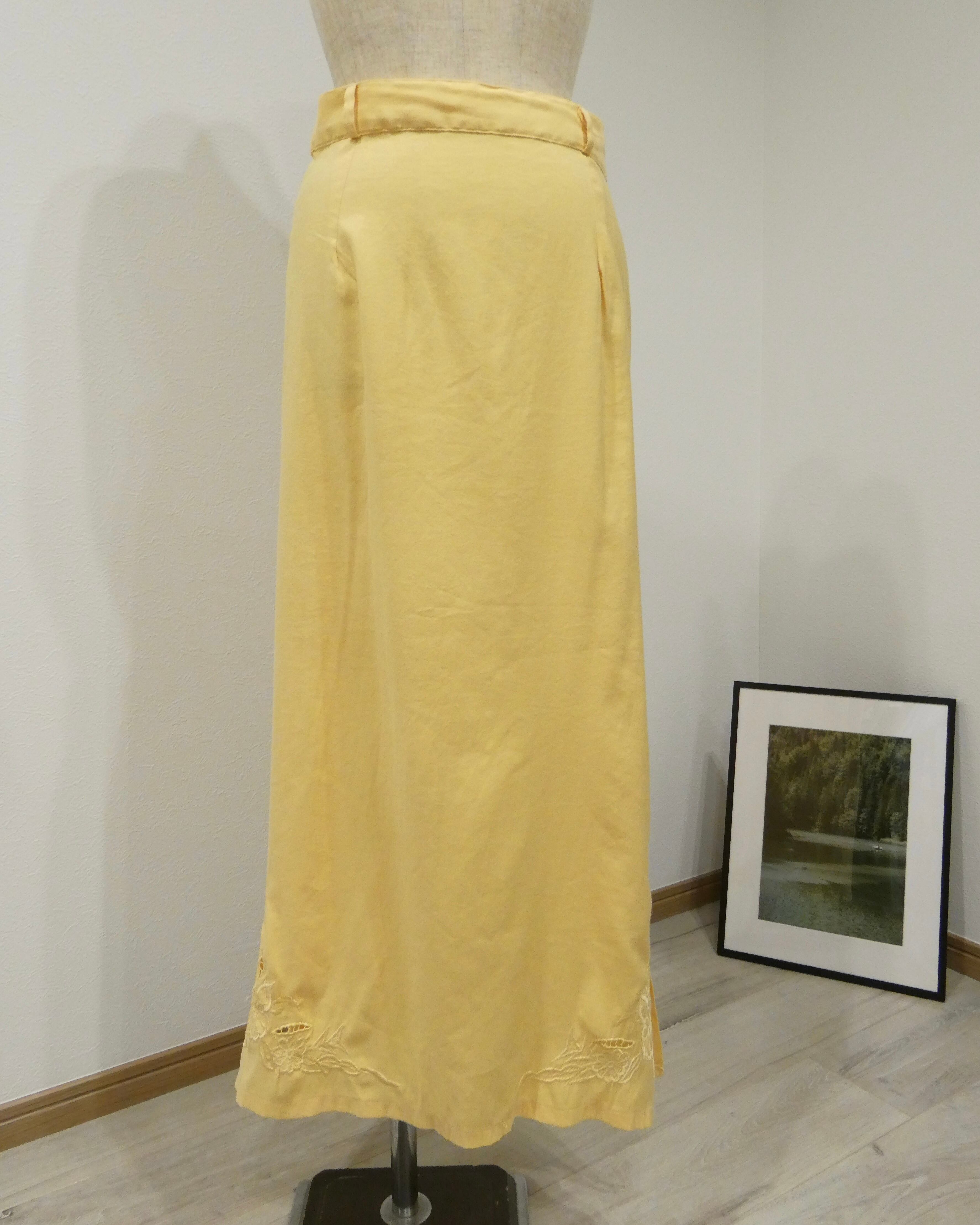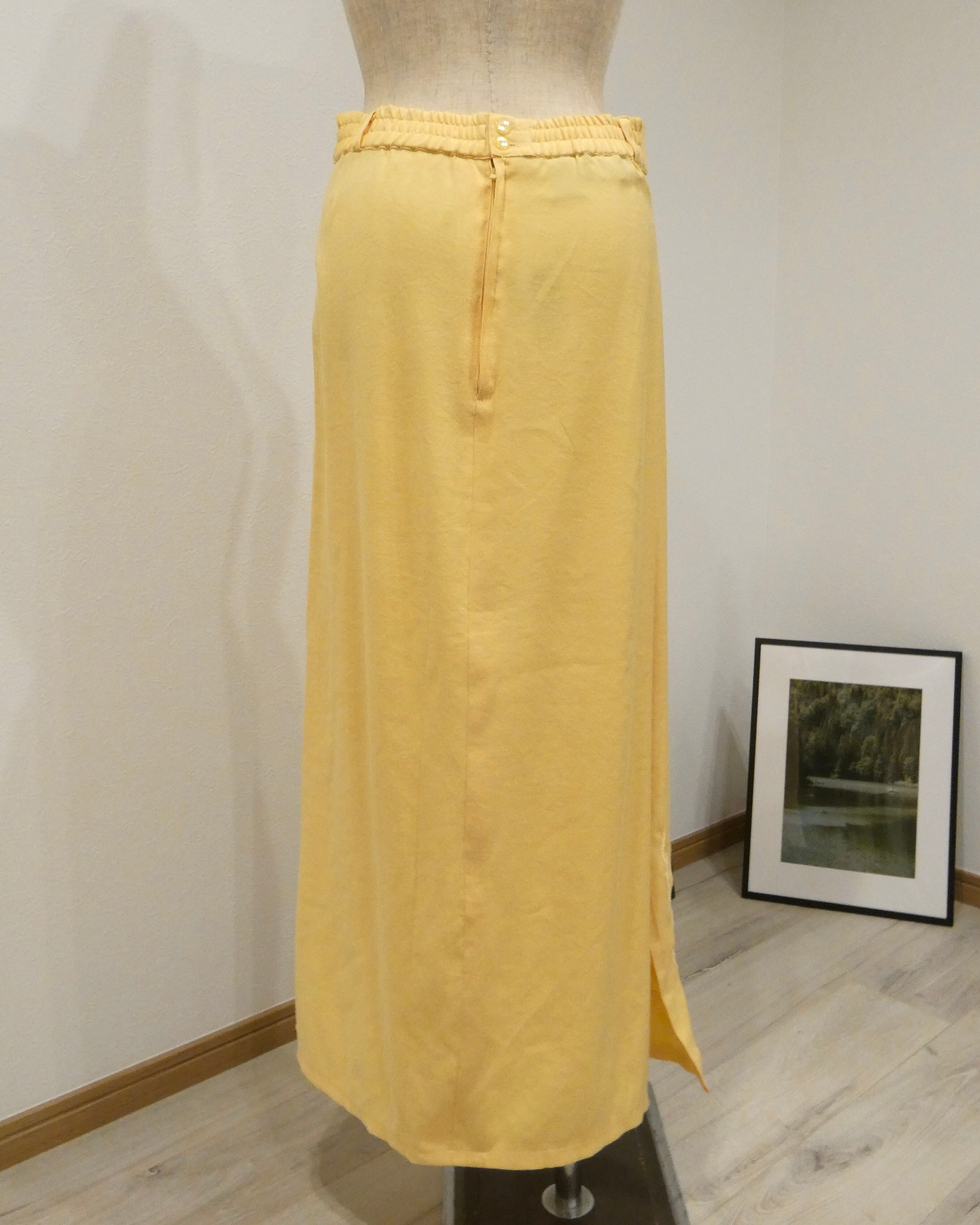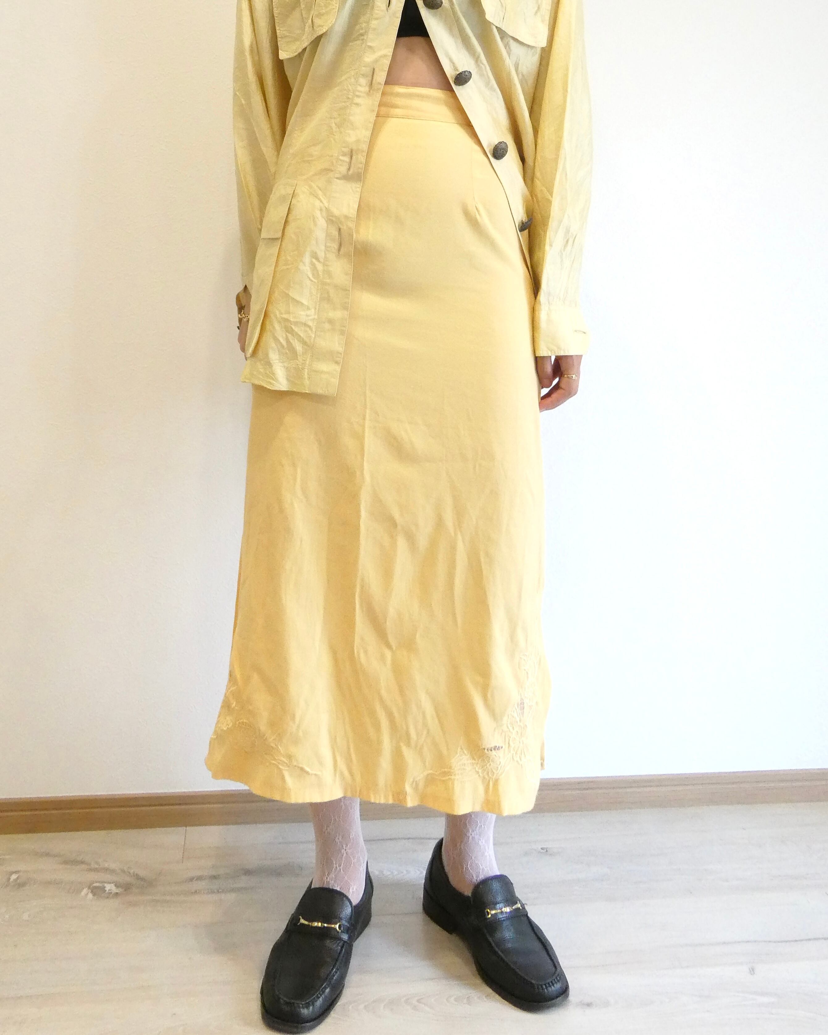 イエローとオレンジの中間のような、絶妙なカラーのスカート