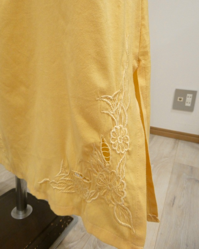 左右の裾に同色の糸でお花の刺繍が入っているのが繊細でとってもキュートです。