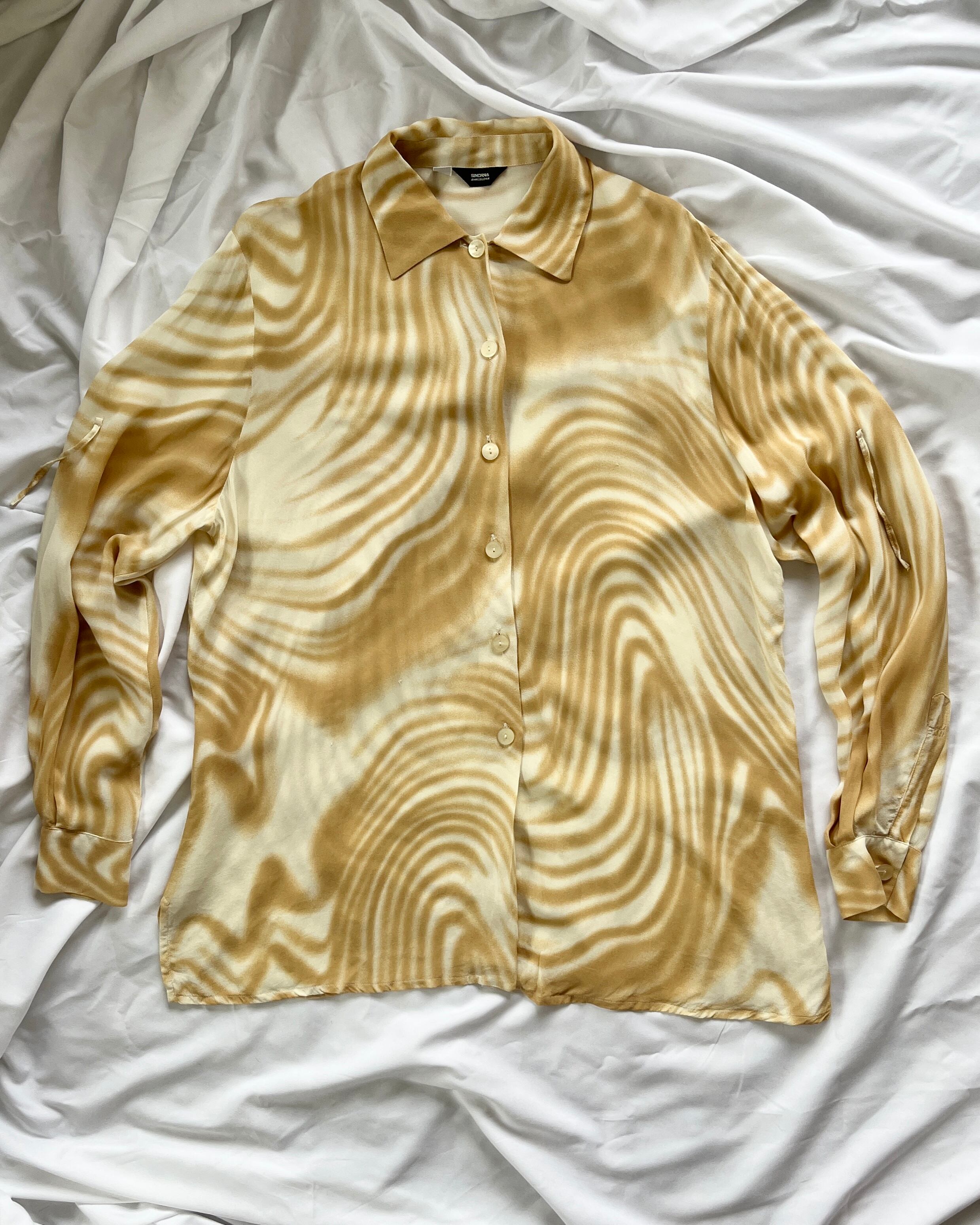 ベージュのマーブルパターンのシアーシャツ