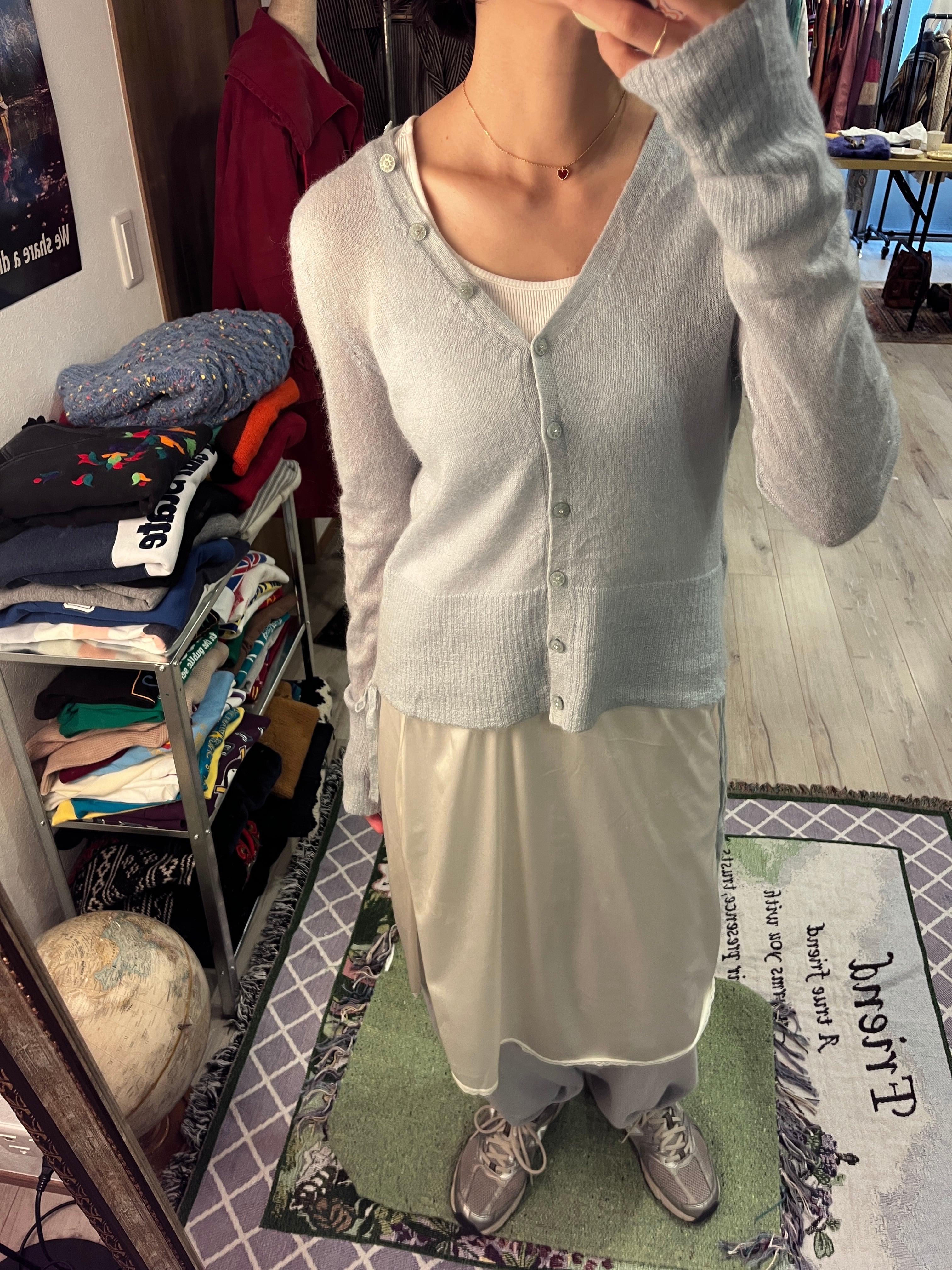 スリットがしっかり入っているためレイヤードした際にボトムスがしっかり見えます。