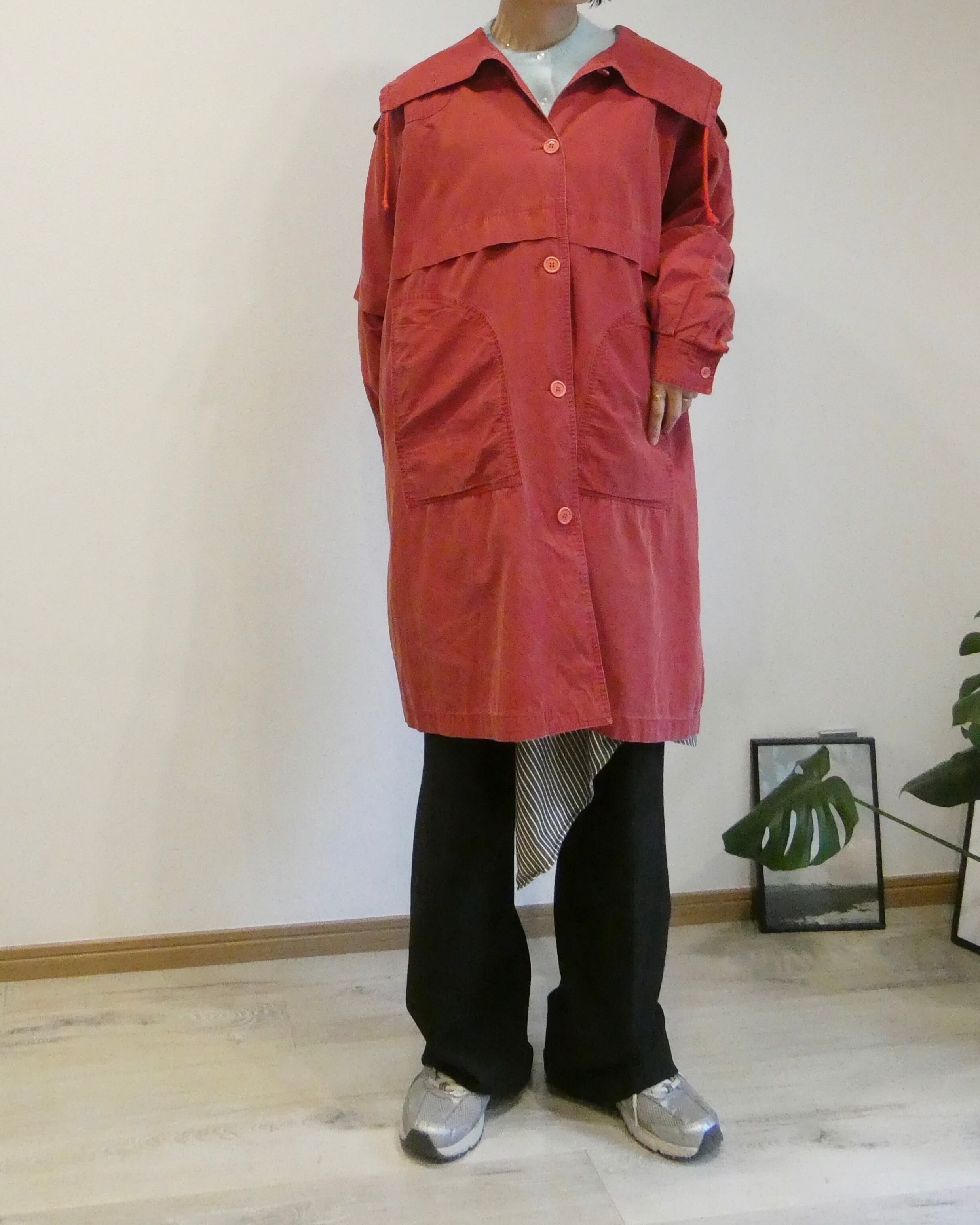 裏地はないのですが、身幅にゆとりがあるのでインナーダウンなどを着ていただければ長く楽しんでいただけそうです。