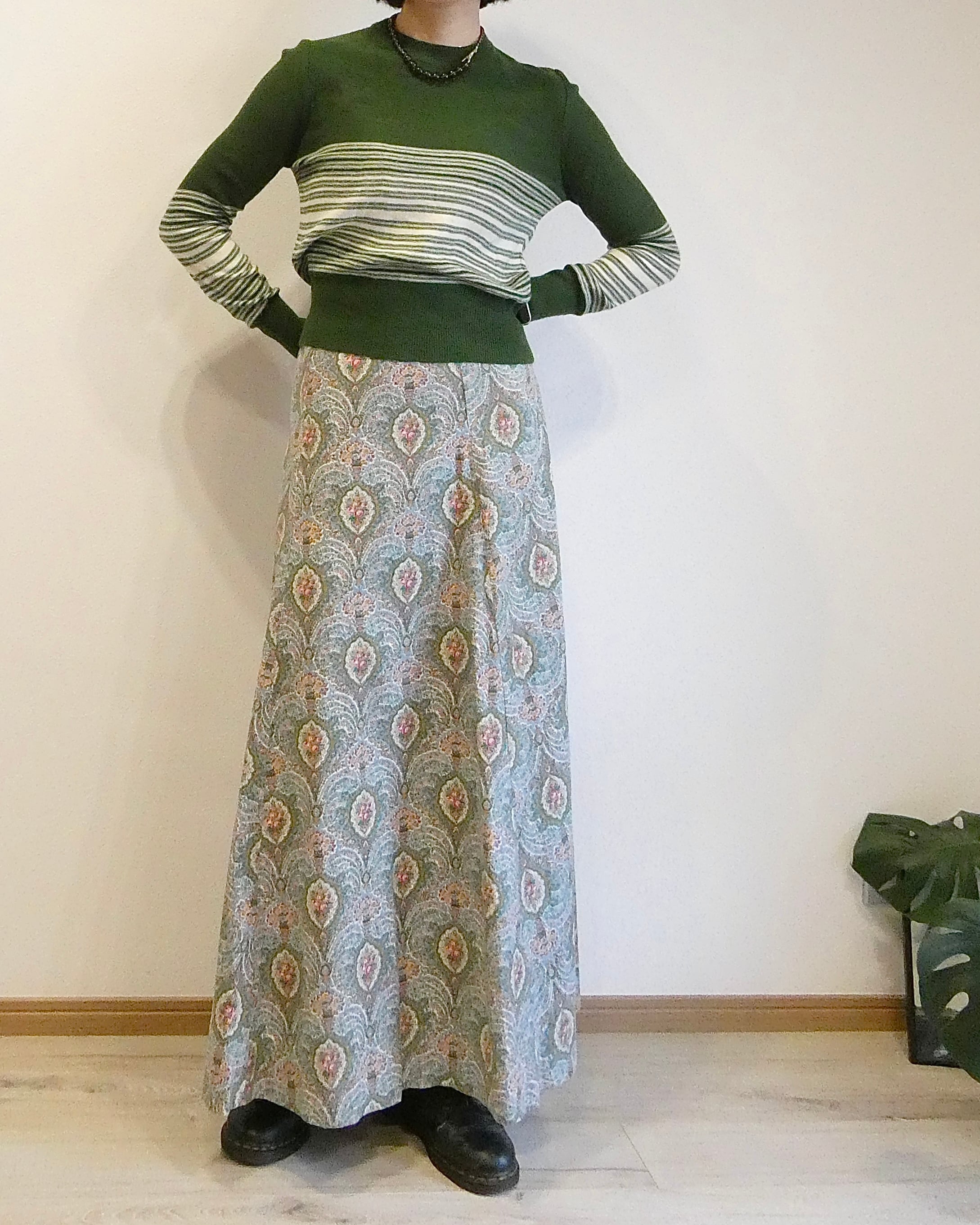 ウエストは大きなリブでシェイプされていて細く見えるシルエット。