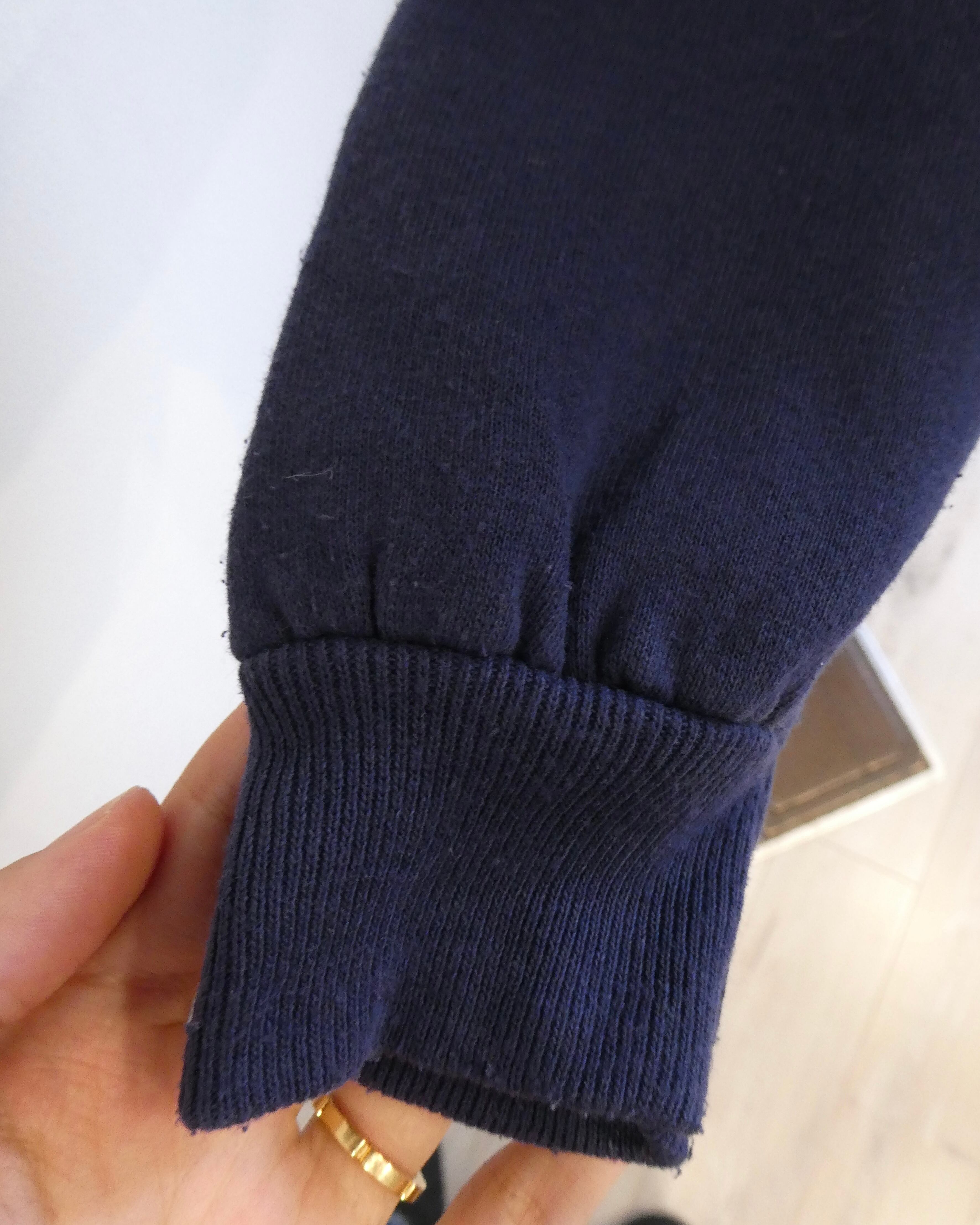 「Noël(ノエル)」の文字に寄り添うように、ラッパを吹く天使が刺繍されたスウェット。