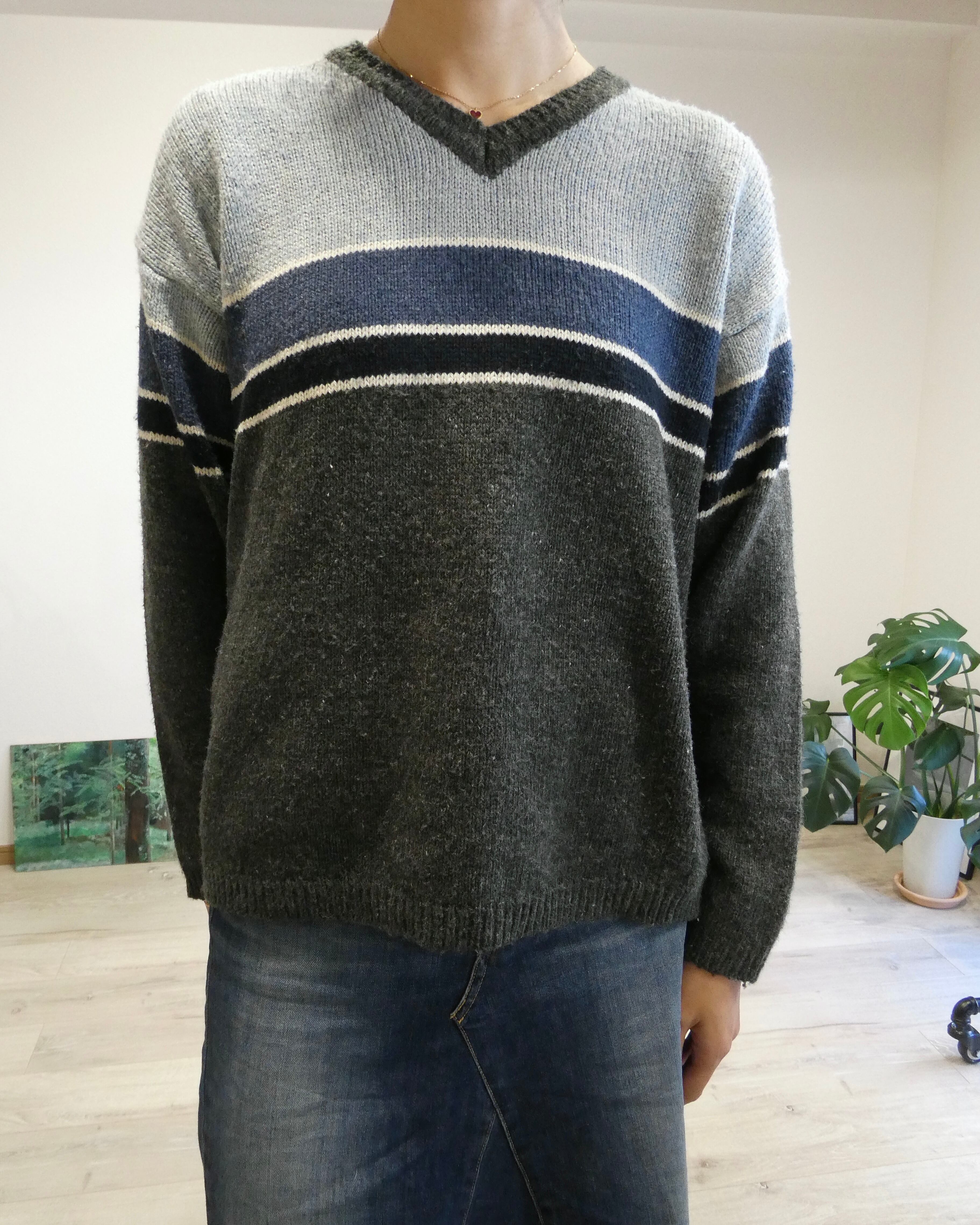 グレーをベースにネイビーとホワイトのラインが入った落ち着いた色合いです