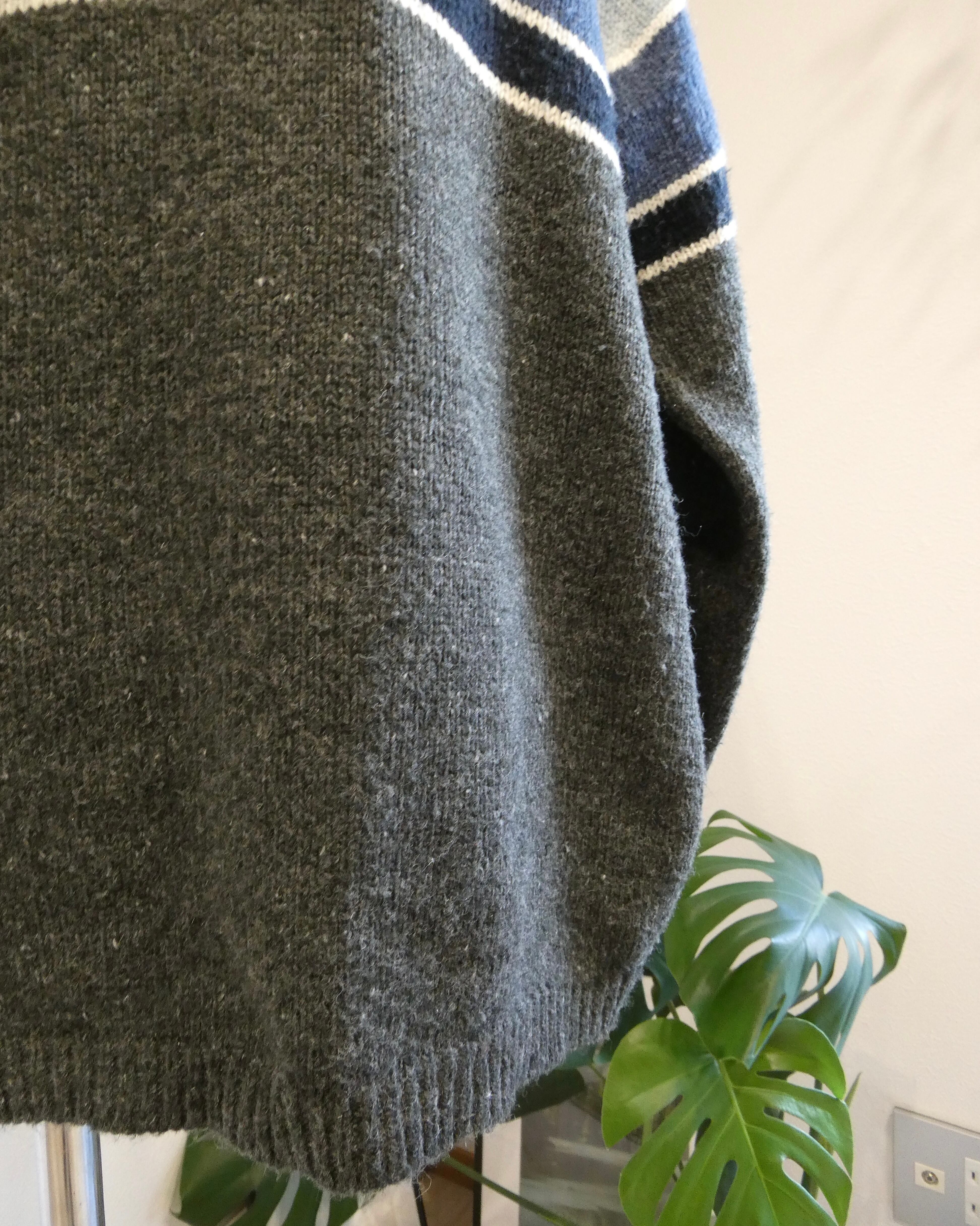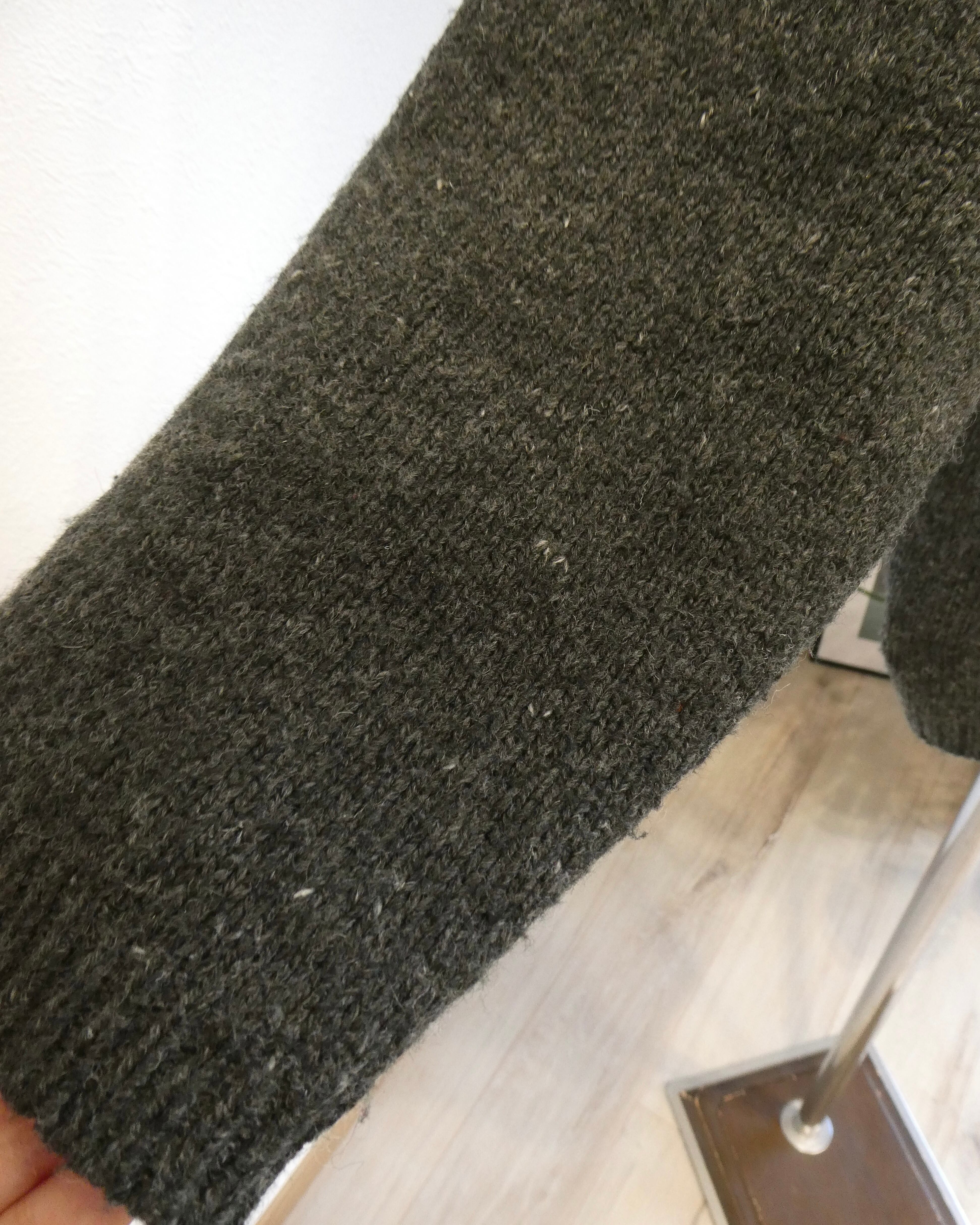 アクリル85%、ウール15%の混紡素材で、厚みがありながらもやわらかな着心地。