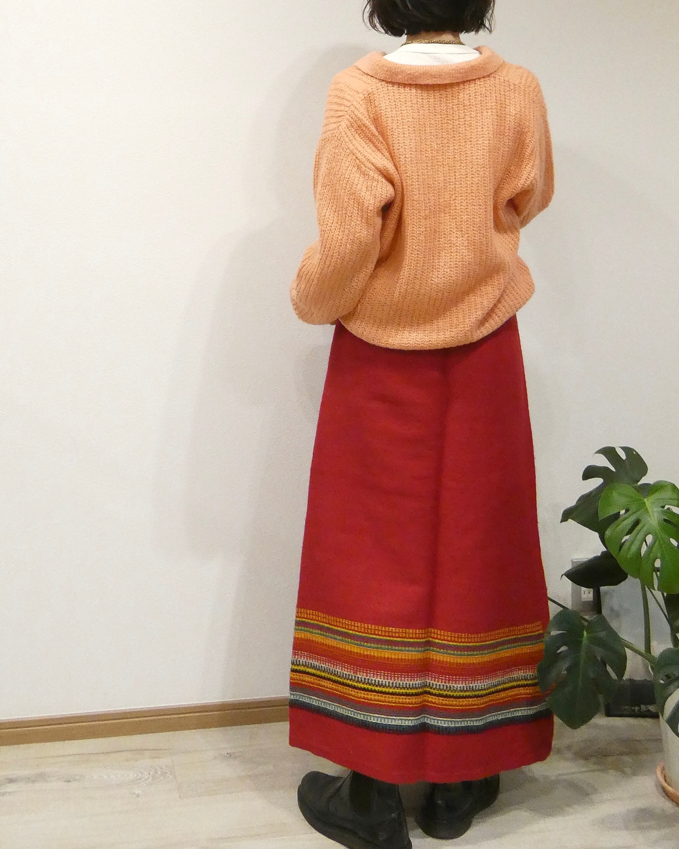 ラグのようにしっかりとした風合いのAラインスカートです。