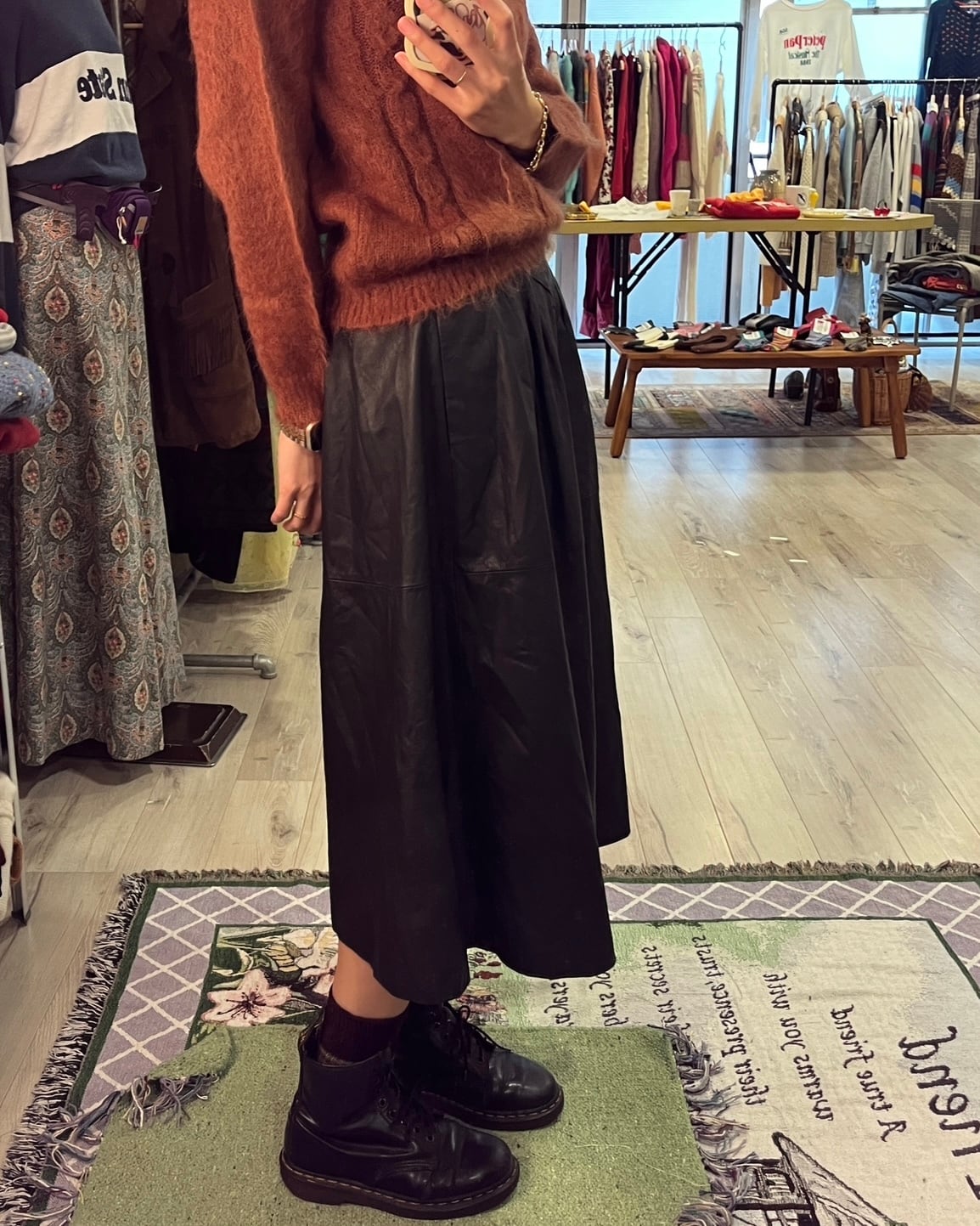 レザー特有のやわらかな落ち感があり、ニットやシャツとも相性の良い万能アイテム。