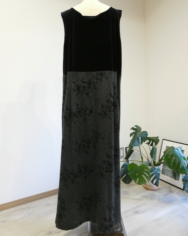 ブラックのベロア、薄手のフェルトのような風合いのグレースカートの切り替えです。