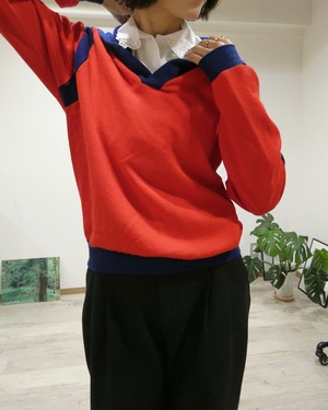 首元はVネック入で首まわりがすっきりと見える仕様です。