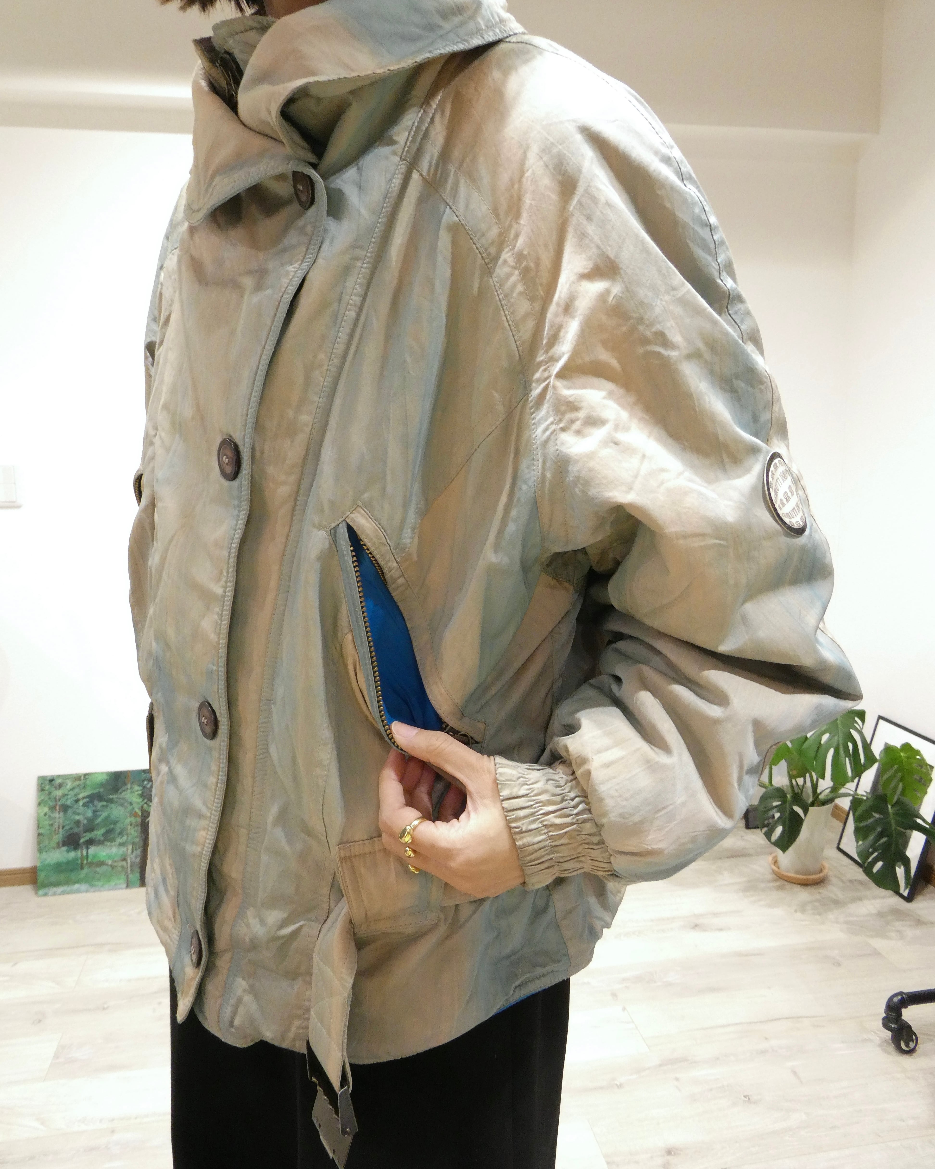 偏光カラーのパフジャケット
