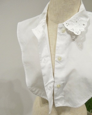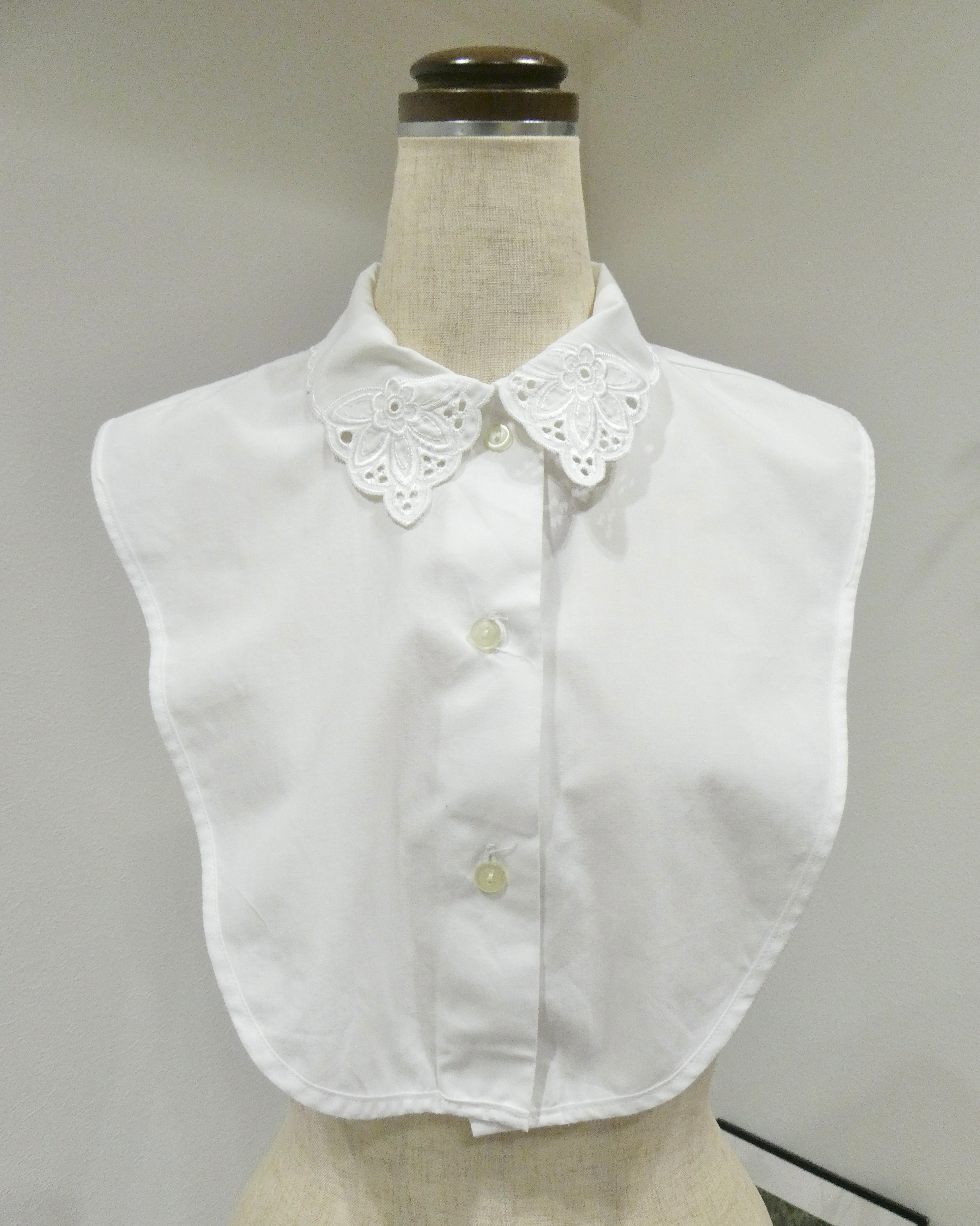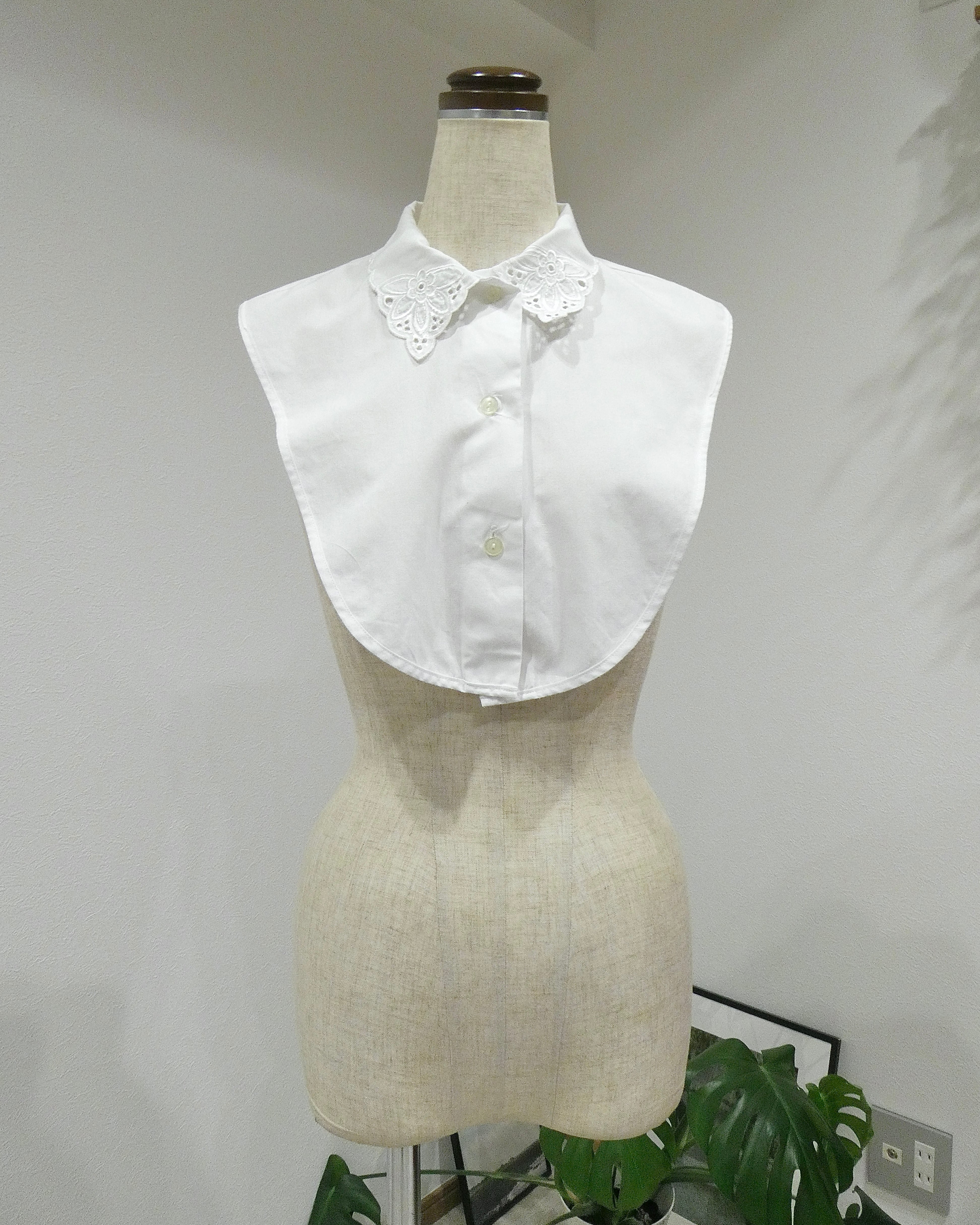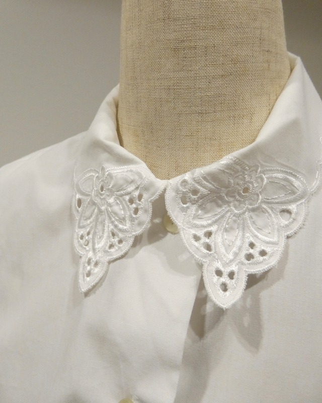 花モチーフのカットワークレースが、首元に華やかさを添えてくれます。