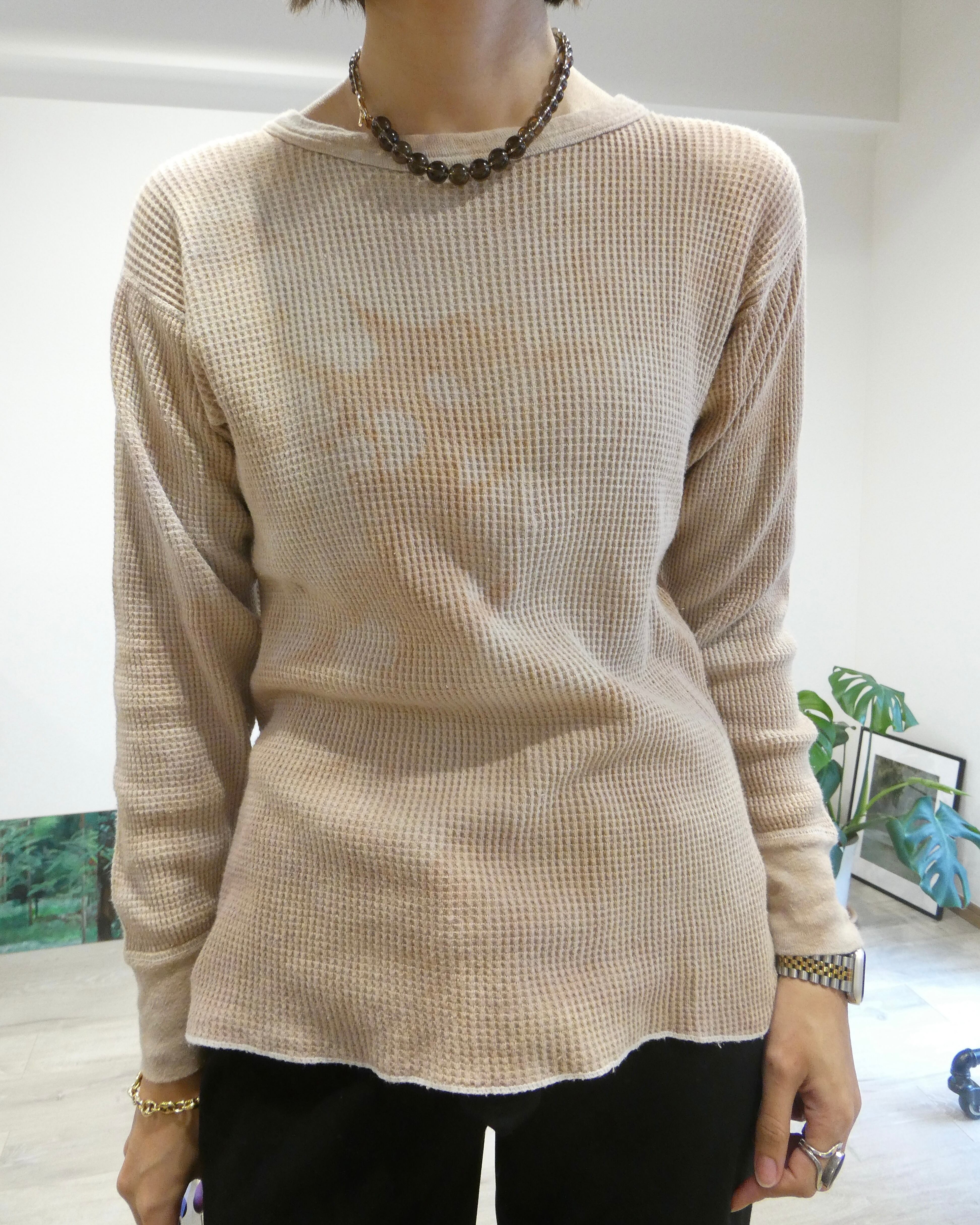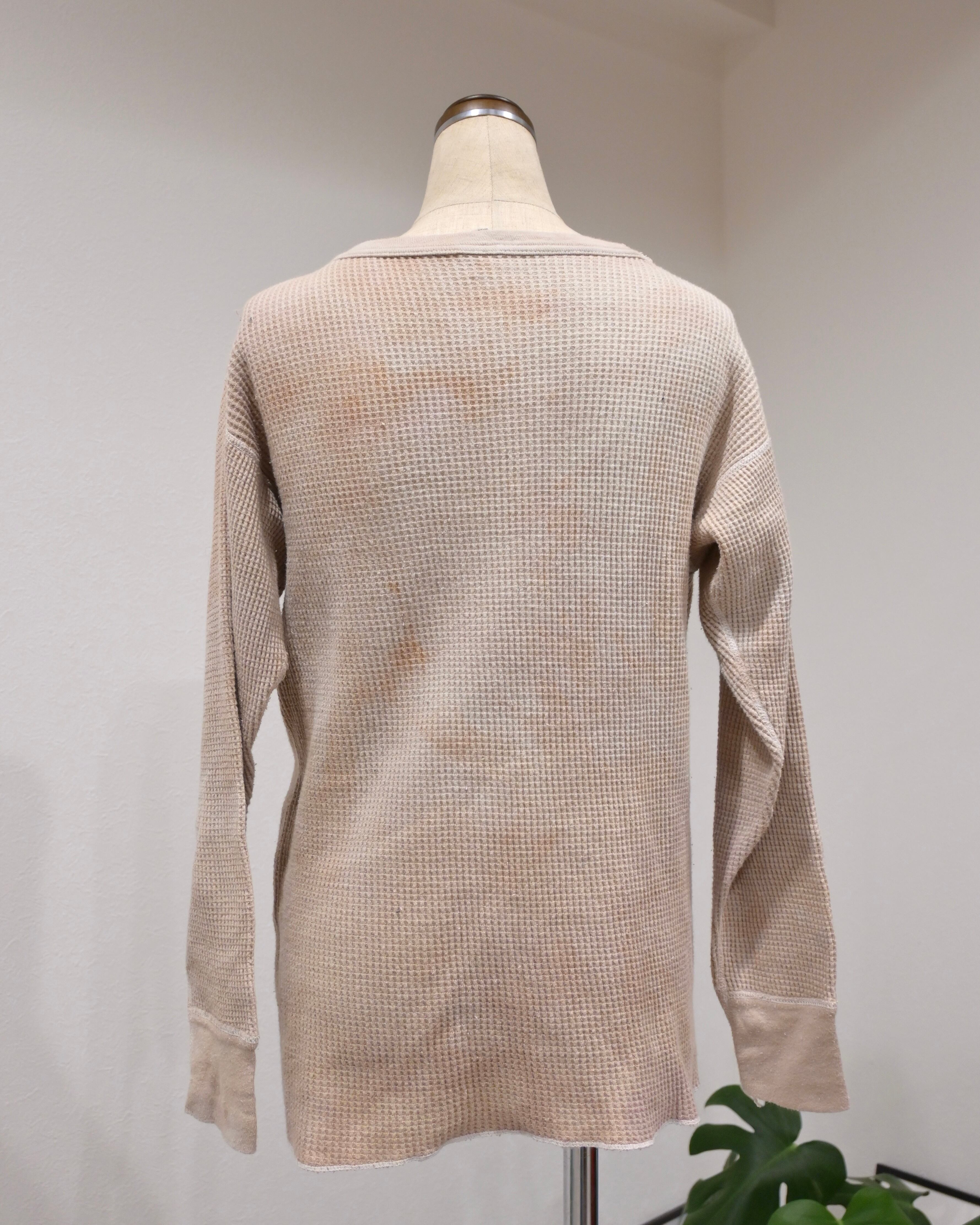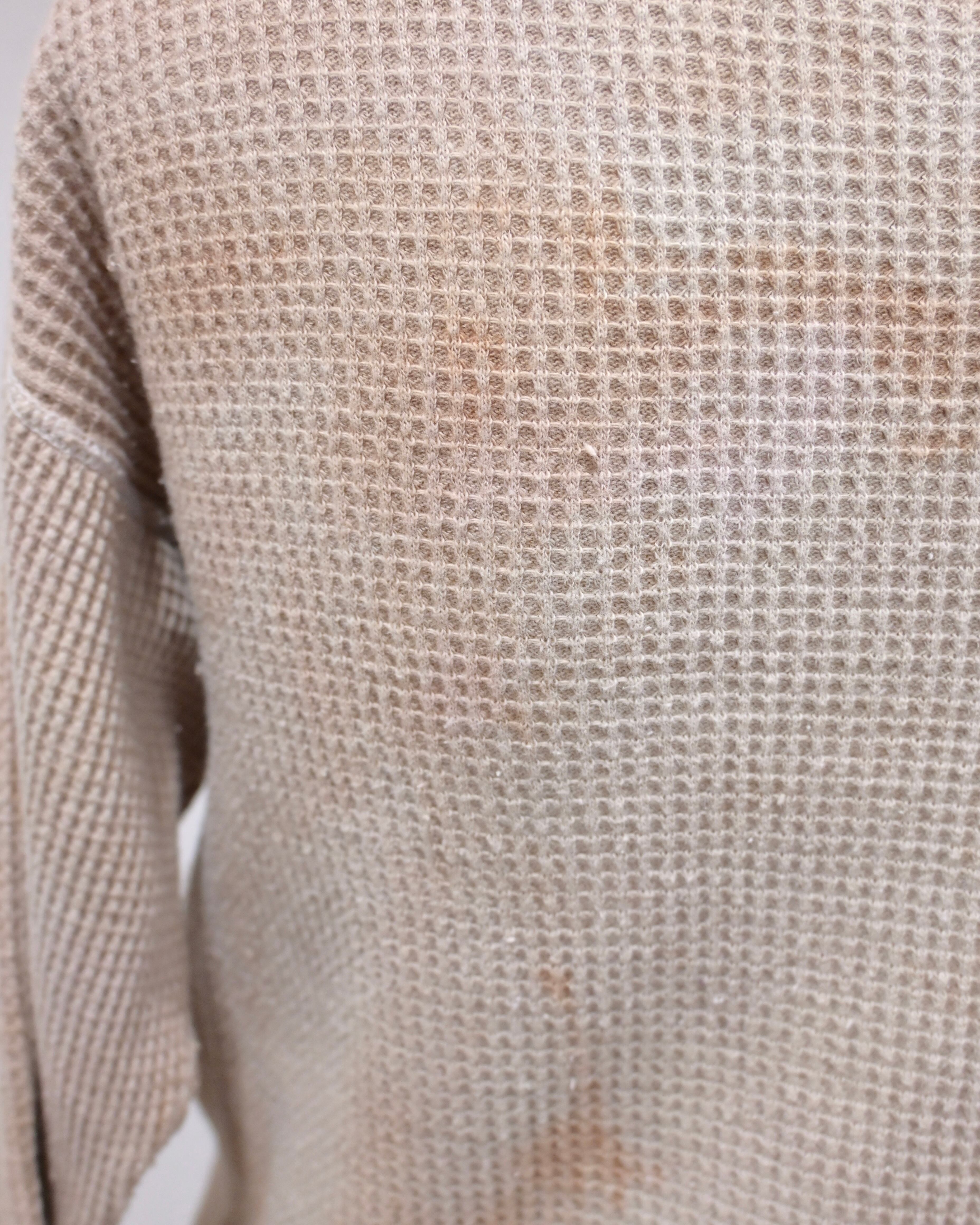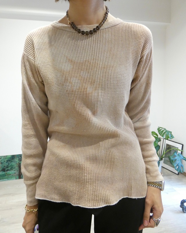 素材はコットンとポリエステルの混紡(50/50)で、ヴィンテージのサーマルらしいワッフル状の凹凸感が特徴です。