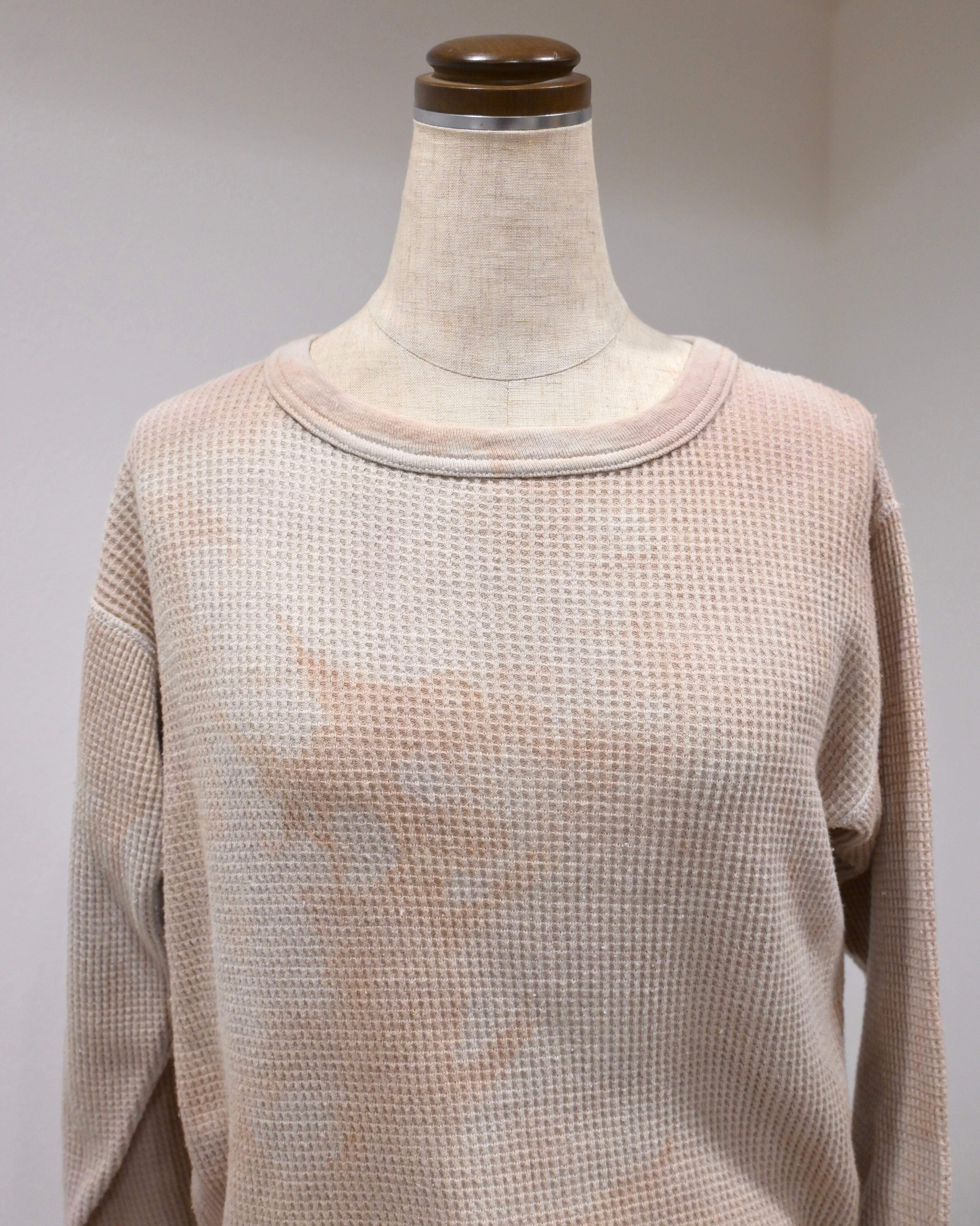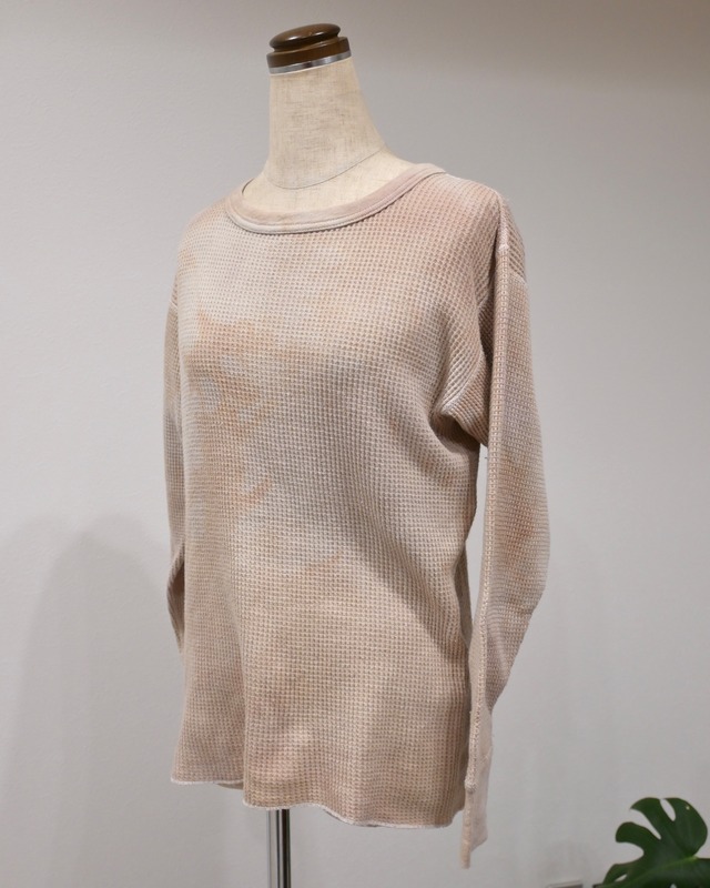 元々はホワイトだったと思われるボディがベージュ系のタイダイ染めによって、ニュアンスのあるアーシーな雰囲気に生まれ変わっています。