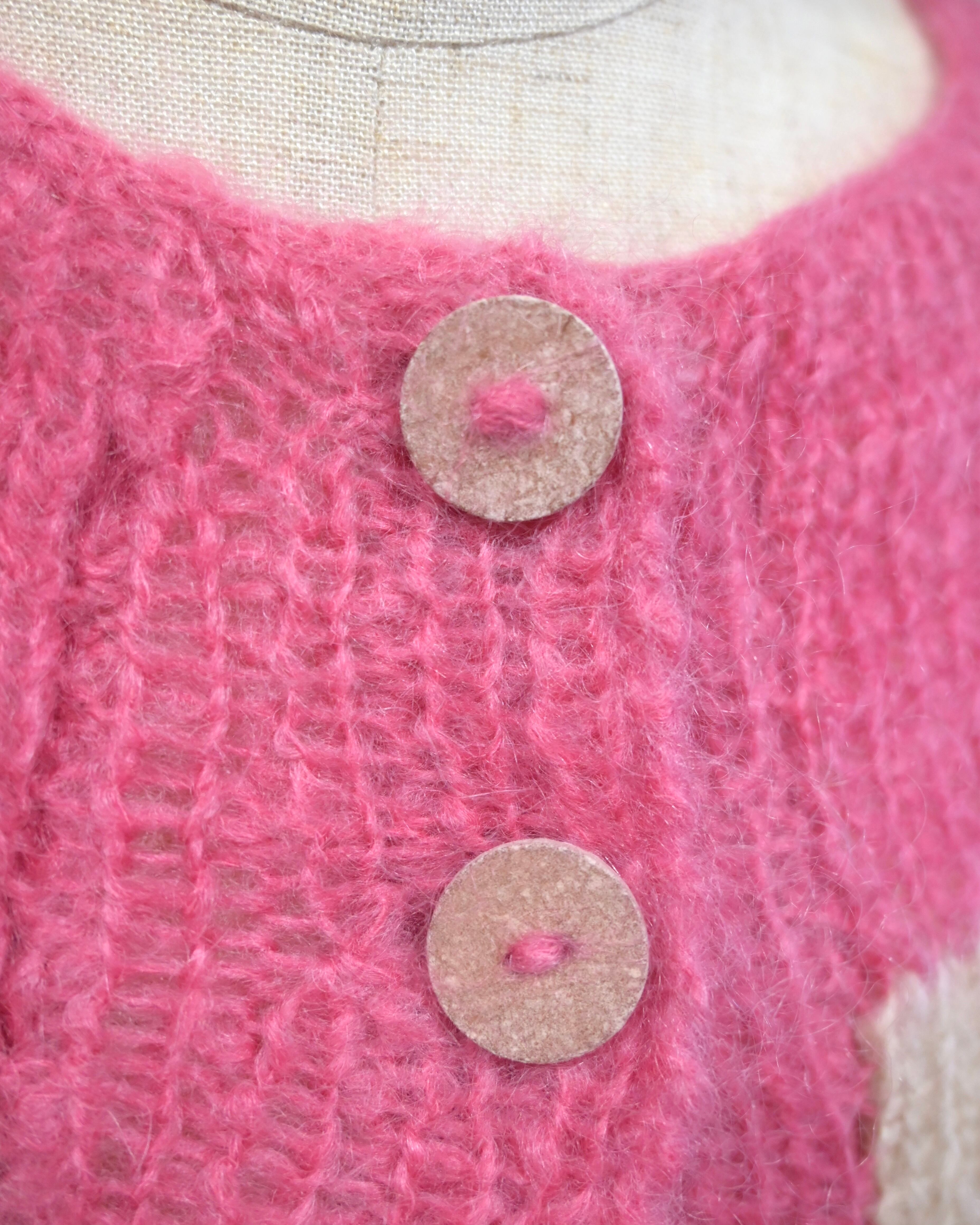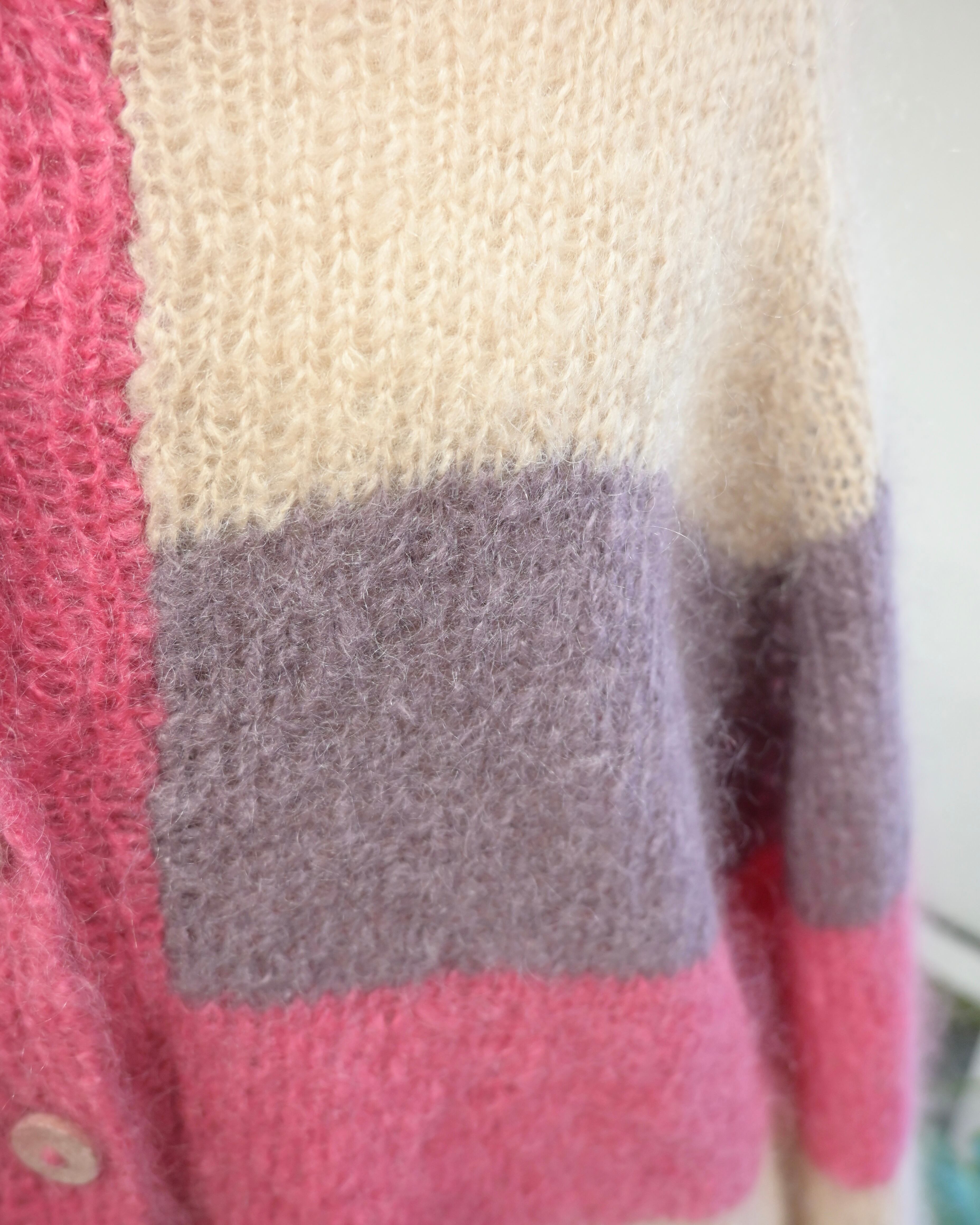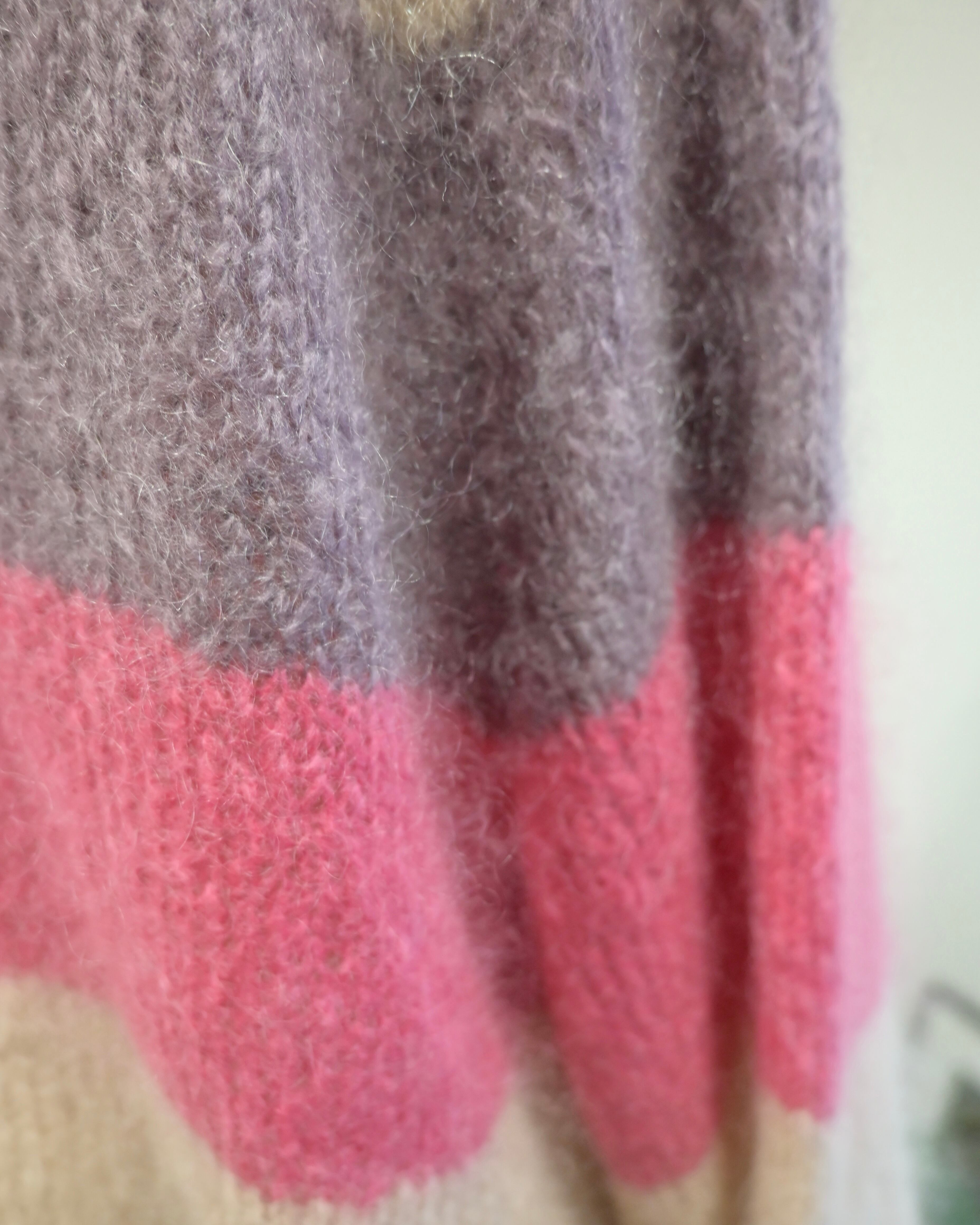 製品タグがないので詳細の混率は不明ですが、モヘアが含まれています。