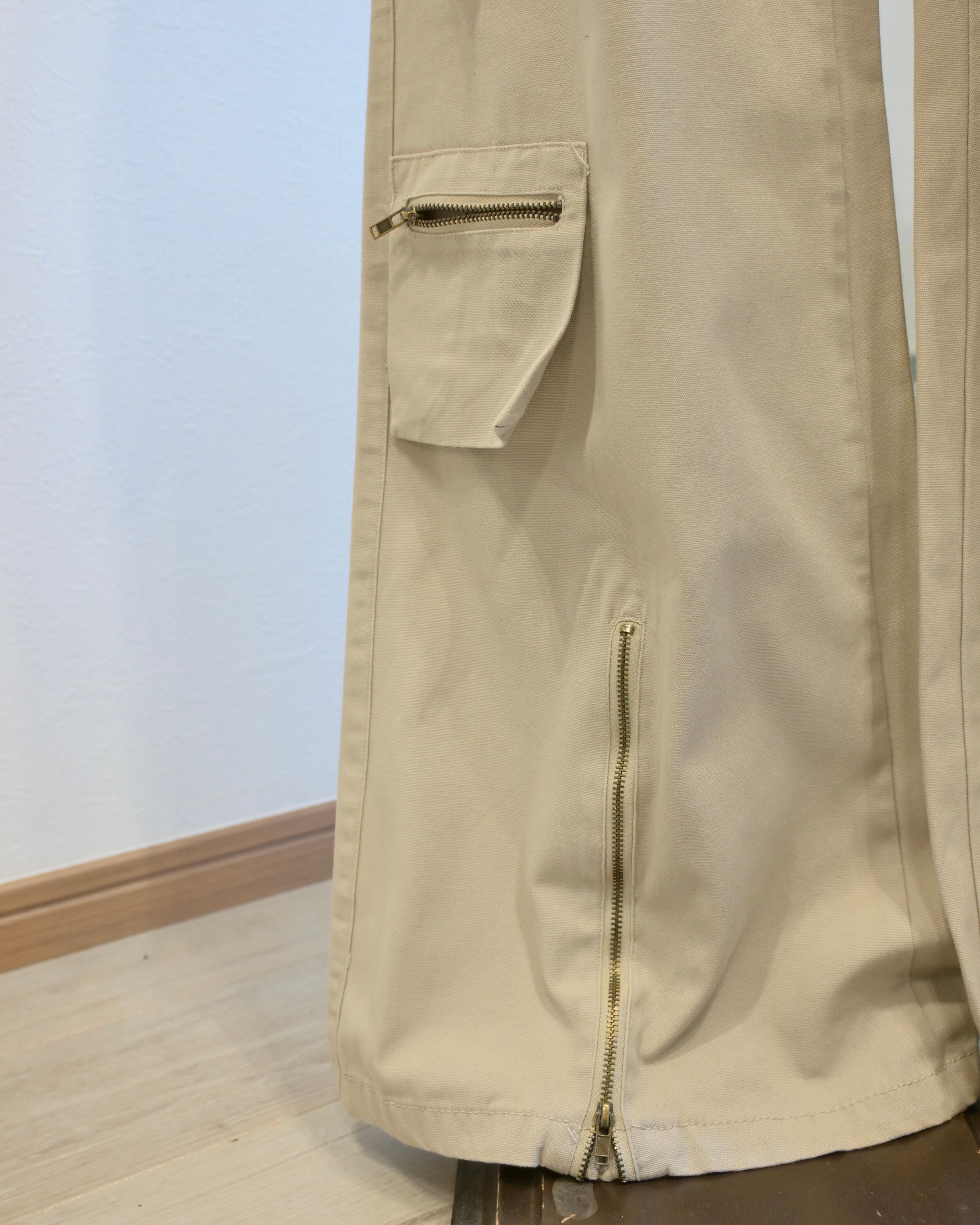 さらに左右にジップポケット、フラップポケットと異なるデザインのポケットが付いています。