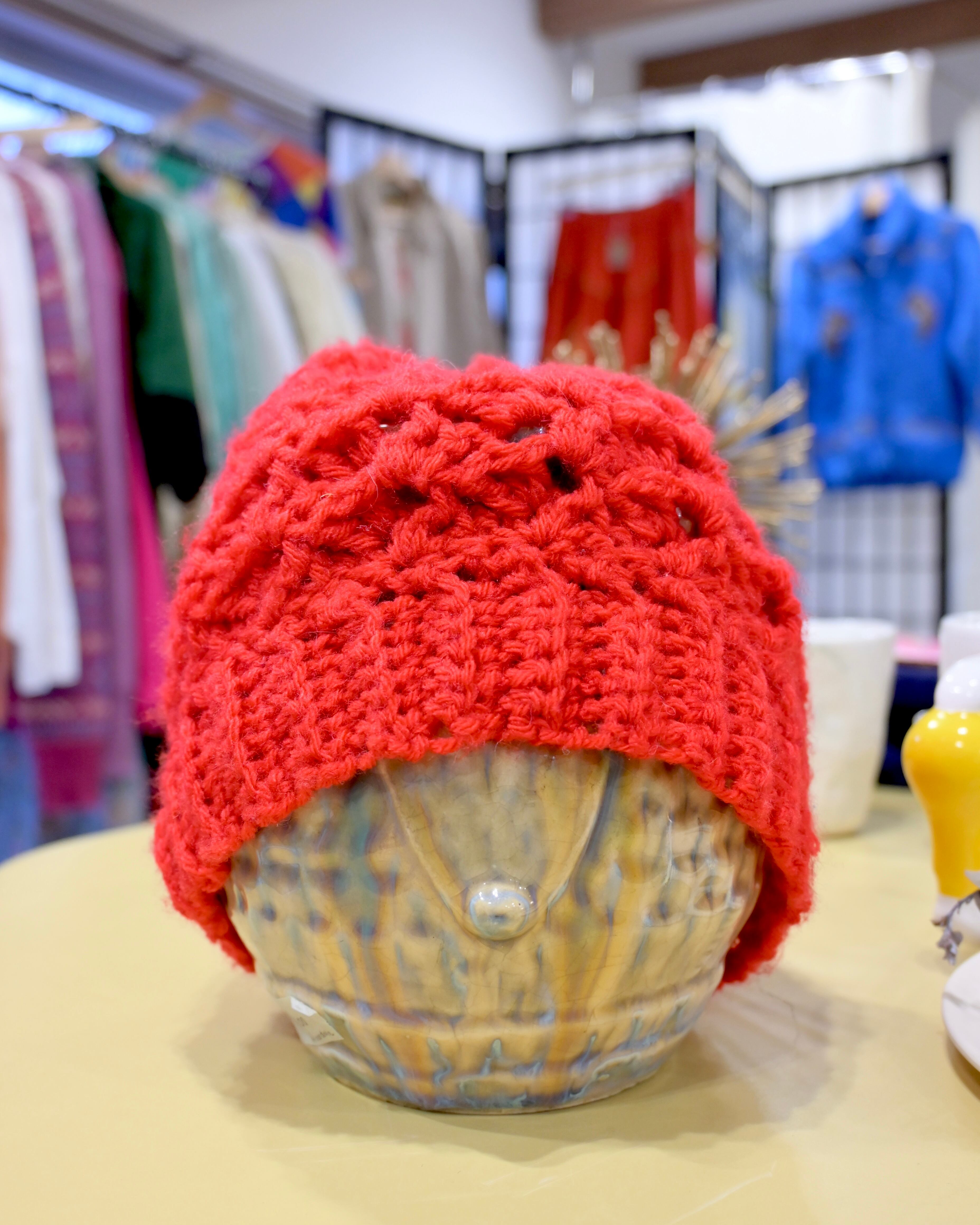 春にも使えるニット帽。おすすめです。