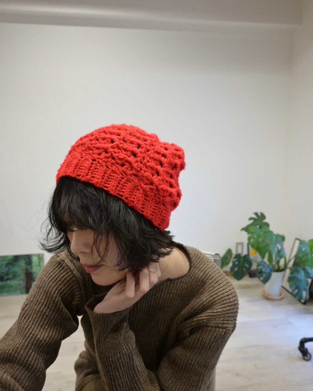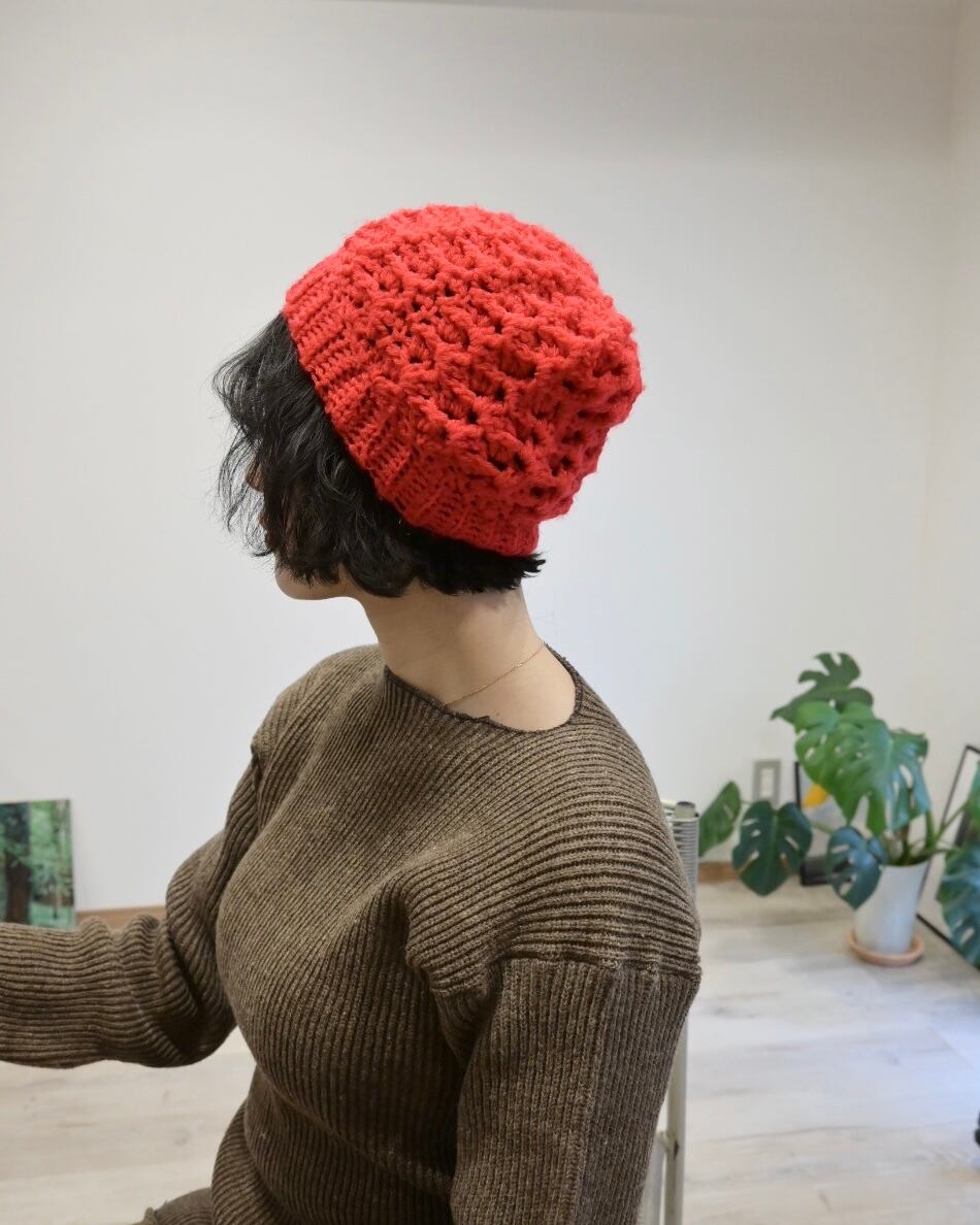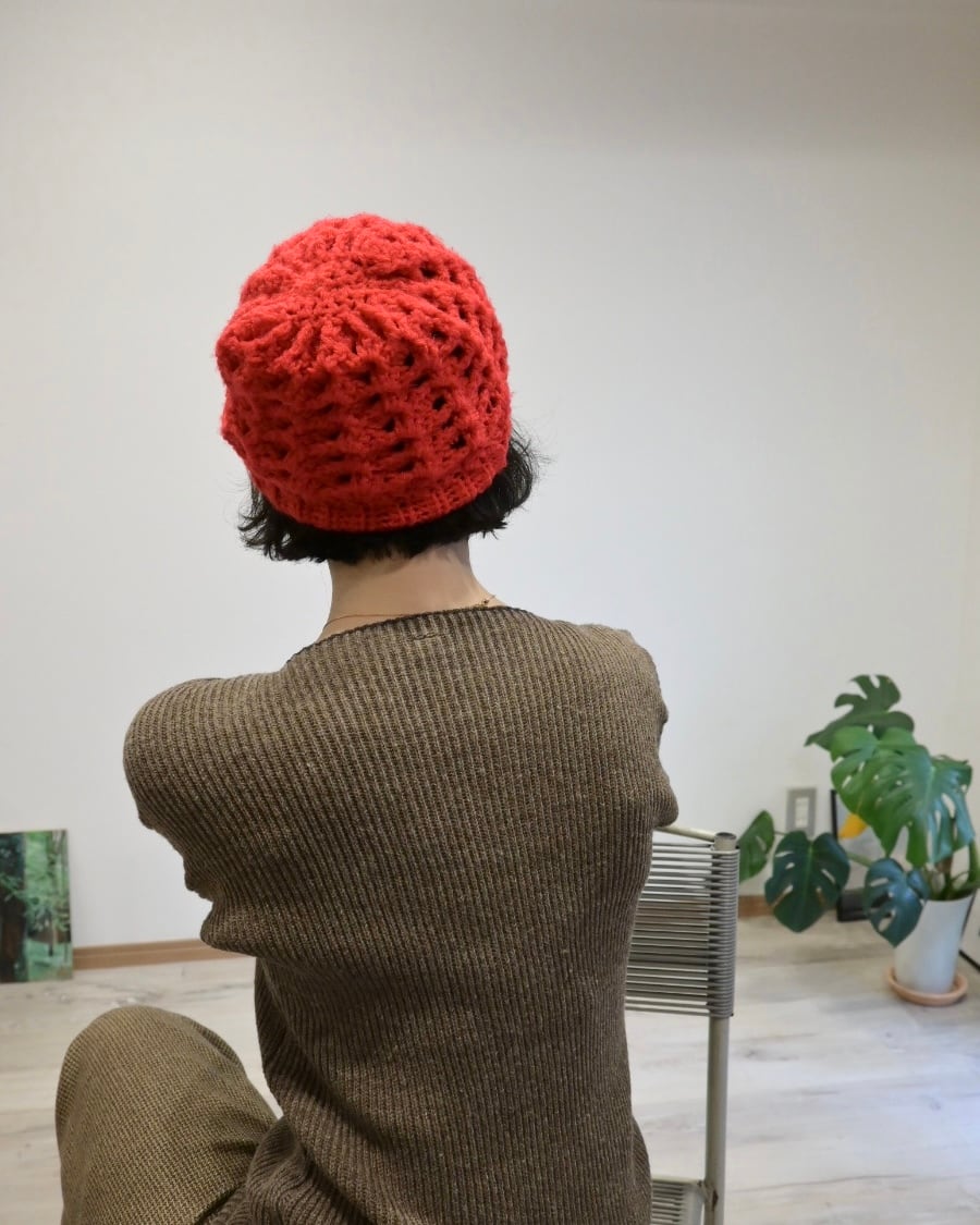 クロシェ編みのような透け感のあるビーニー