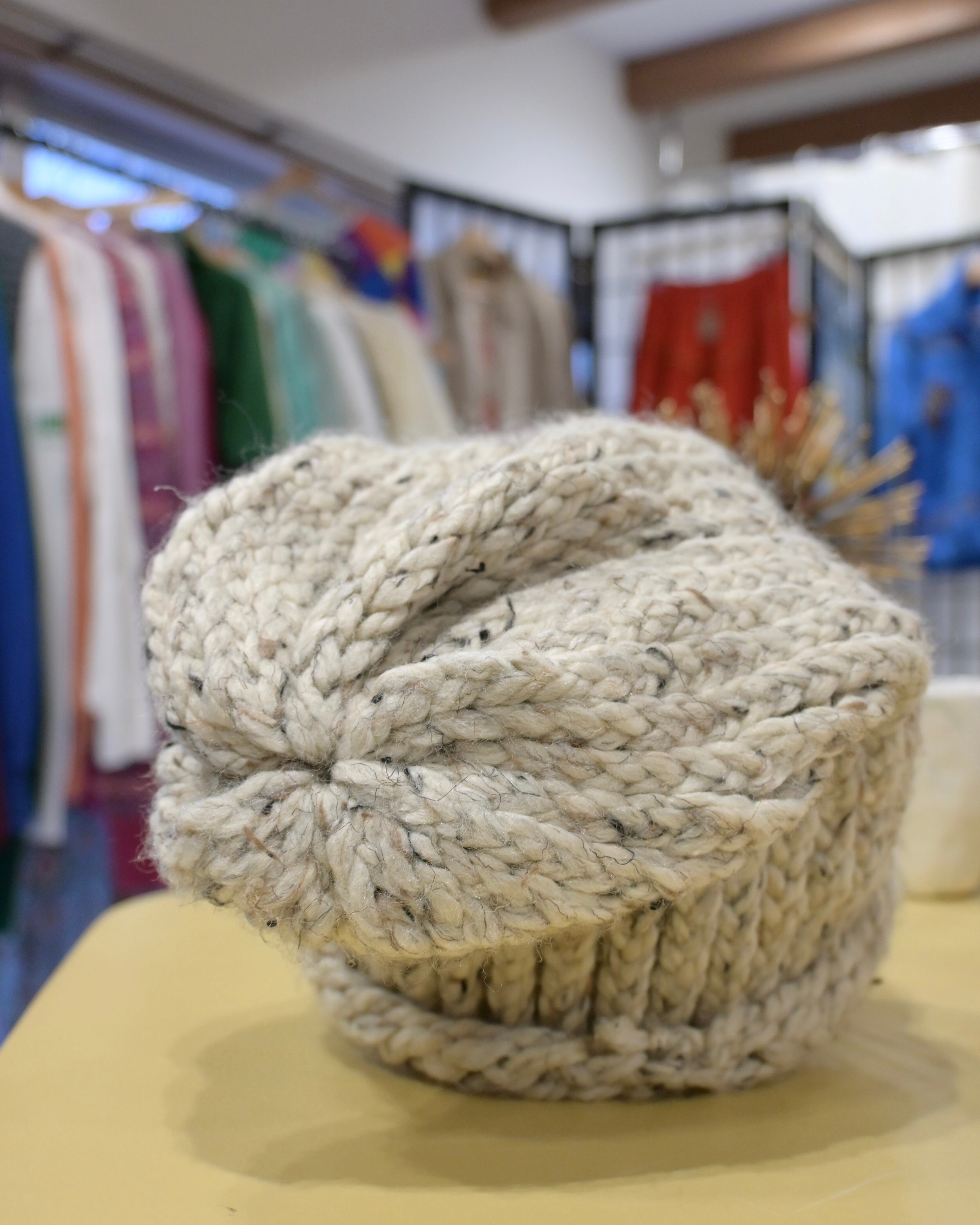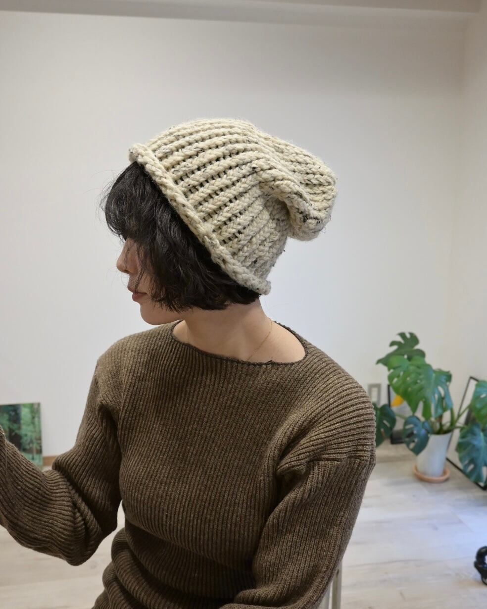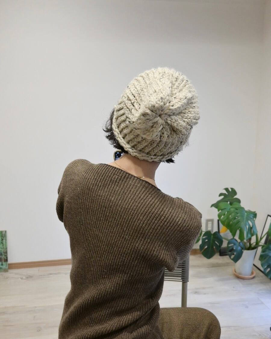 ベージュにブラックのミックス糸のビーニー
