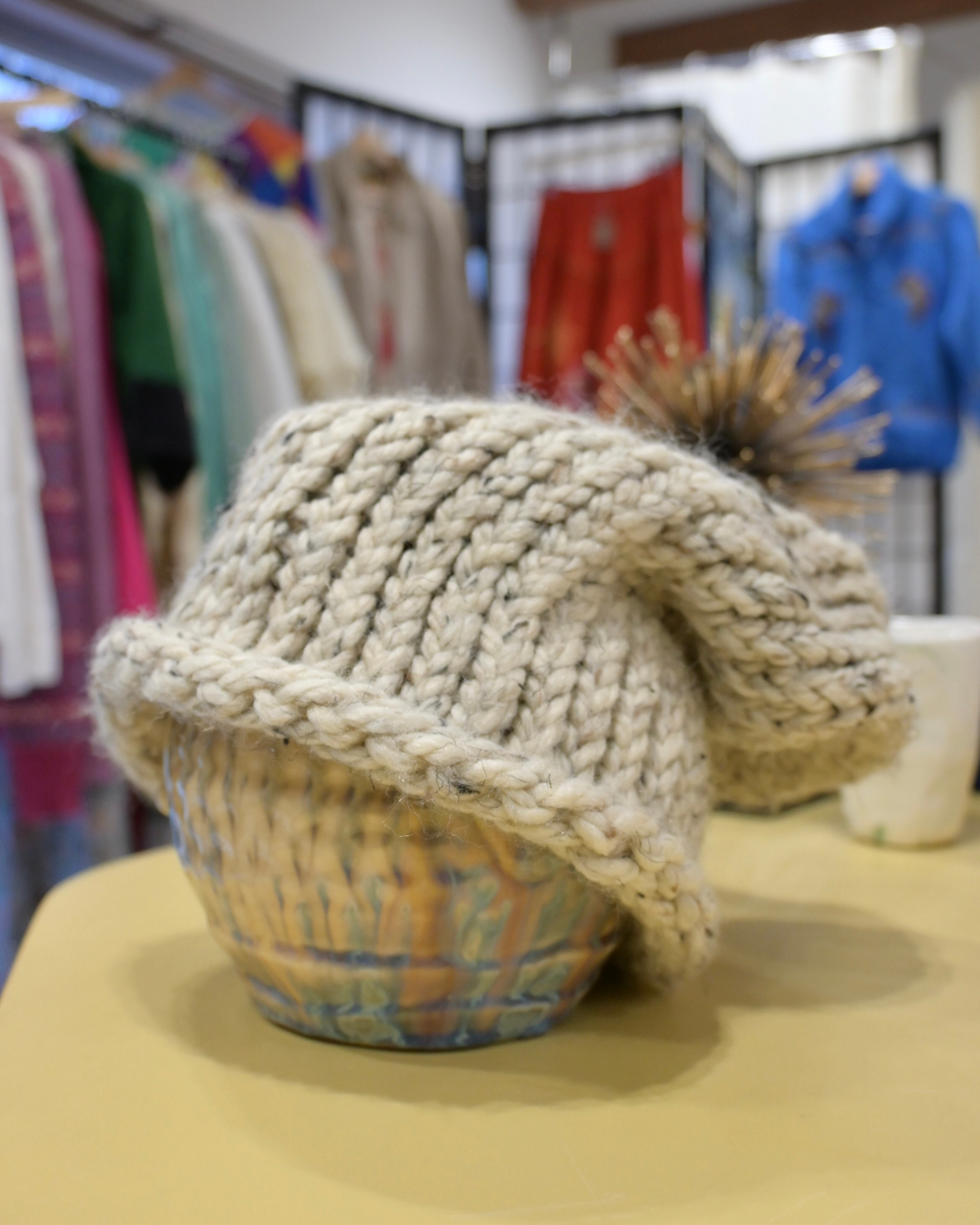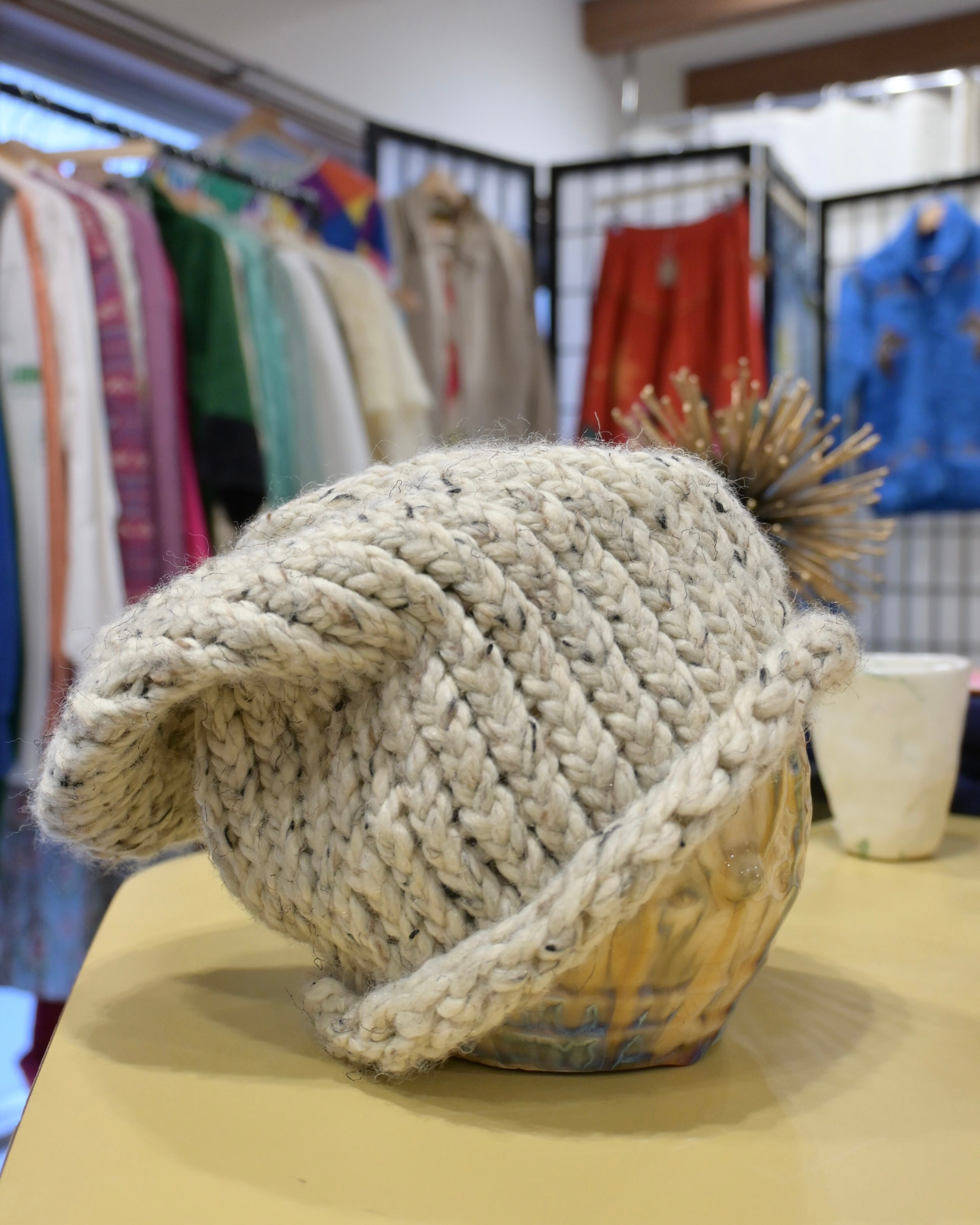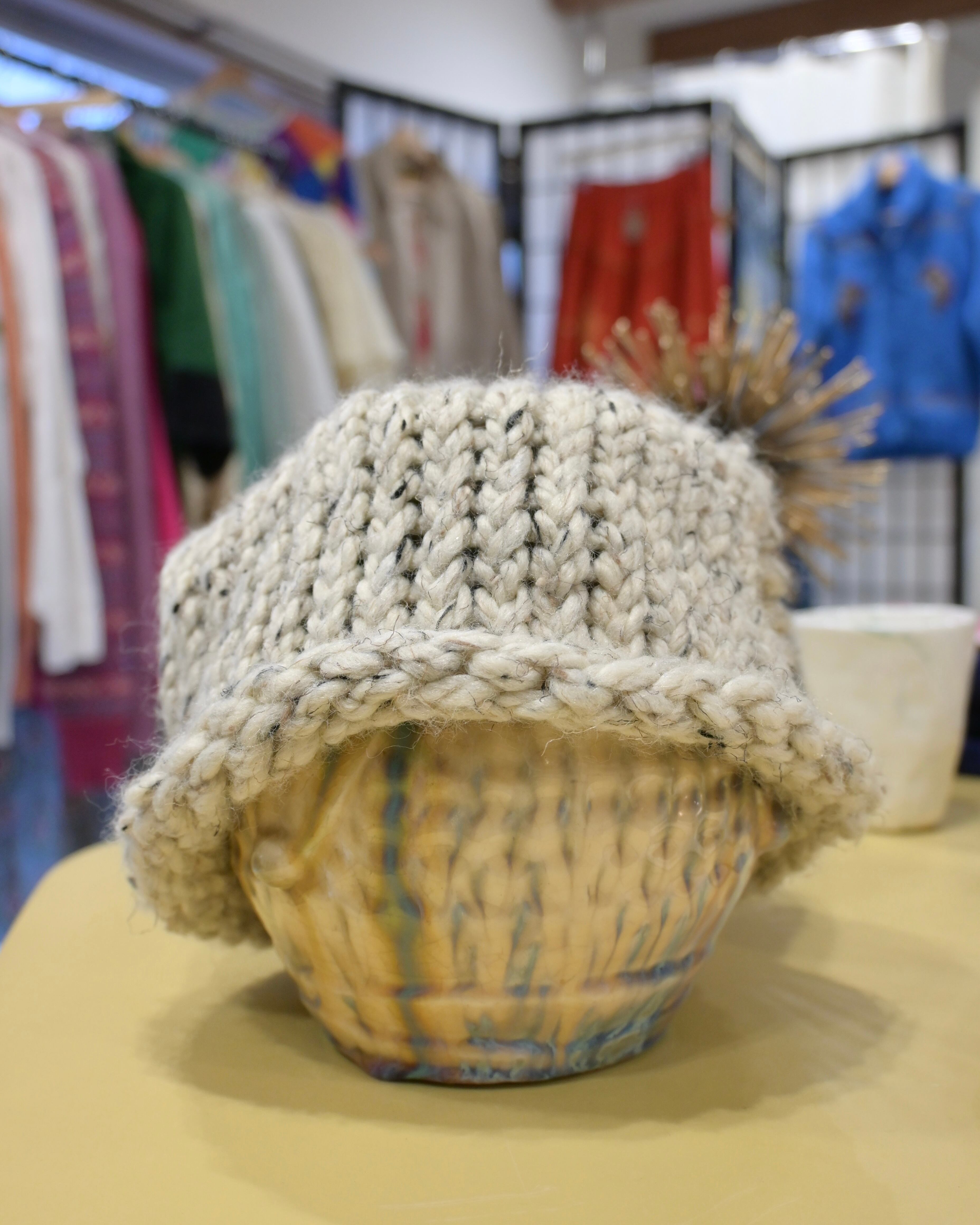 ベージュにブラックのミックス糸のビーニー