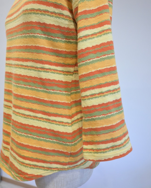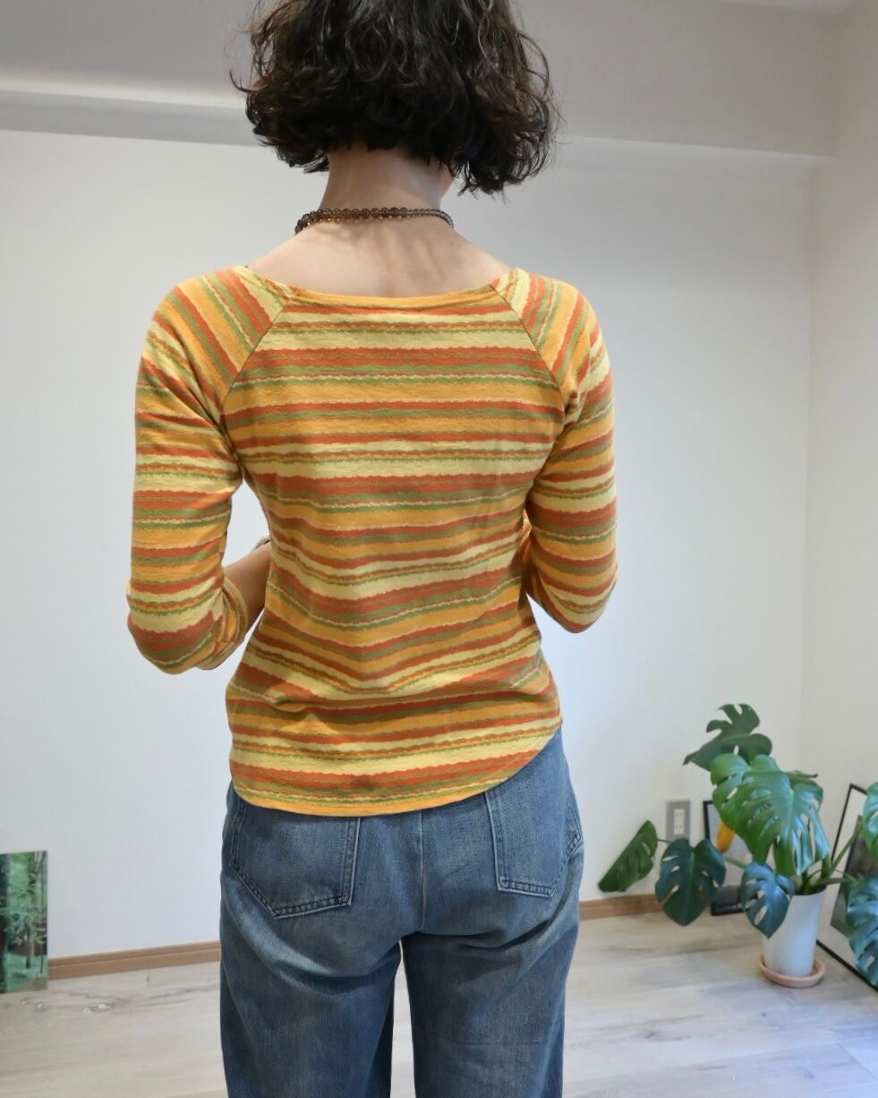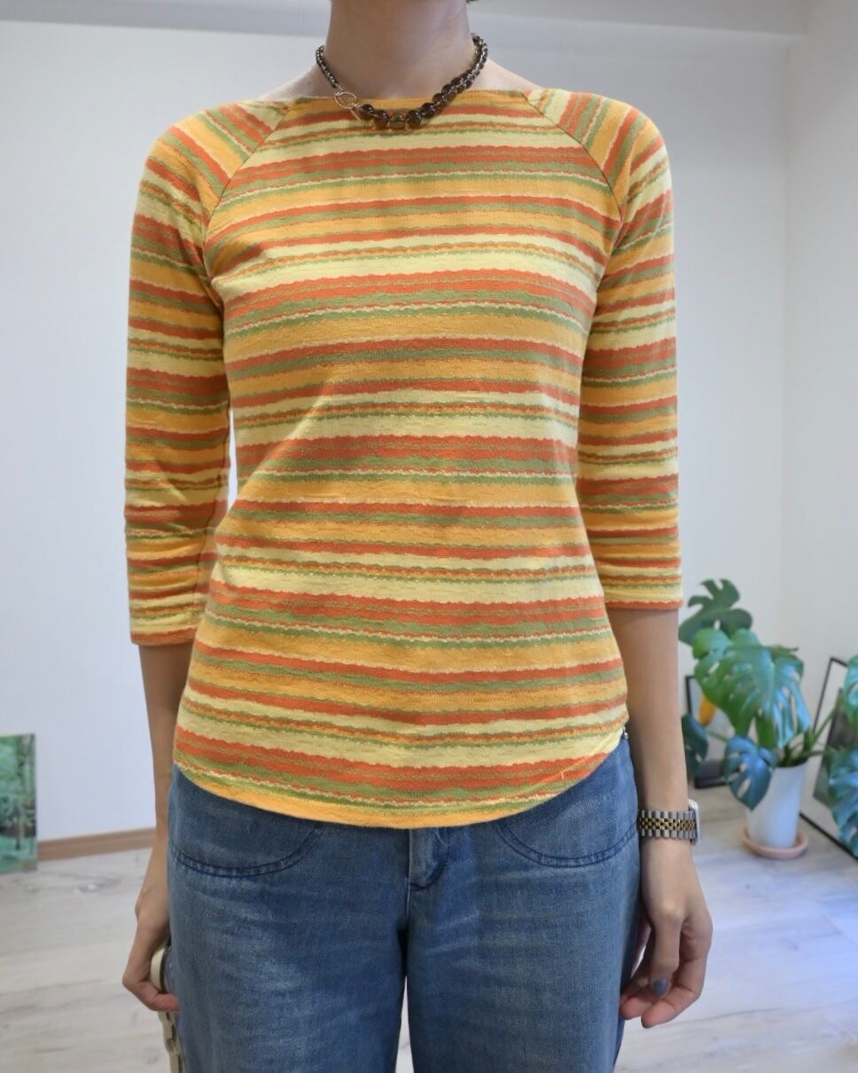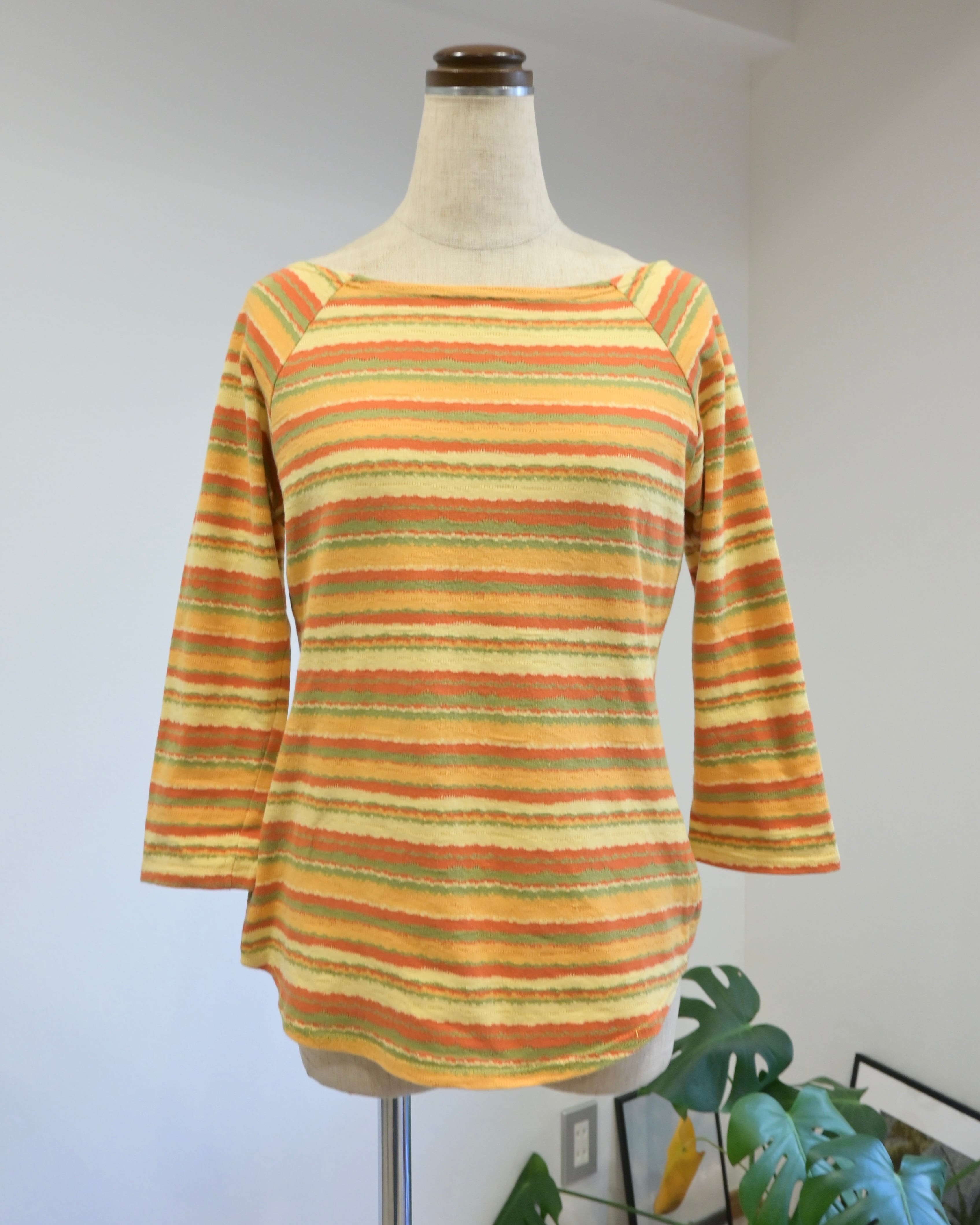 オレンジ、イエロー、グリーン、、春を思わせるごきげんカラーのボーダートップ