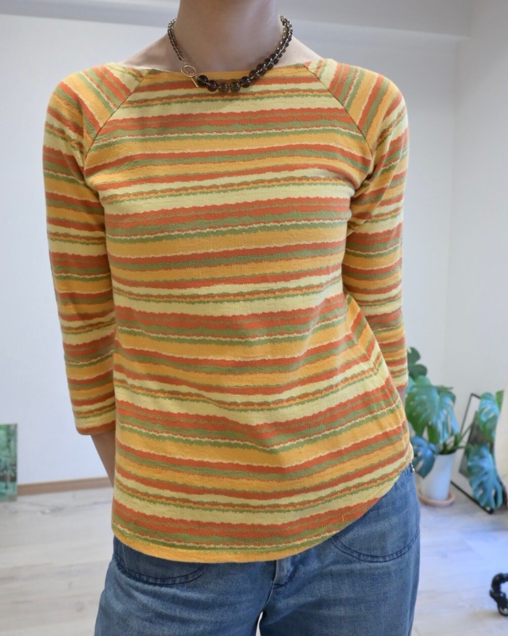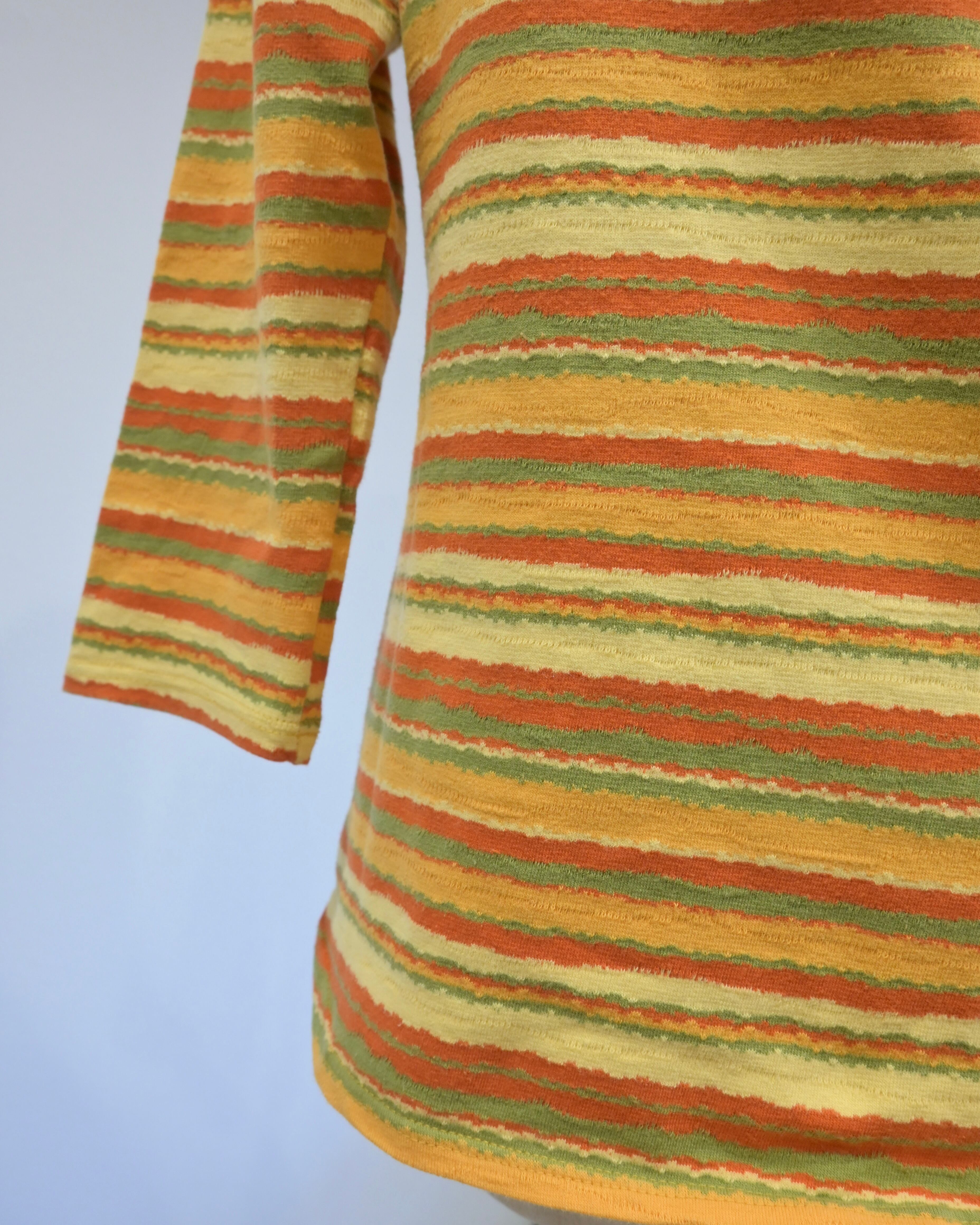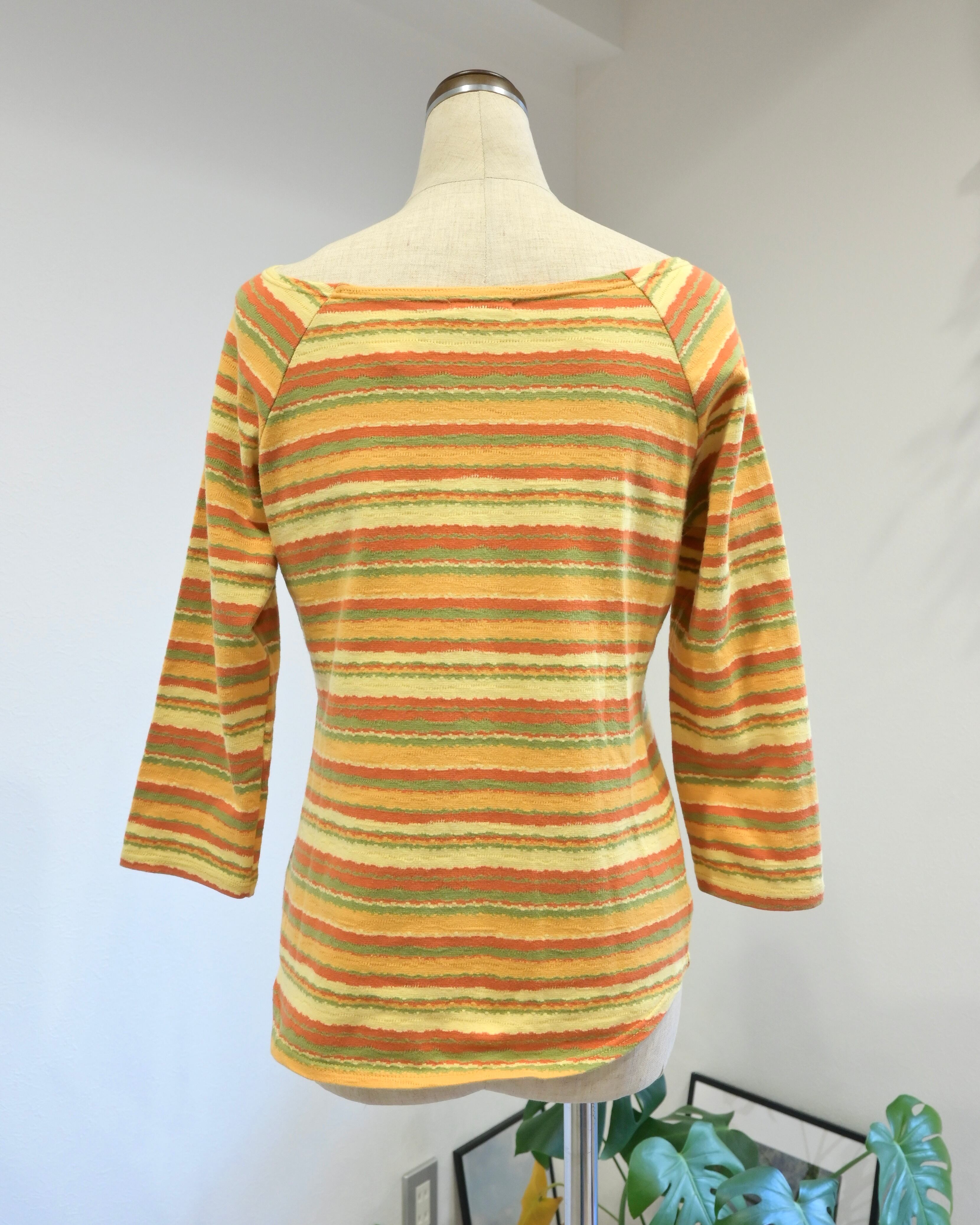 オレンジ、イエロー、グリーン、、春を思わせるごきげんカラーのボーダートップ