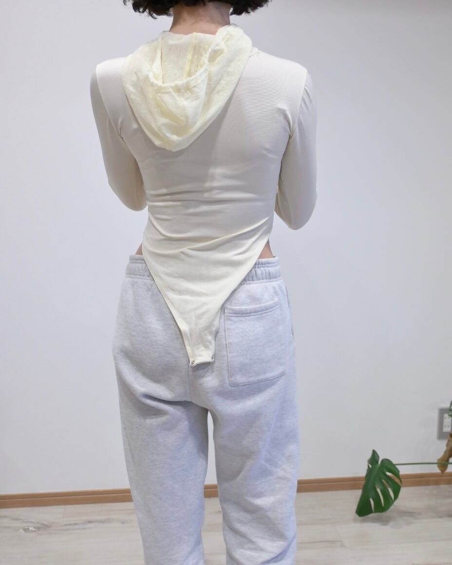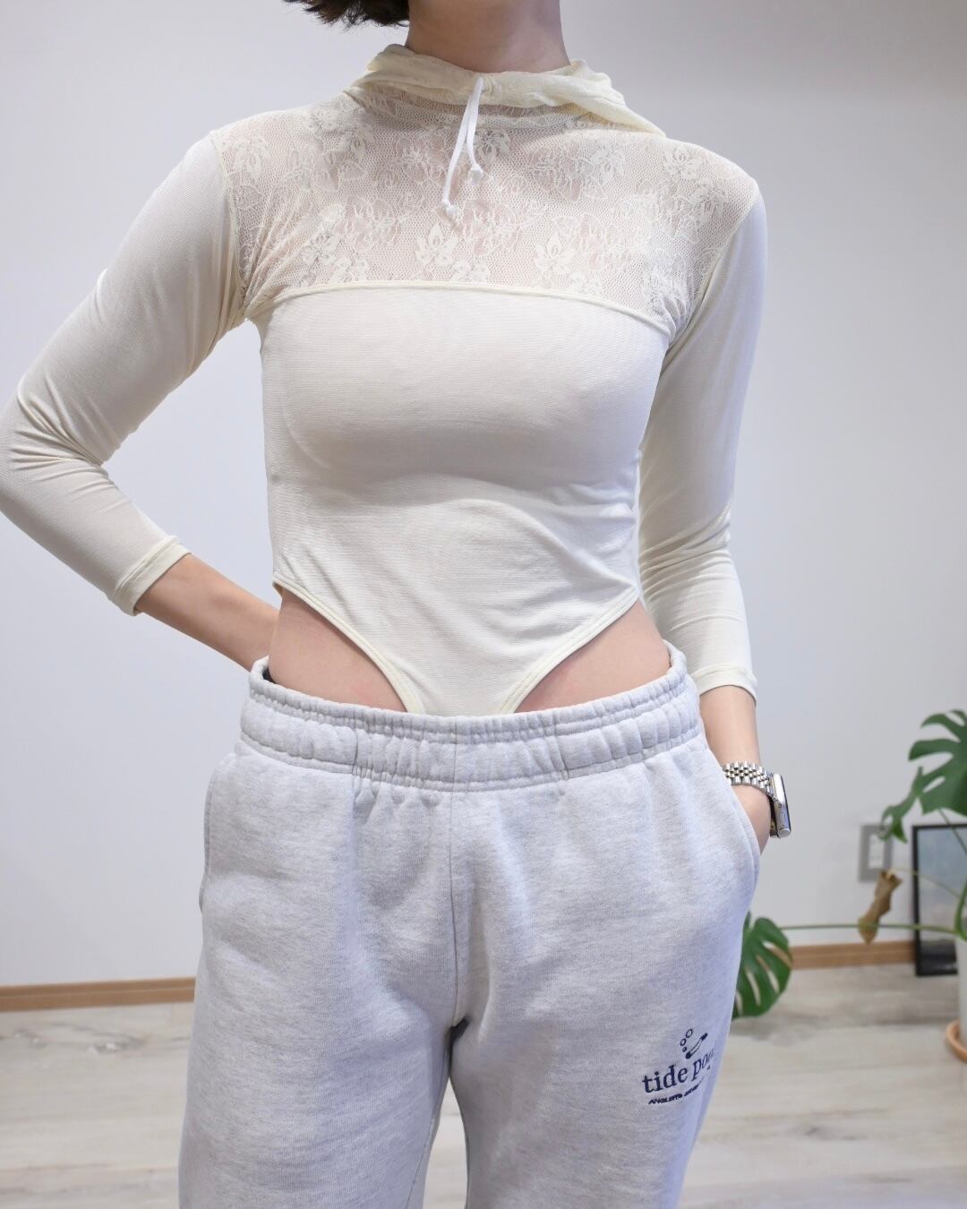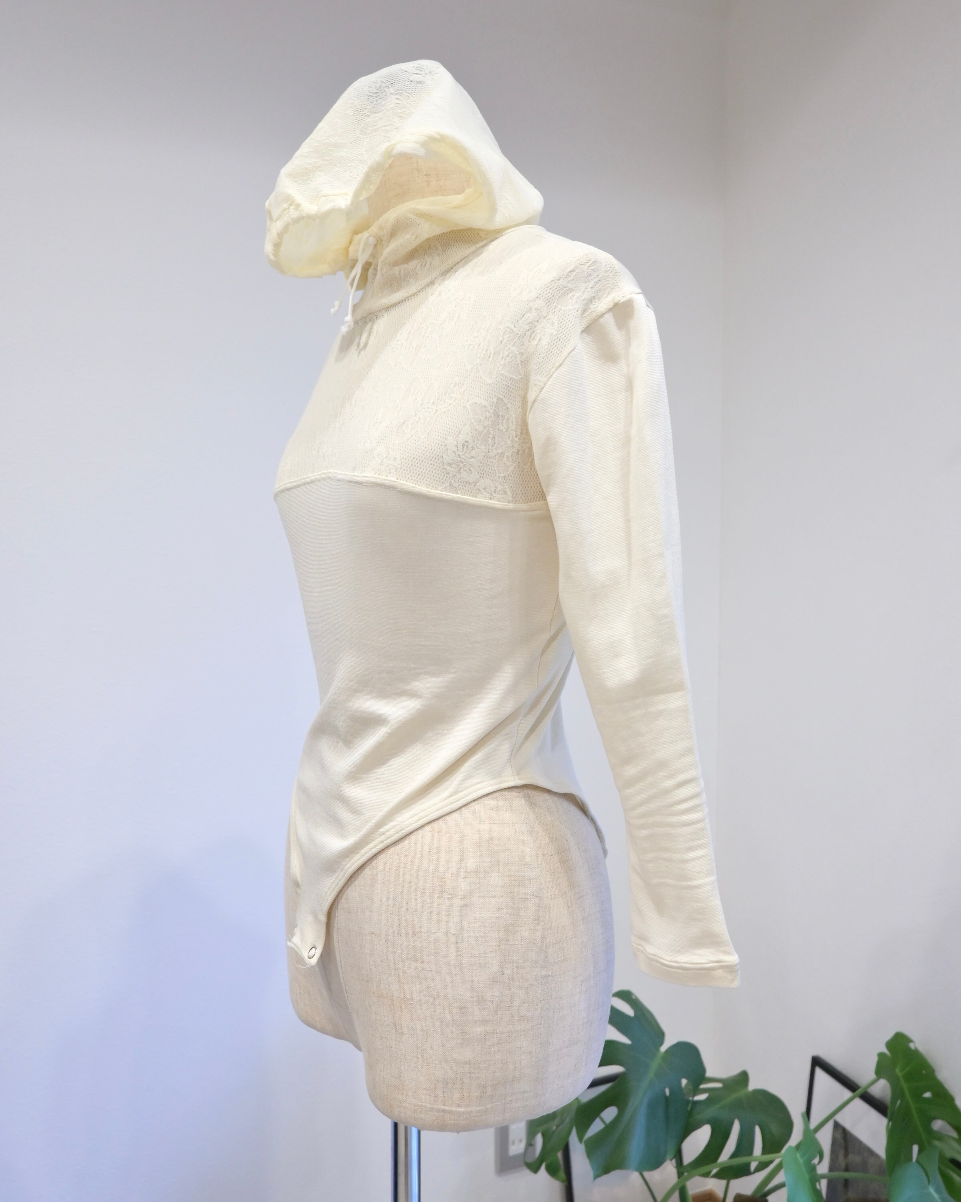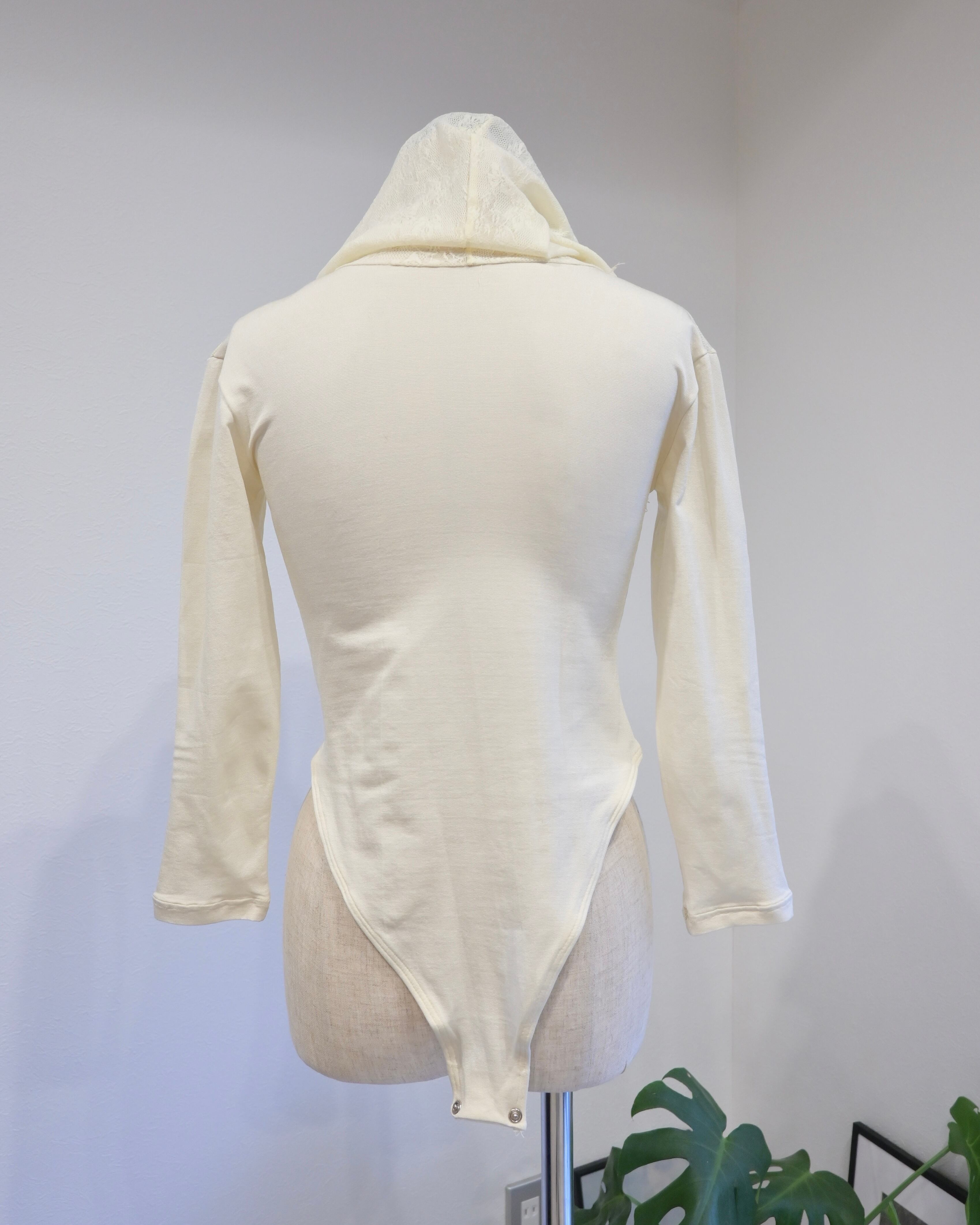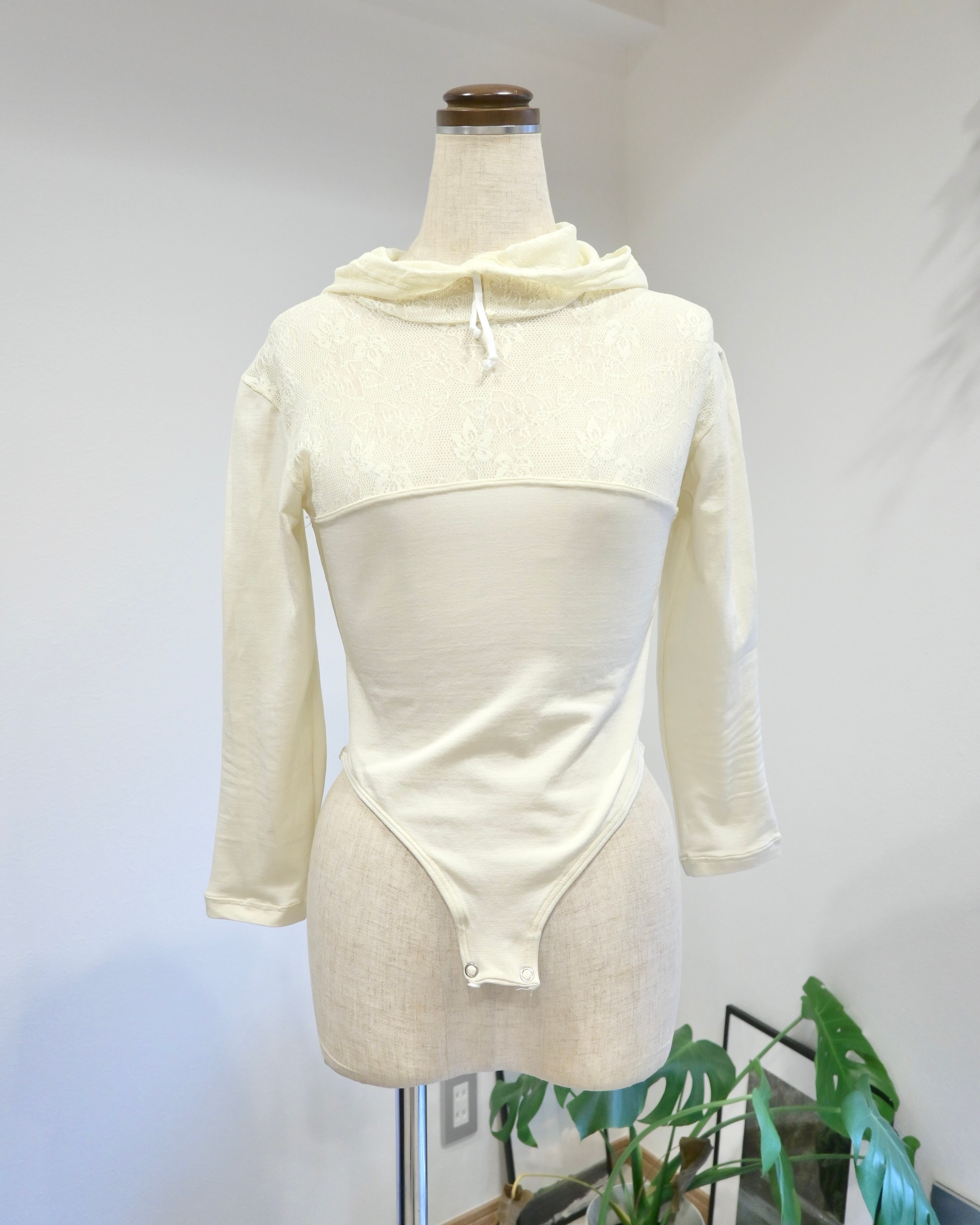 なかなか見たことのないフード付きボディスーツ。おすすめです!