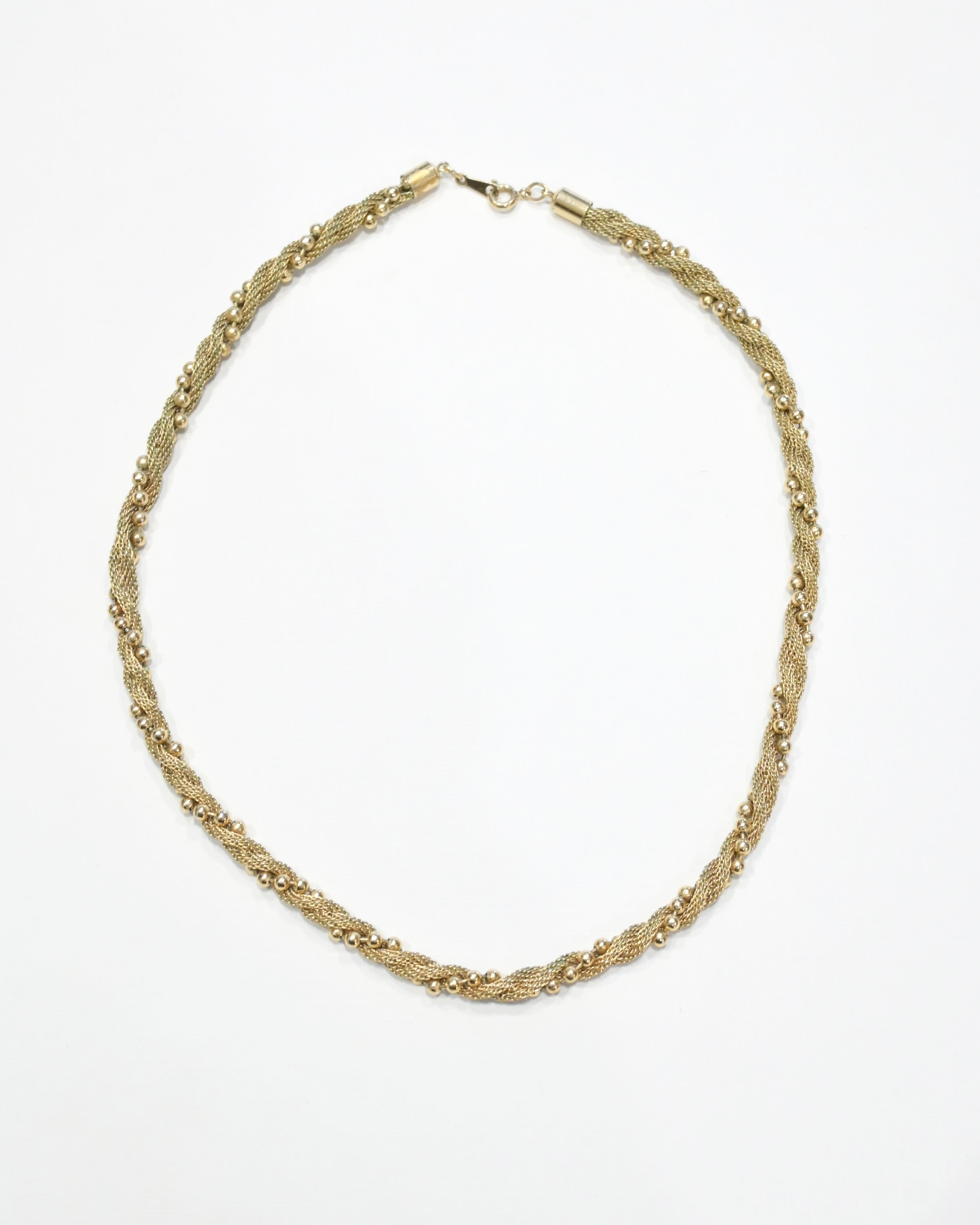 くすみのあるゴールドの落ち着いた色味とほどよいボリューム感で首元にアクセントを添えてくれます。