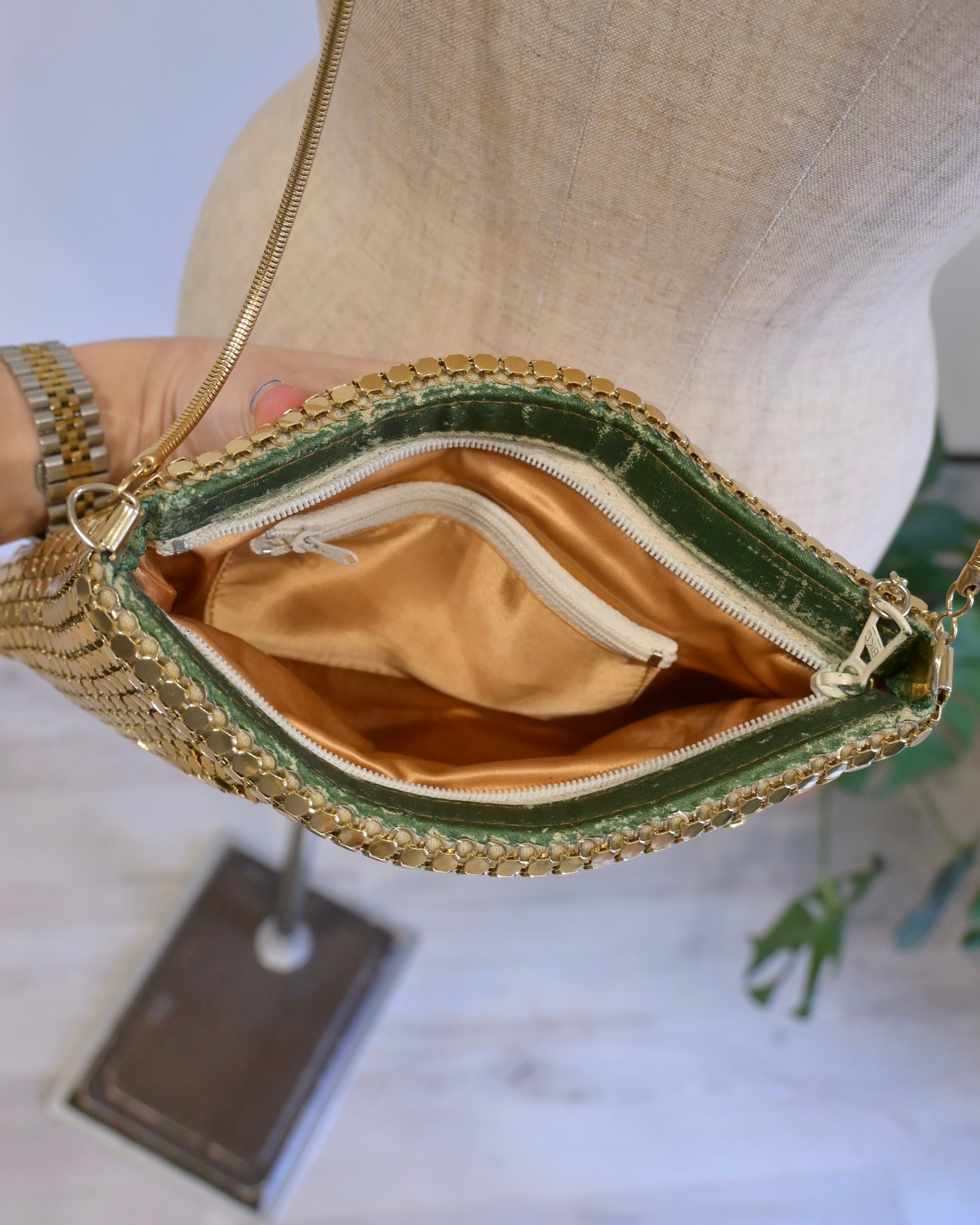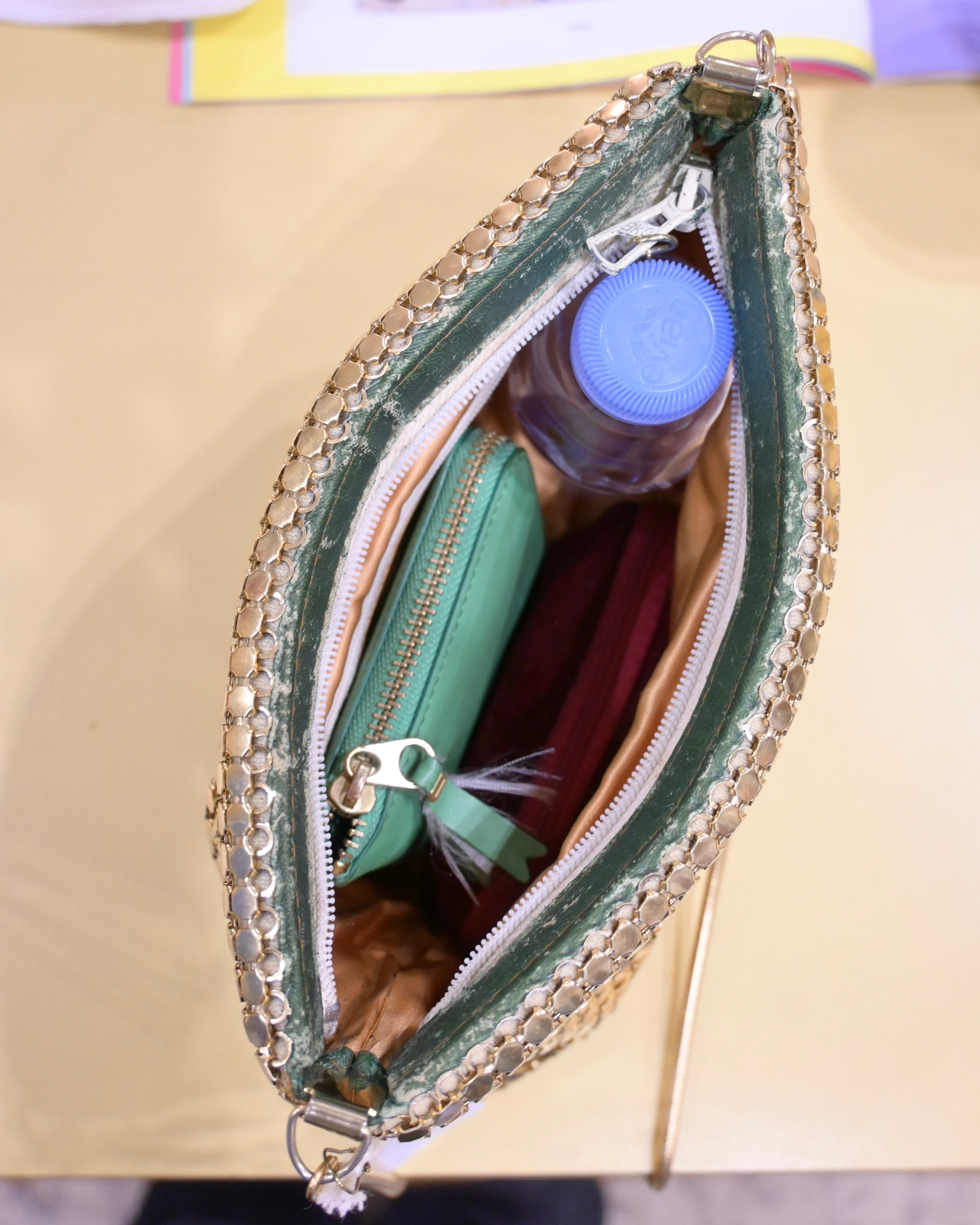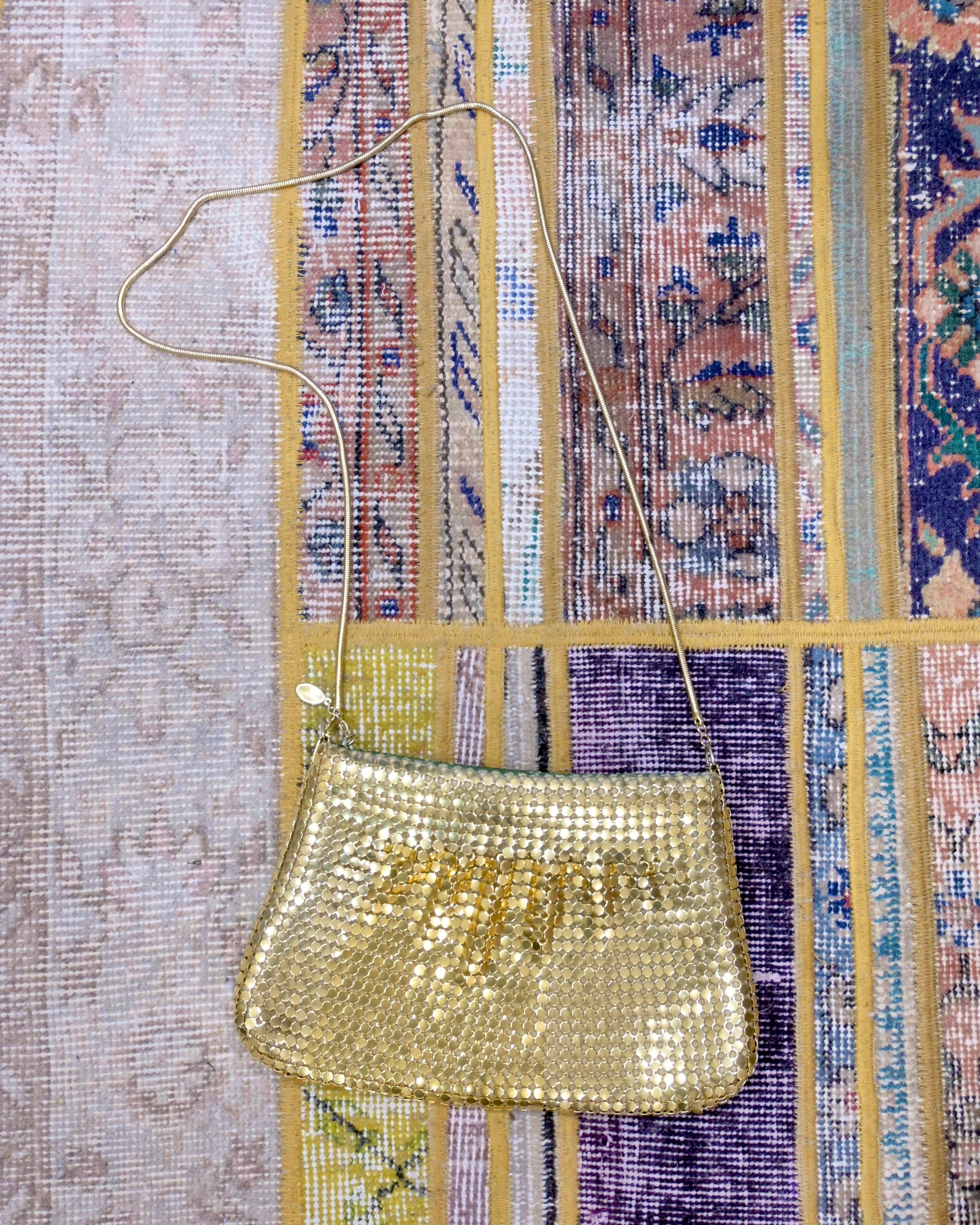 細かなゴールドメタルのパーツが連なったショルダーバッグ