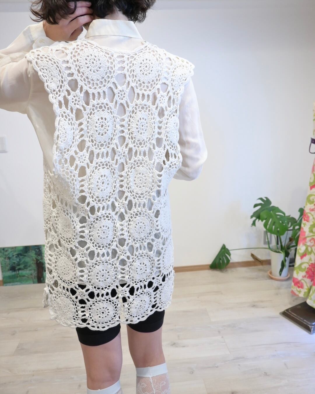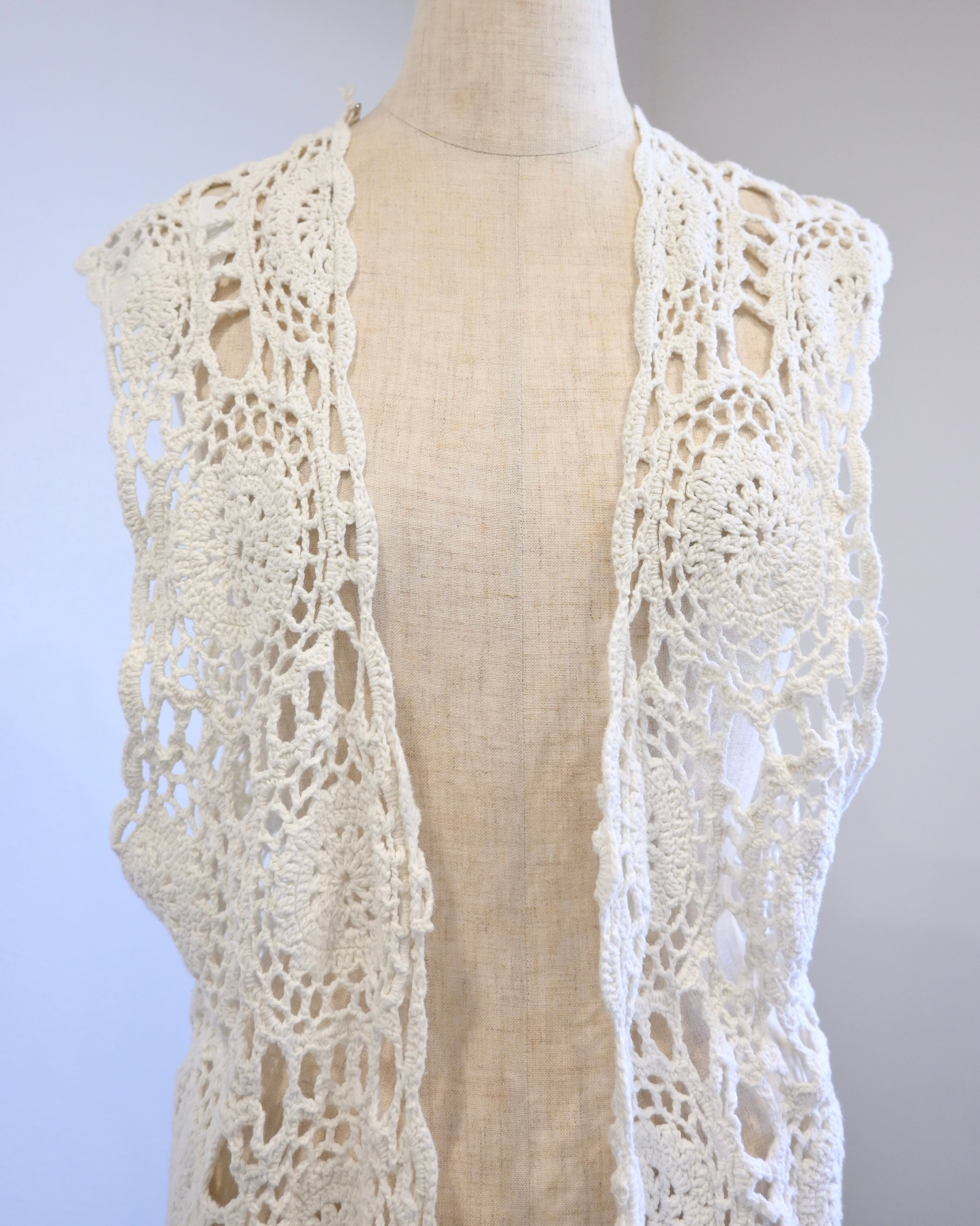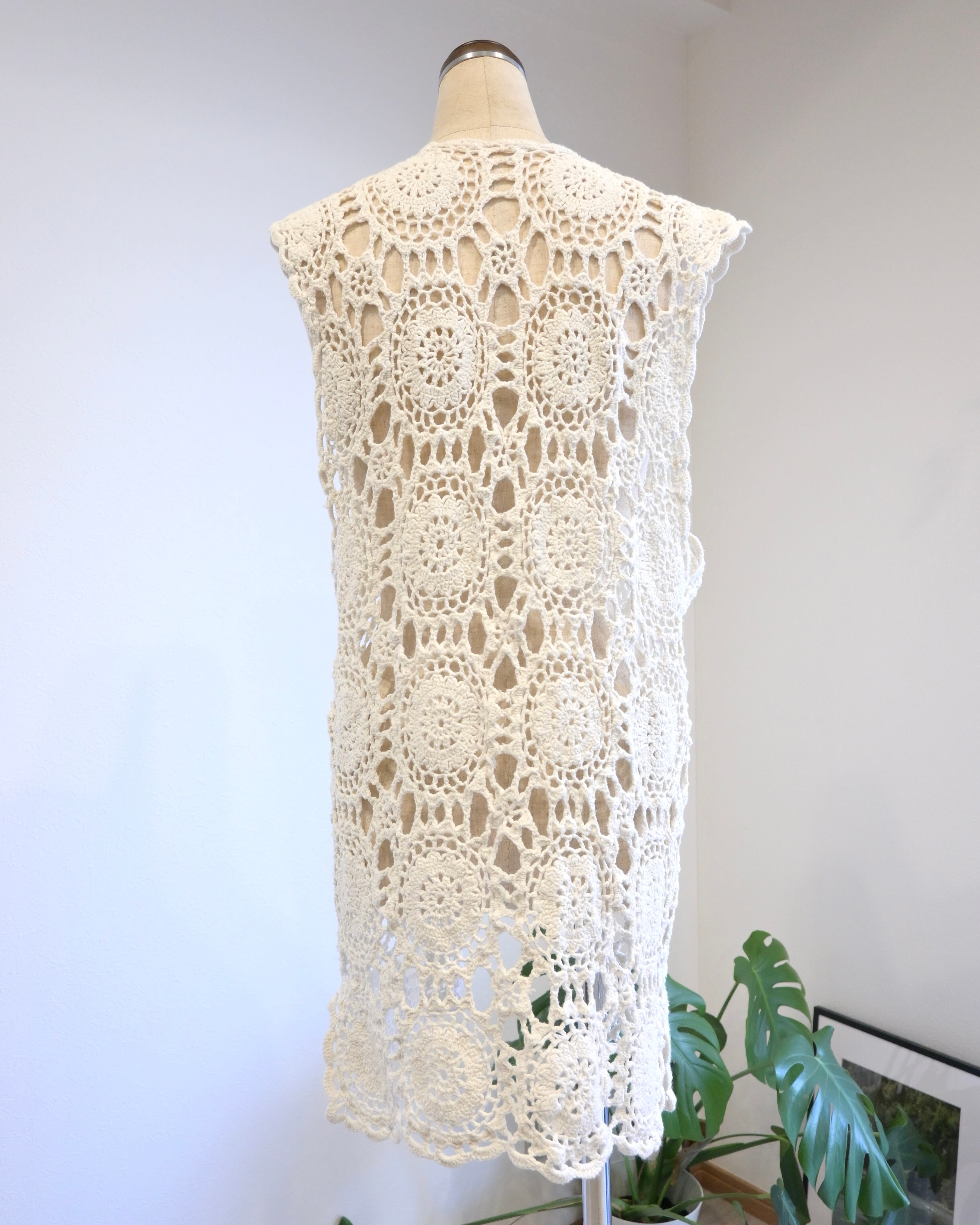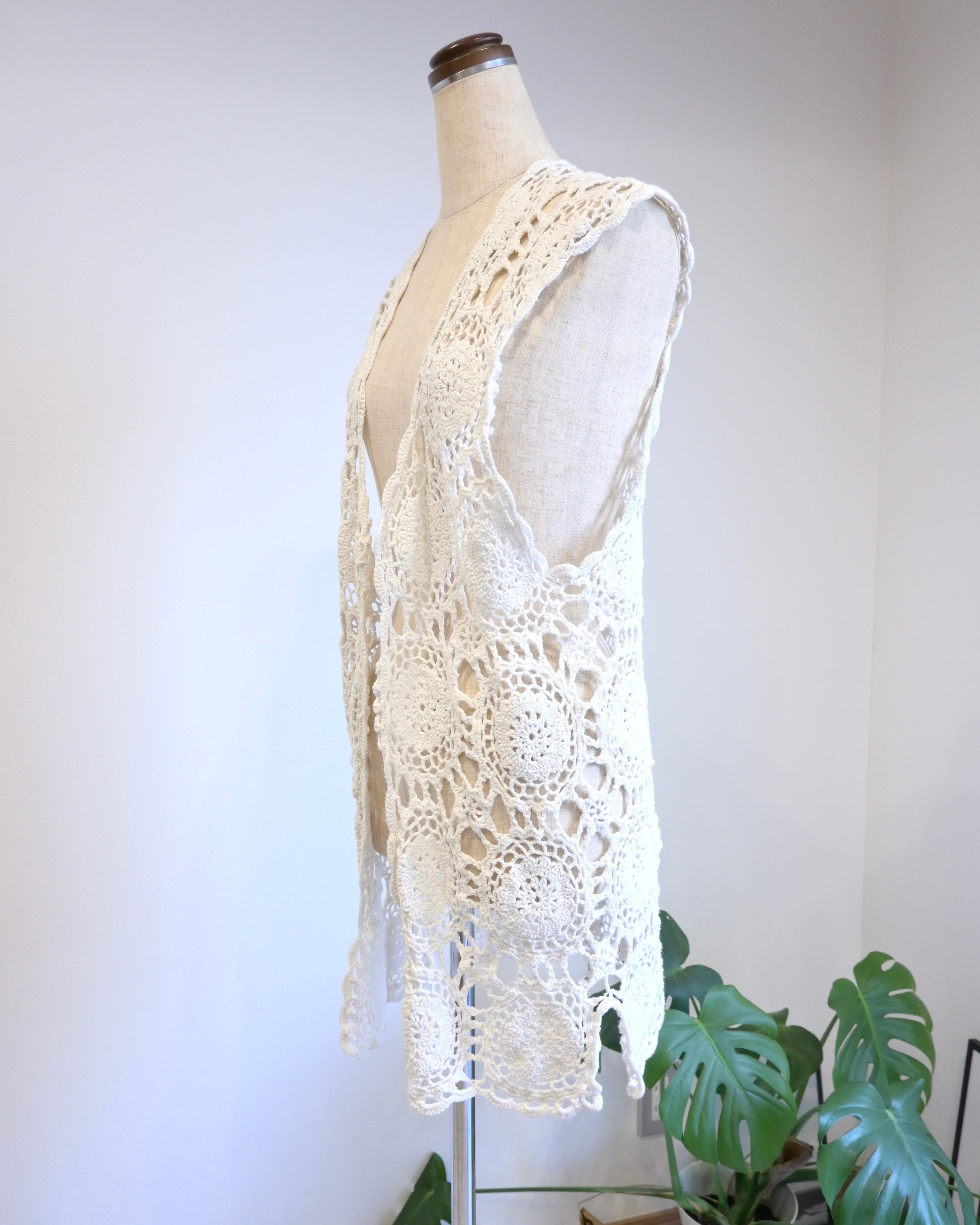 ホワイトのクロシェベスト
