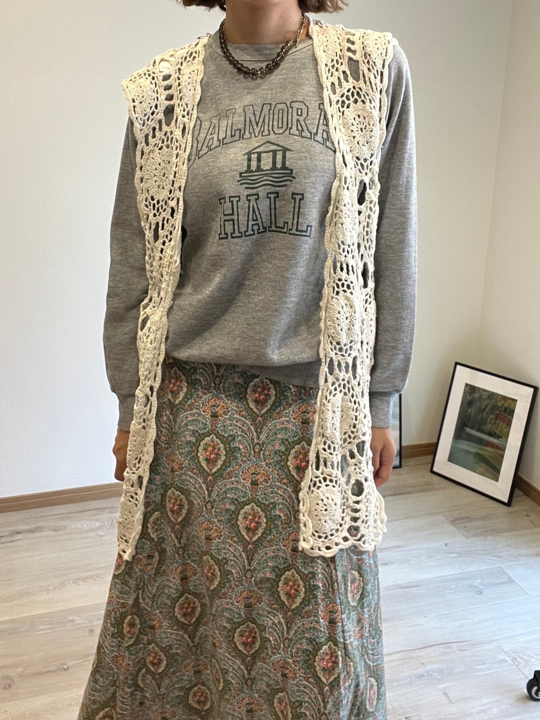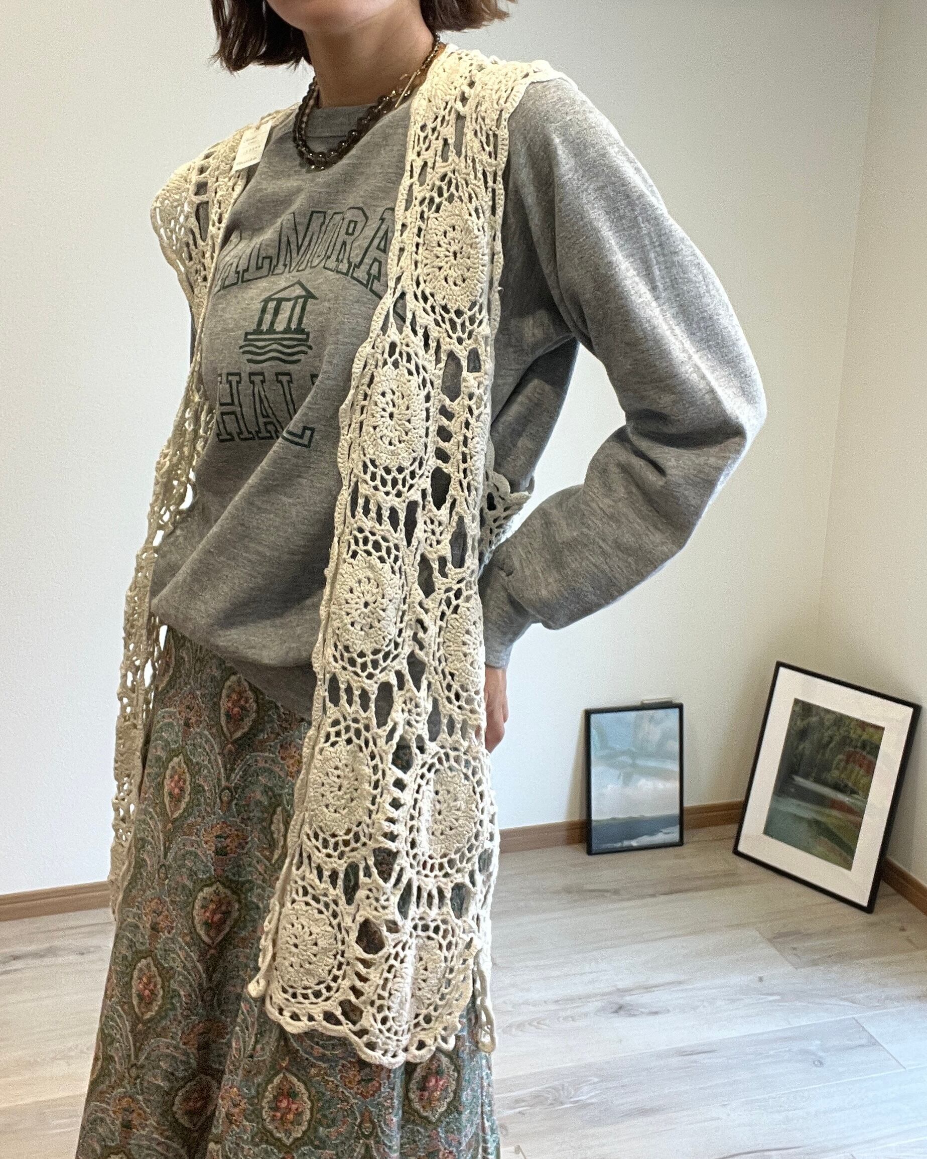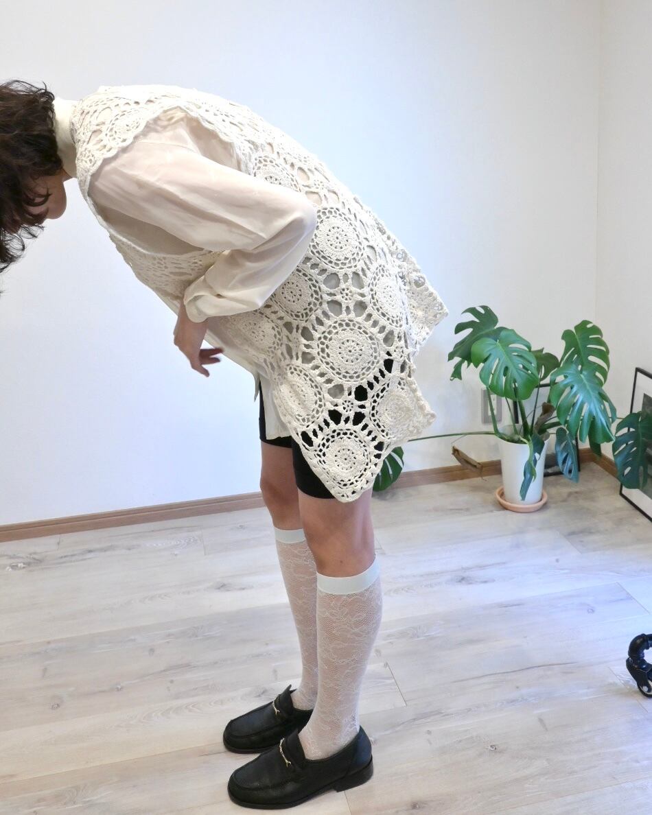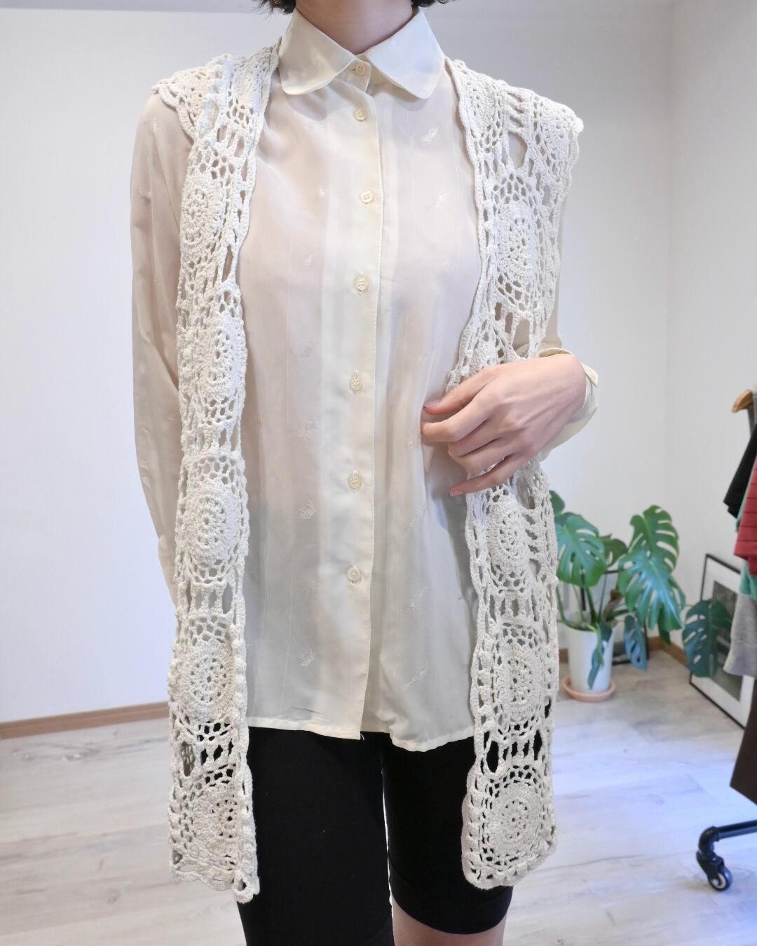 ホワイトのクロシェベスト