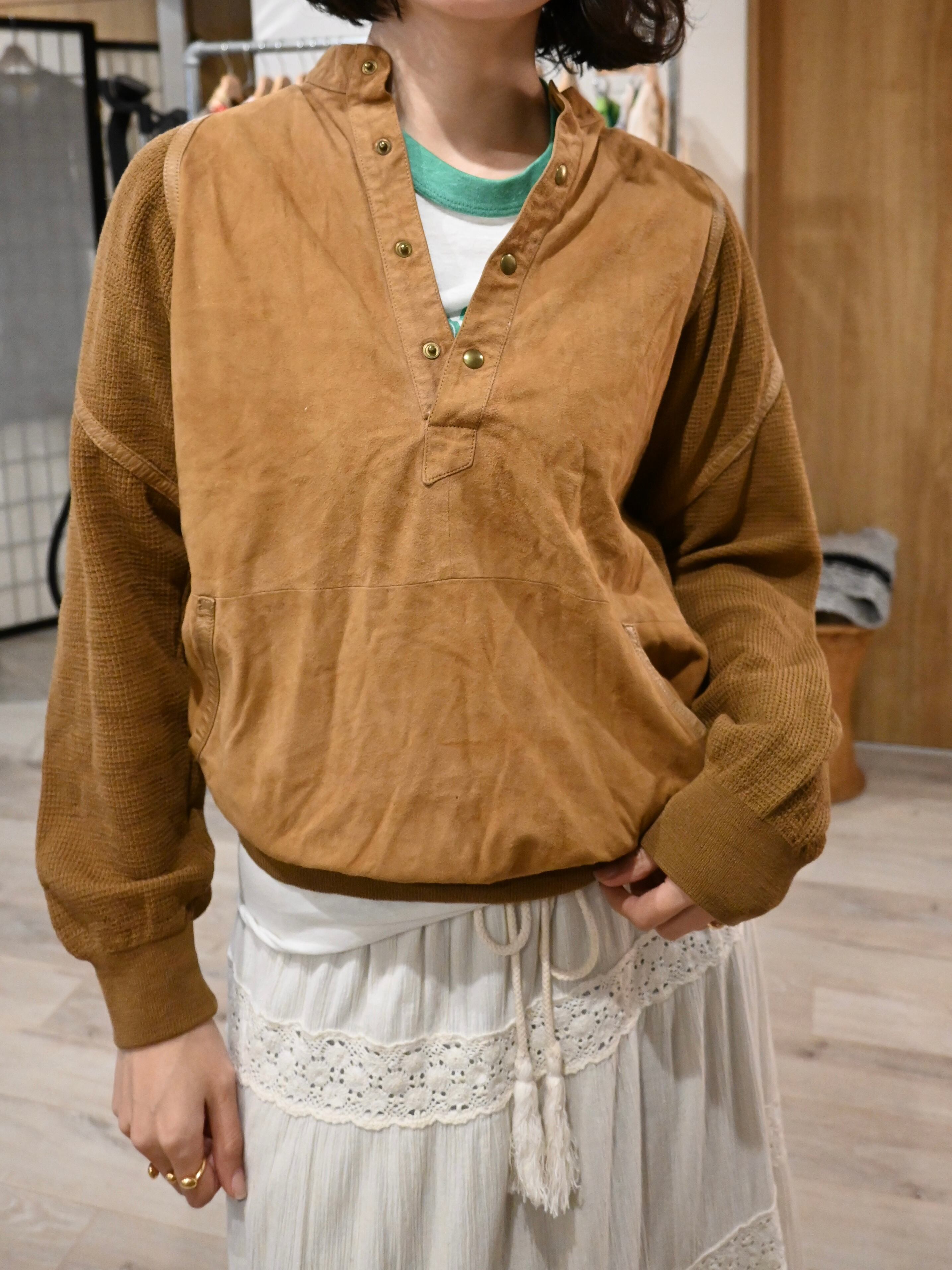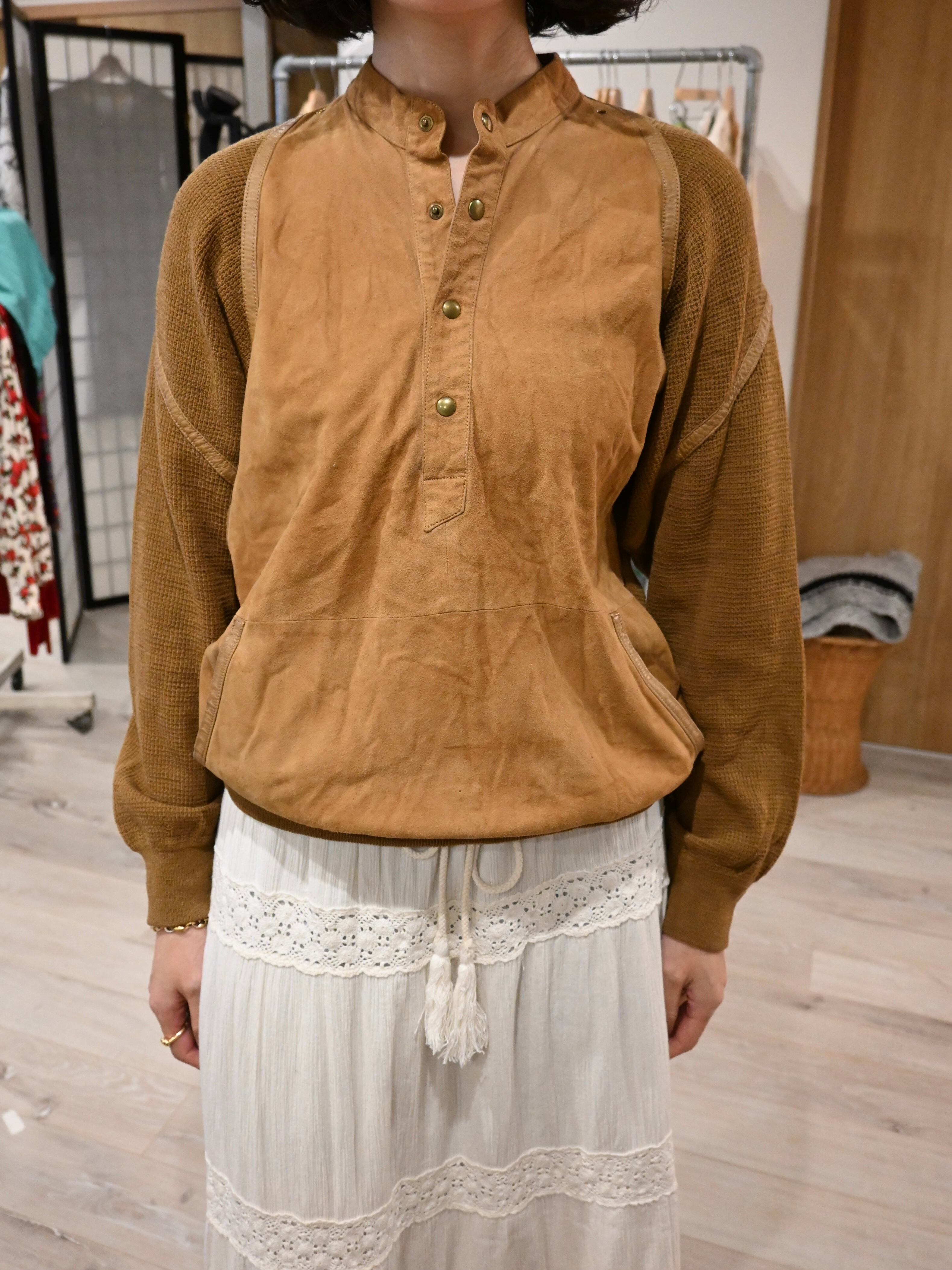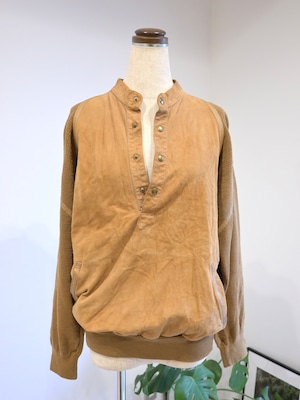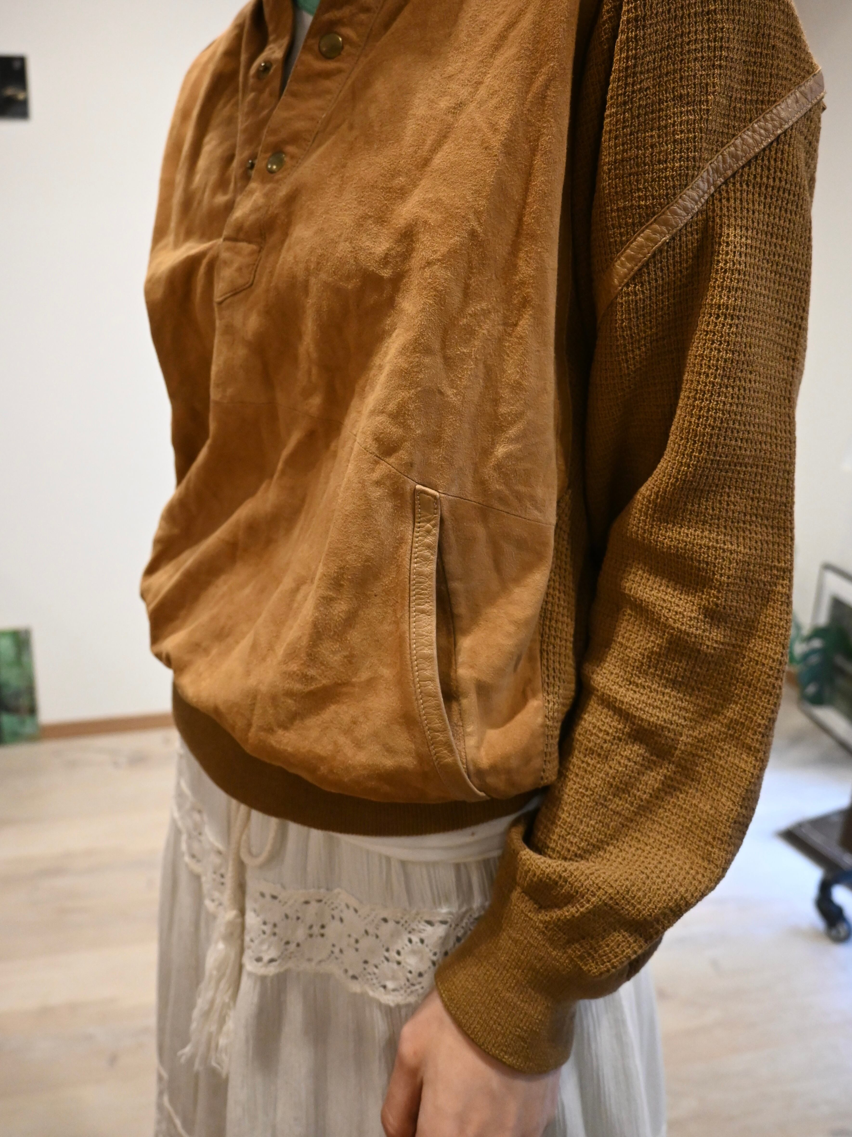 前身頃はスエード、後ろ身頃と袖はニットの切り替えプルオーバー