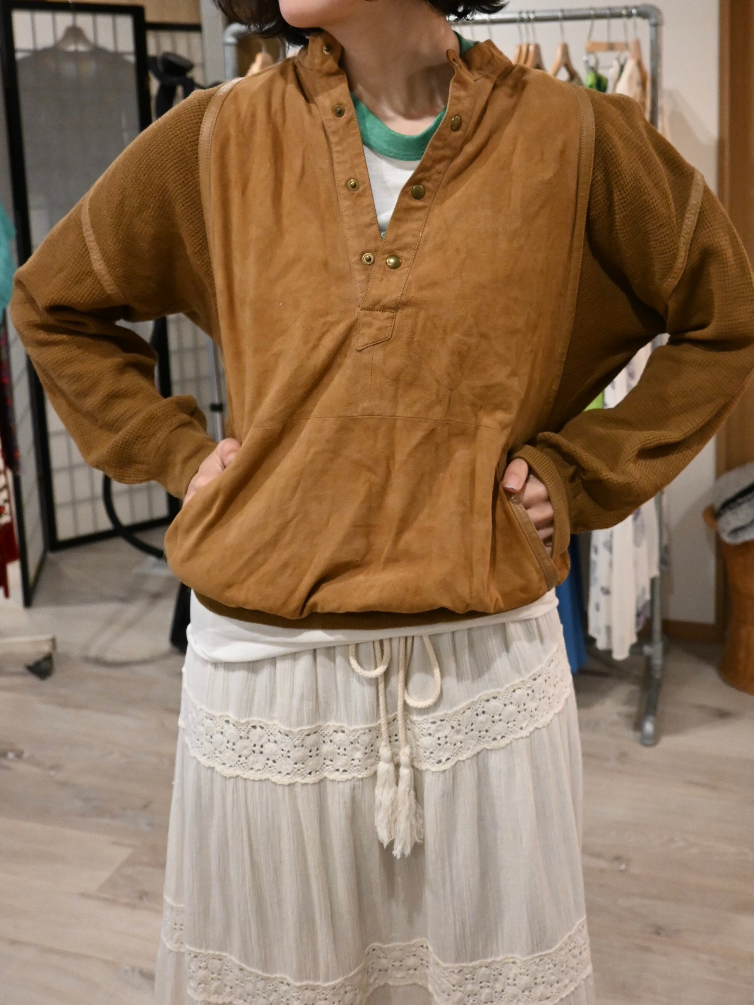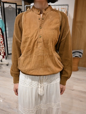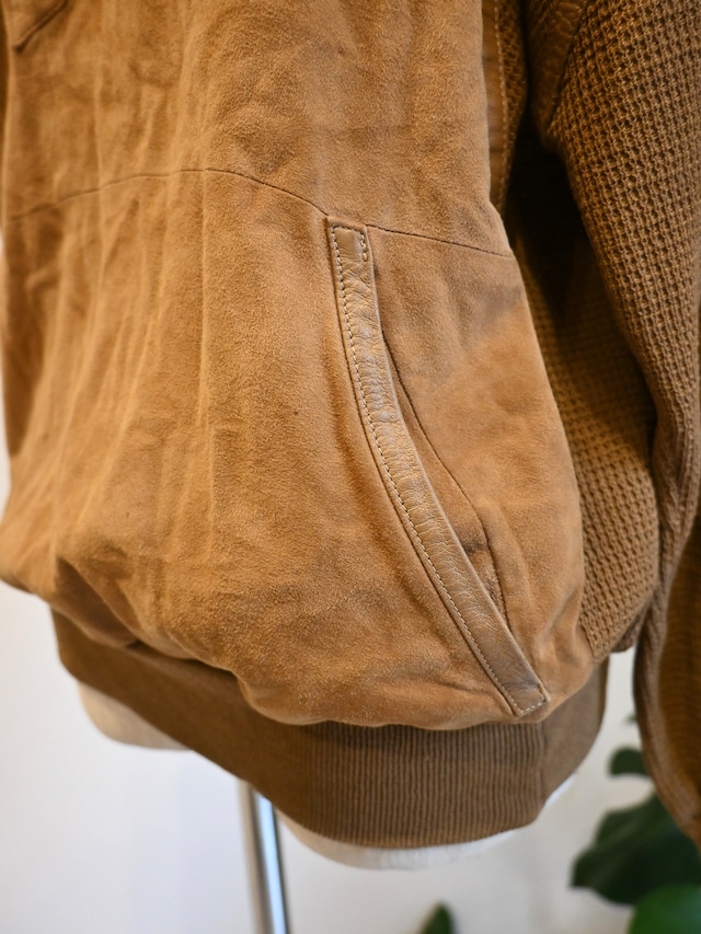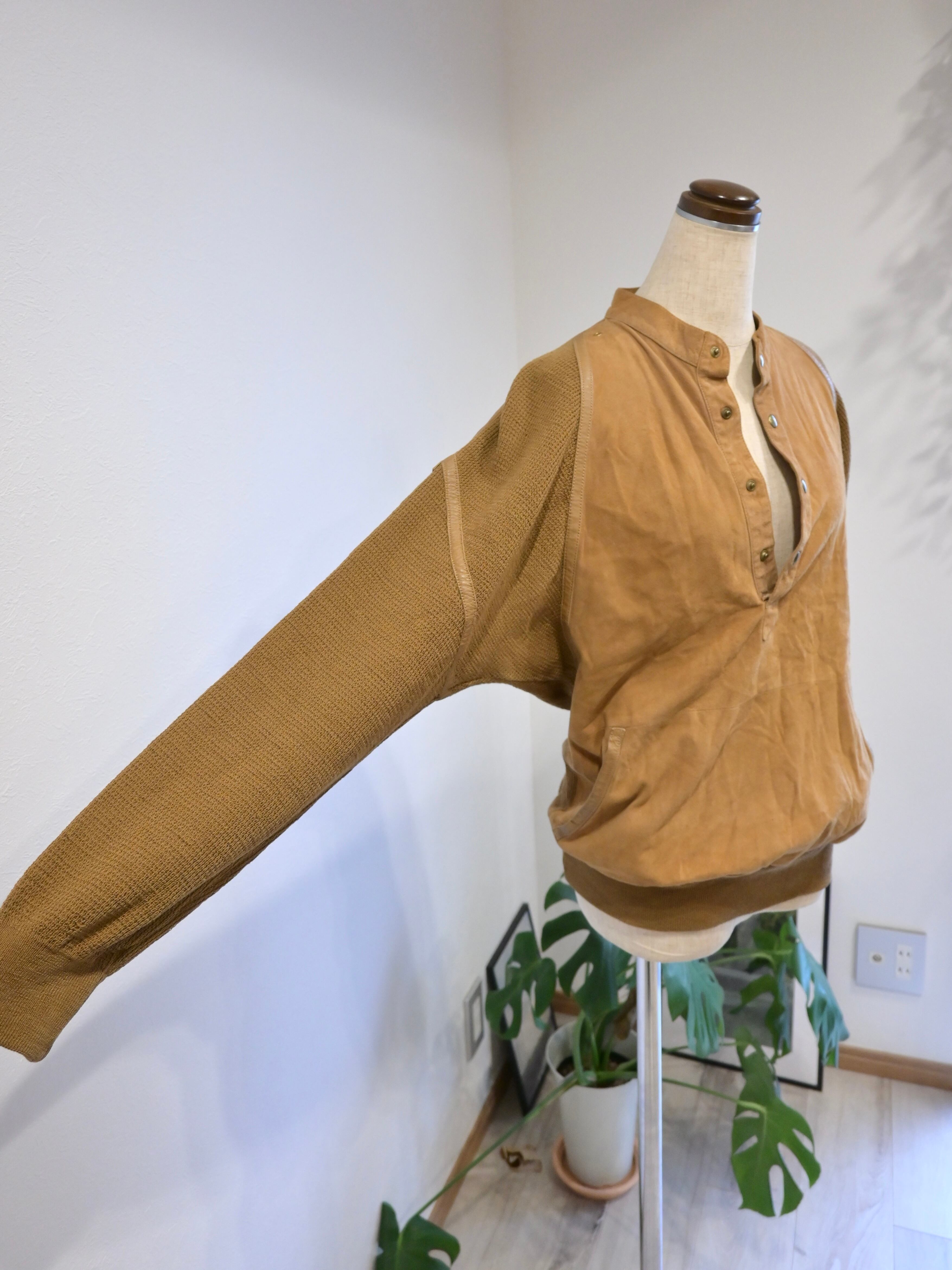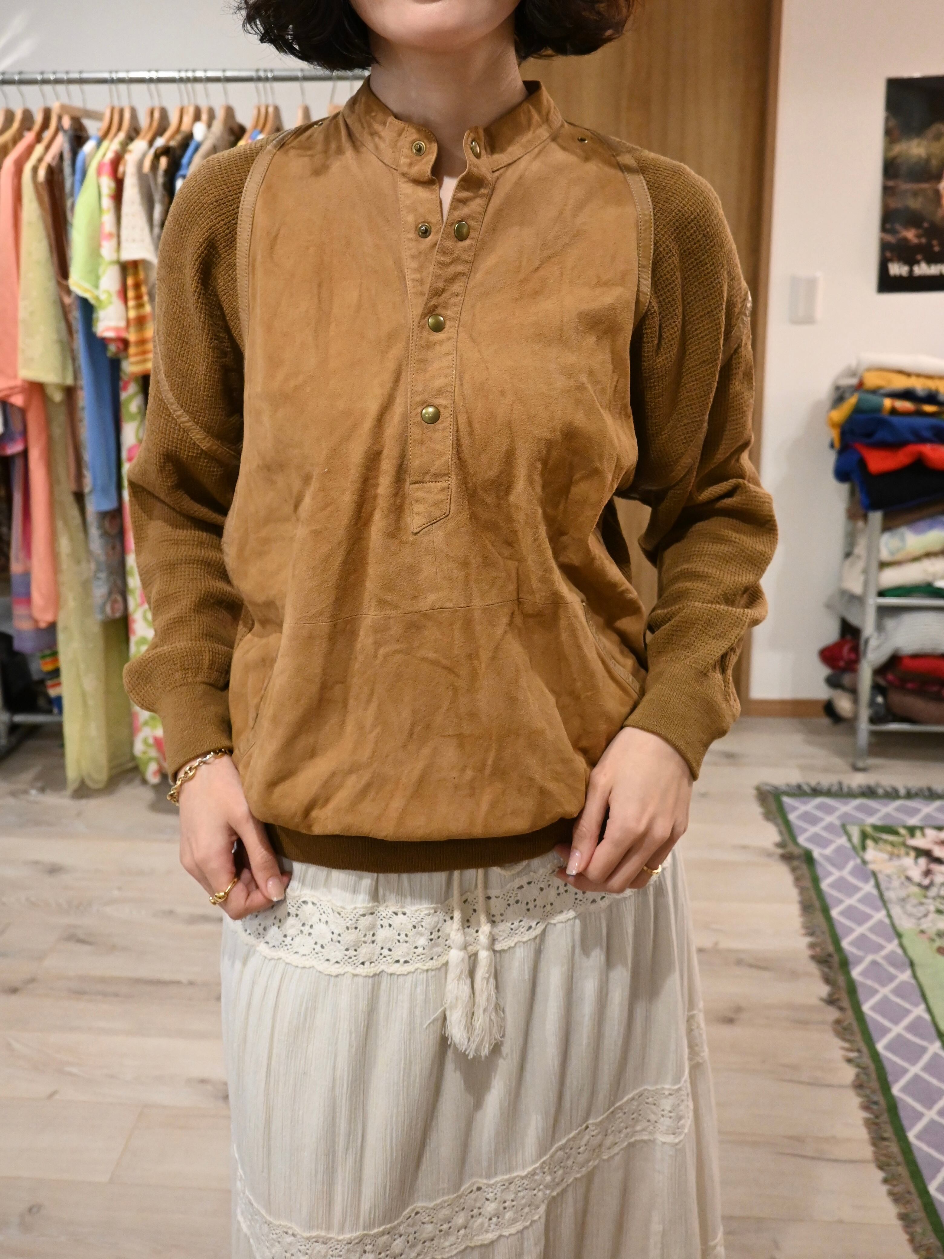 前身頃はスエード、後ろ身頃と袖はニットの切り替えプルオーバー