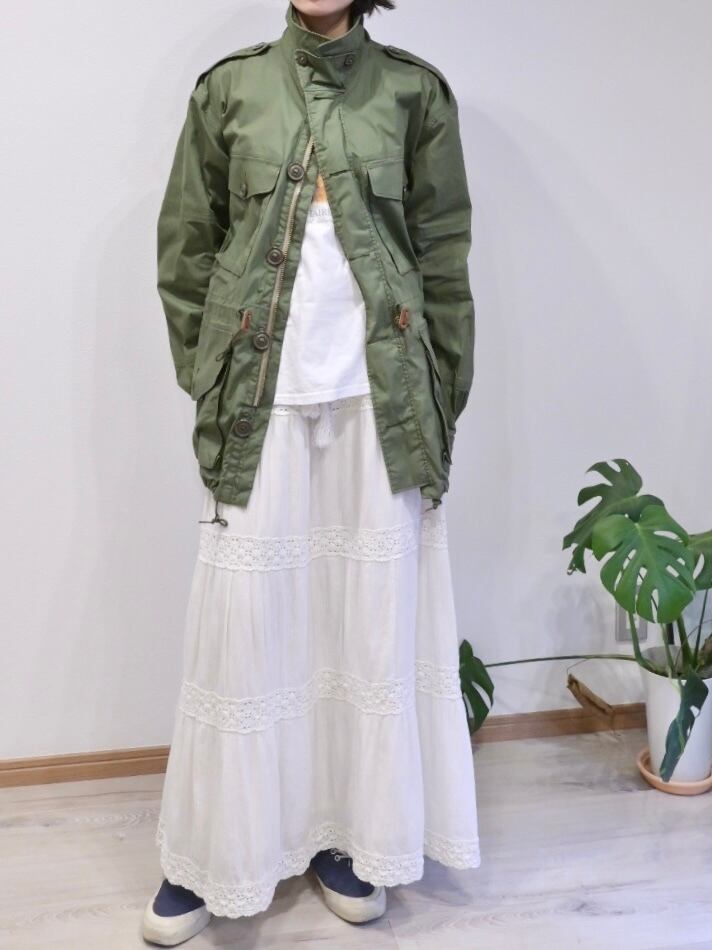 デッドストックならではのパリッとしたハリ感は、着込むほどに身体に馴染み、自分だけの一着へと育っていく過程もお楽しみいただけます。