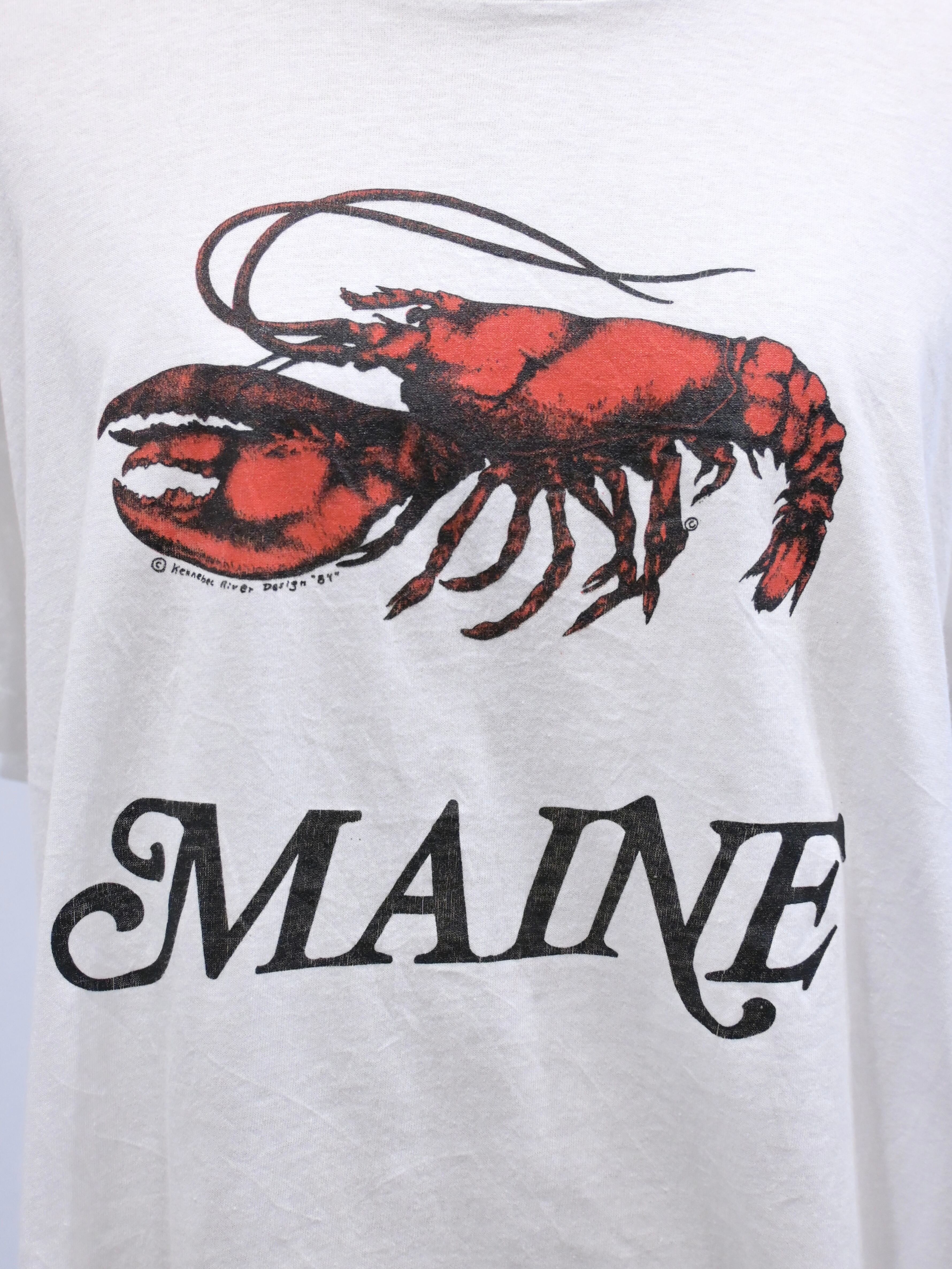メイン州の象徴のロブスターが大胆にプリントされた、キャッチーながらクラシックな表情