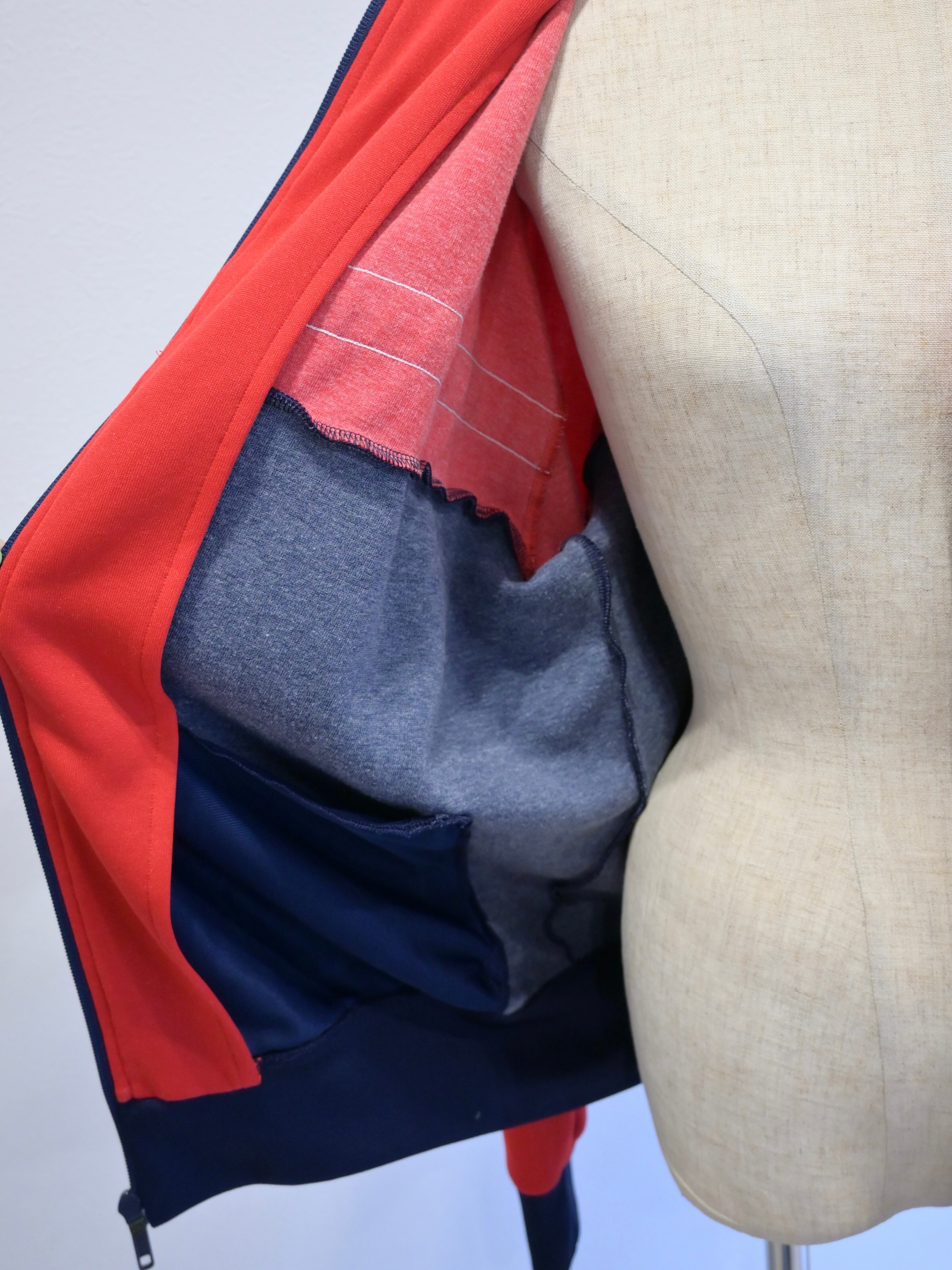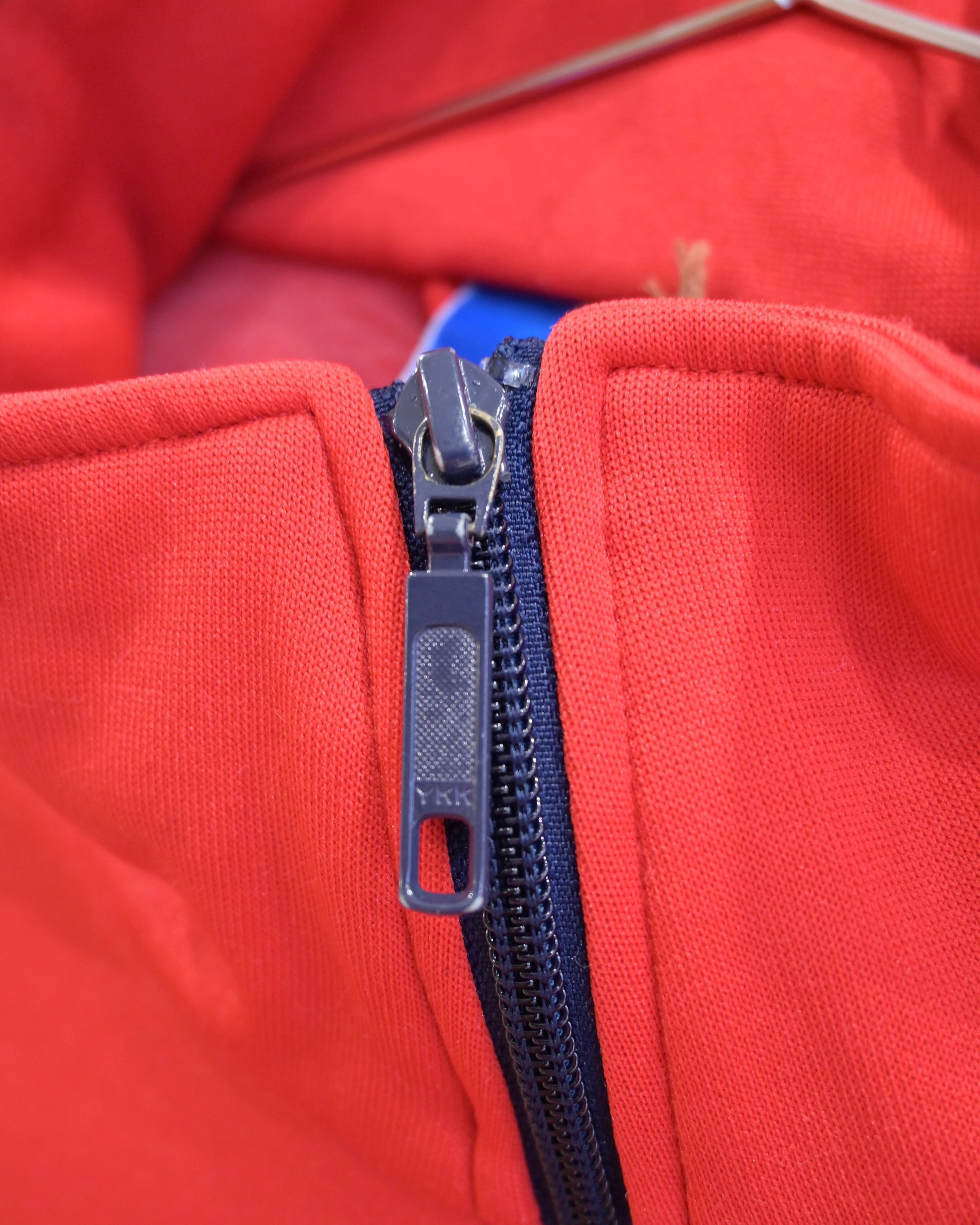 若干前身頃のネイビー部分に毛羽立ちがございますが、目立つダメージはございません。