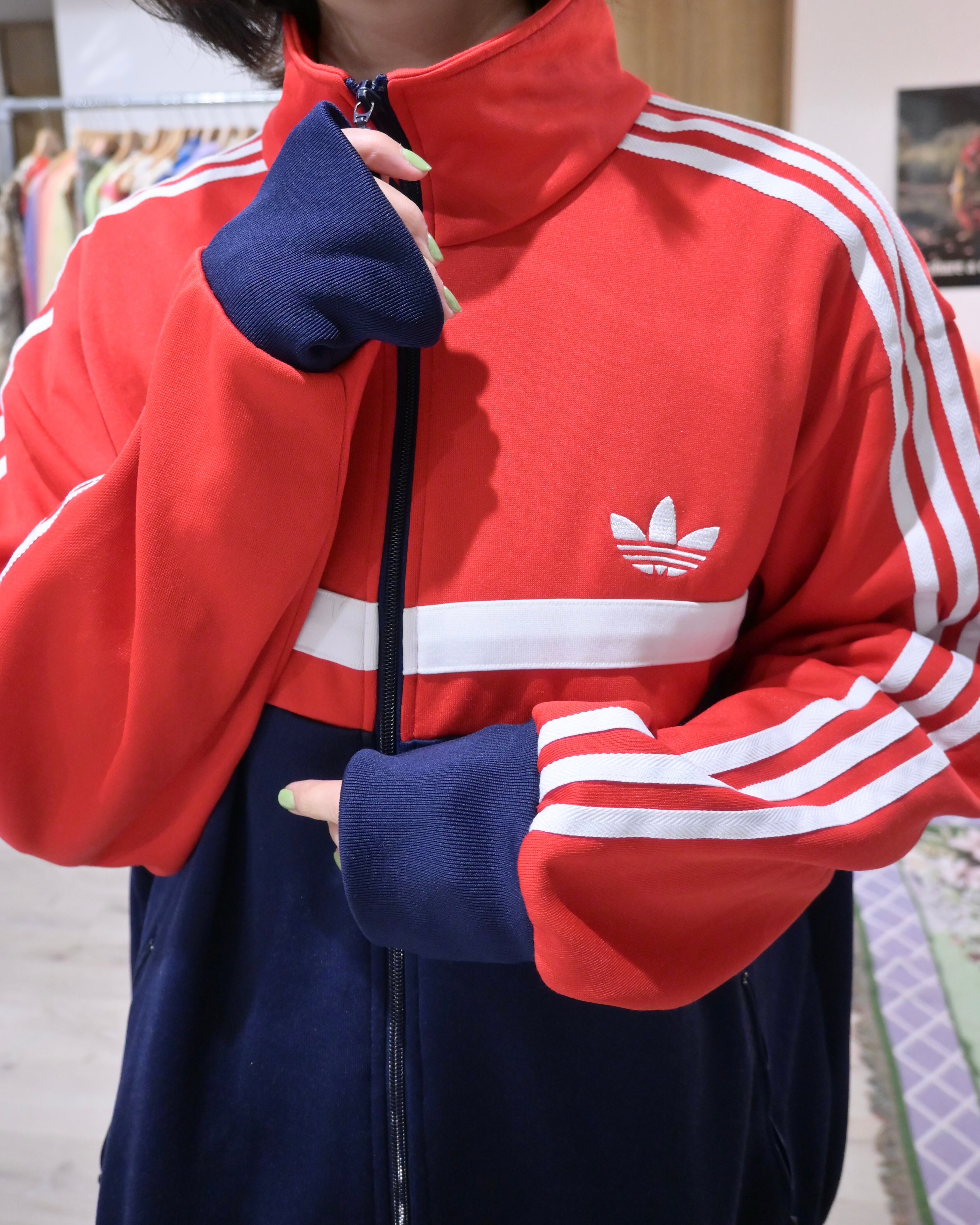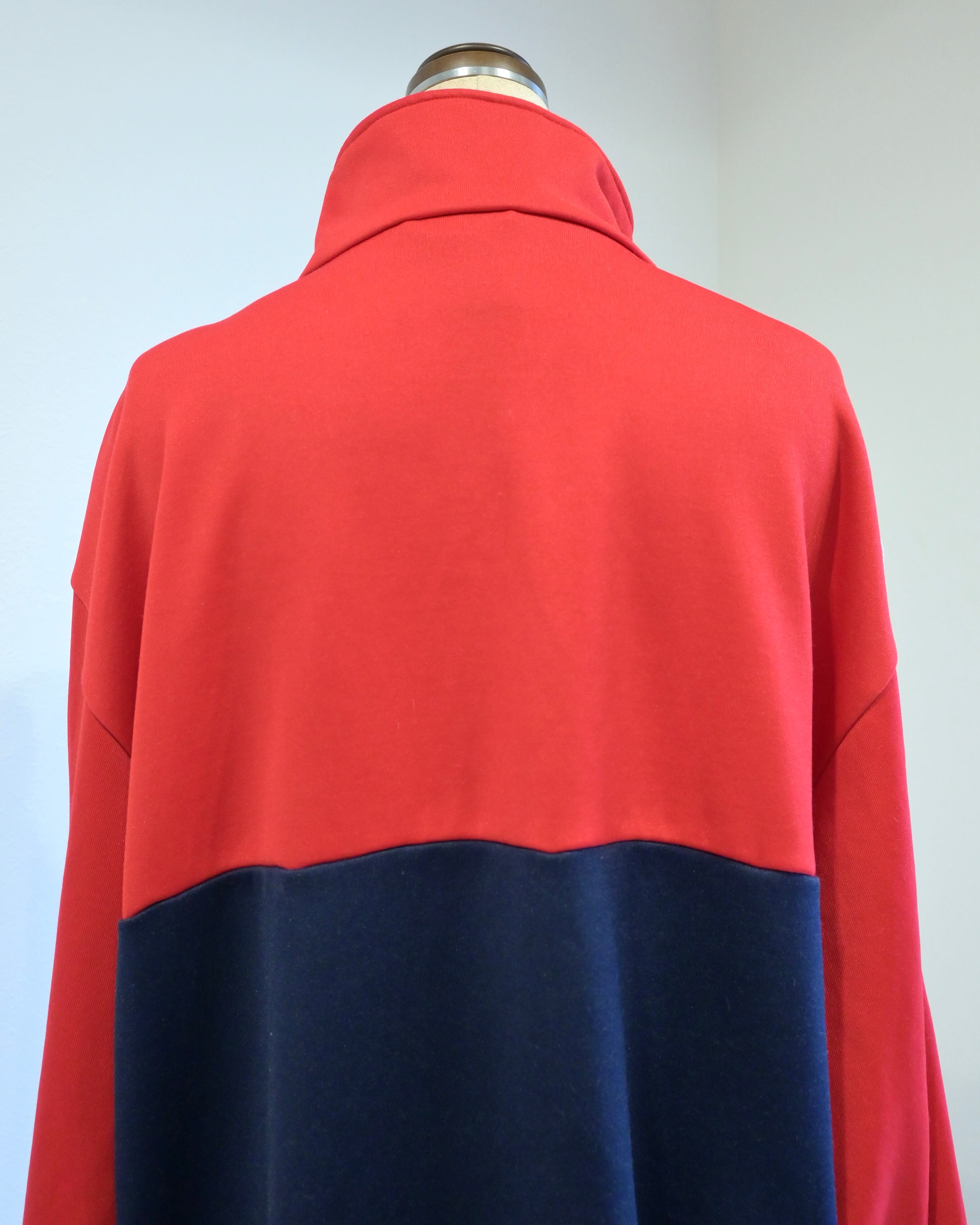 レッドとネイビーのバイカラーにホワイトのラインが映える配色です。