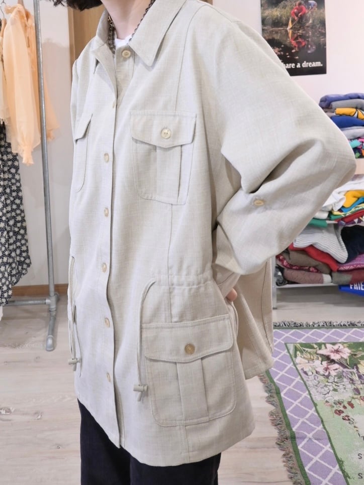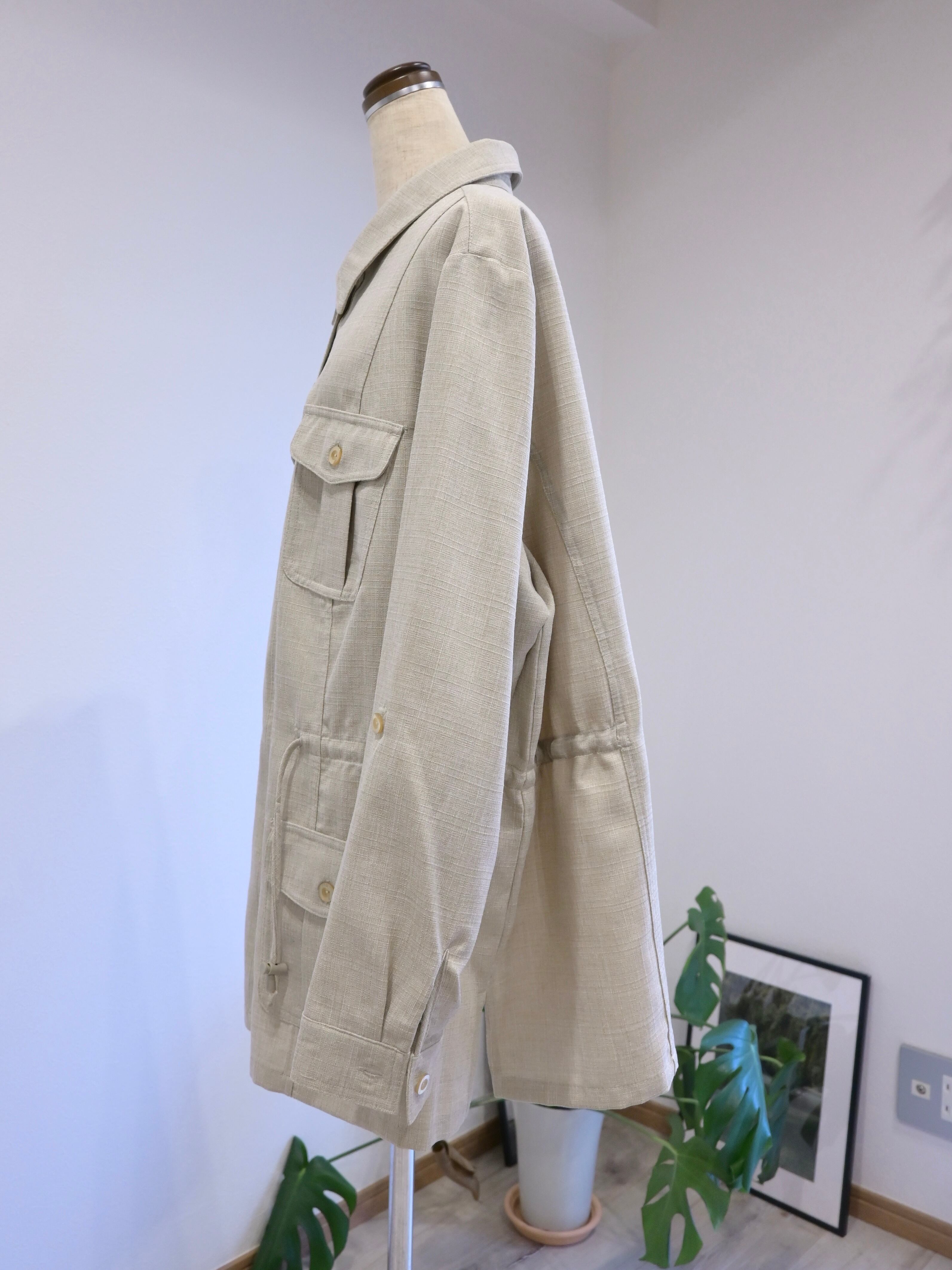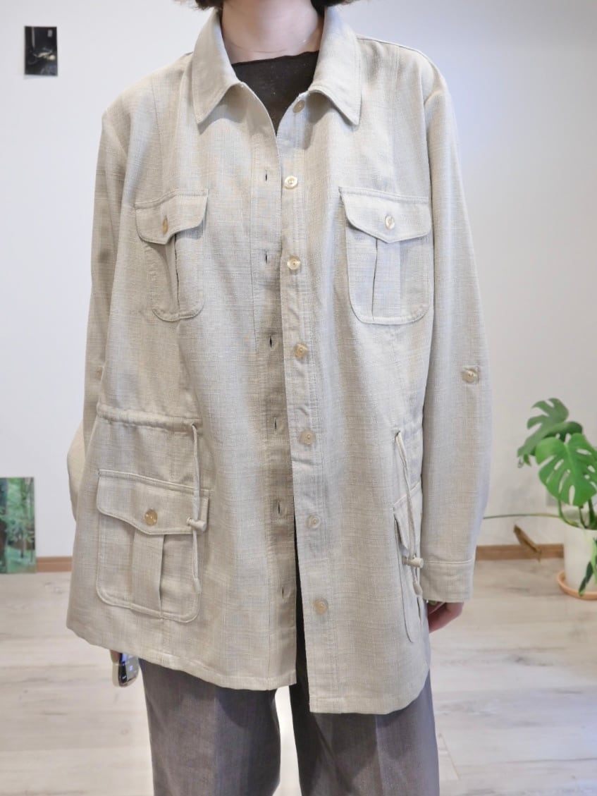 タグの欠損により正確な年代や組成は不明ですが、リネンのような清涼感のある見た目ながら、シワになりにくい弾力のある質感。