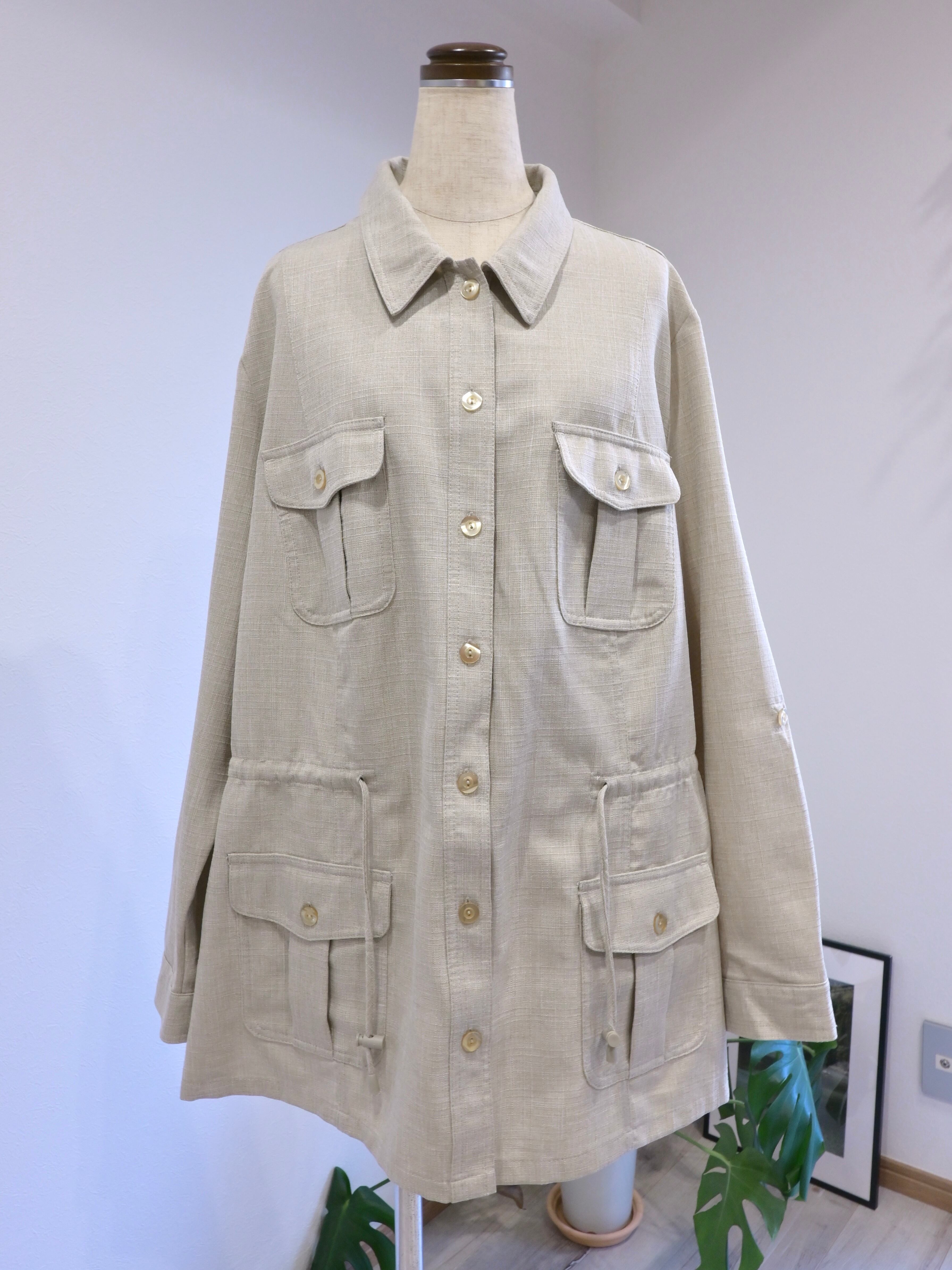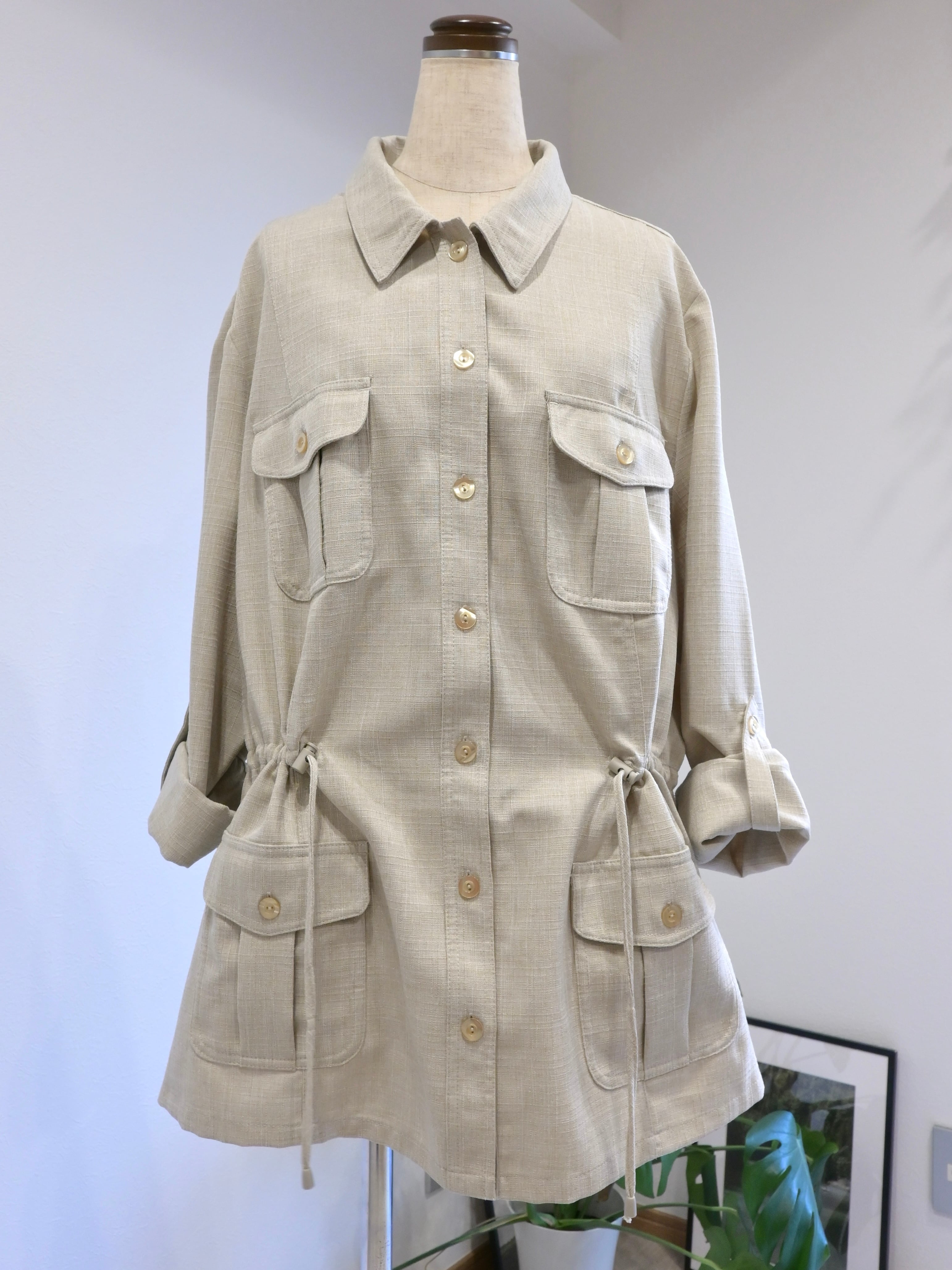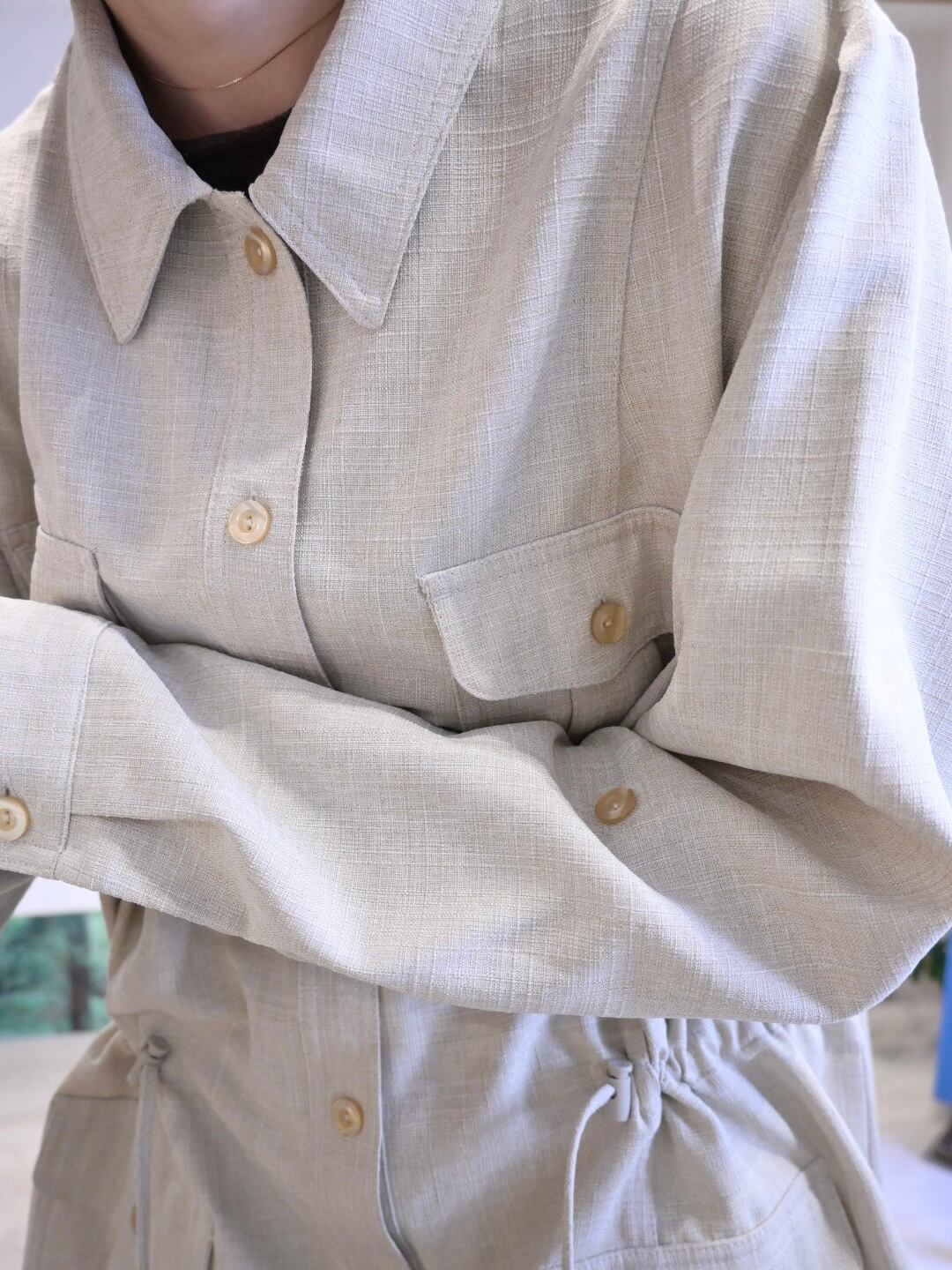 透け感はほとんどなく、一枚でも、軽い羽織りとしても活用できる一着です。