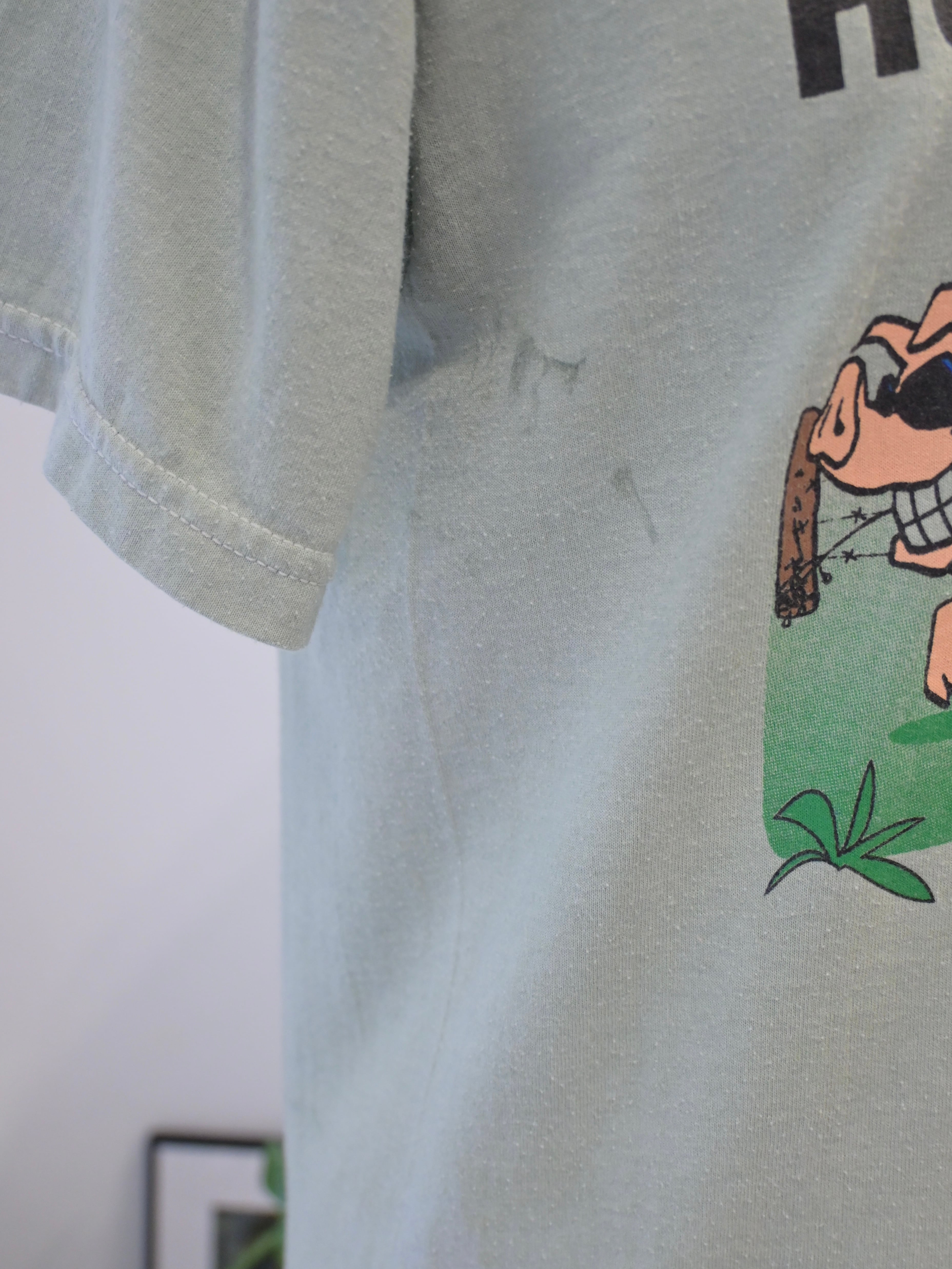 "Who Let the Hogs Out!!!"のフレーズは、おそらく2000年に大ヒットしたBaha Menの楽曲"Who Let the Dogs Out"を文字ったもの。