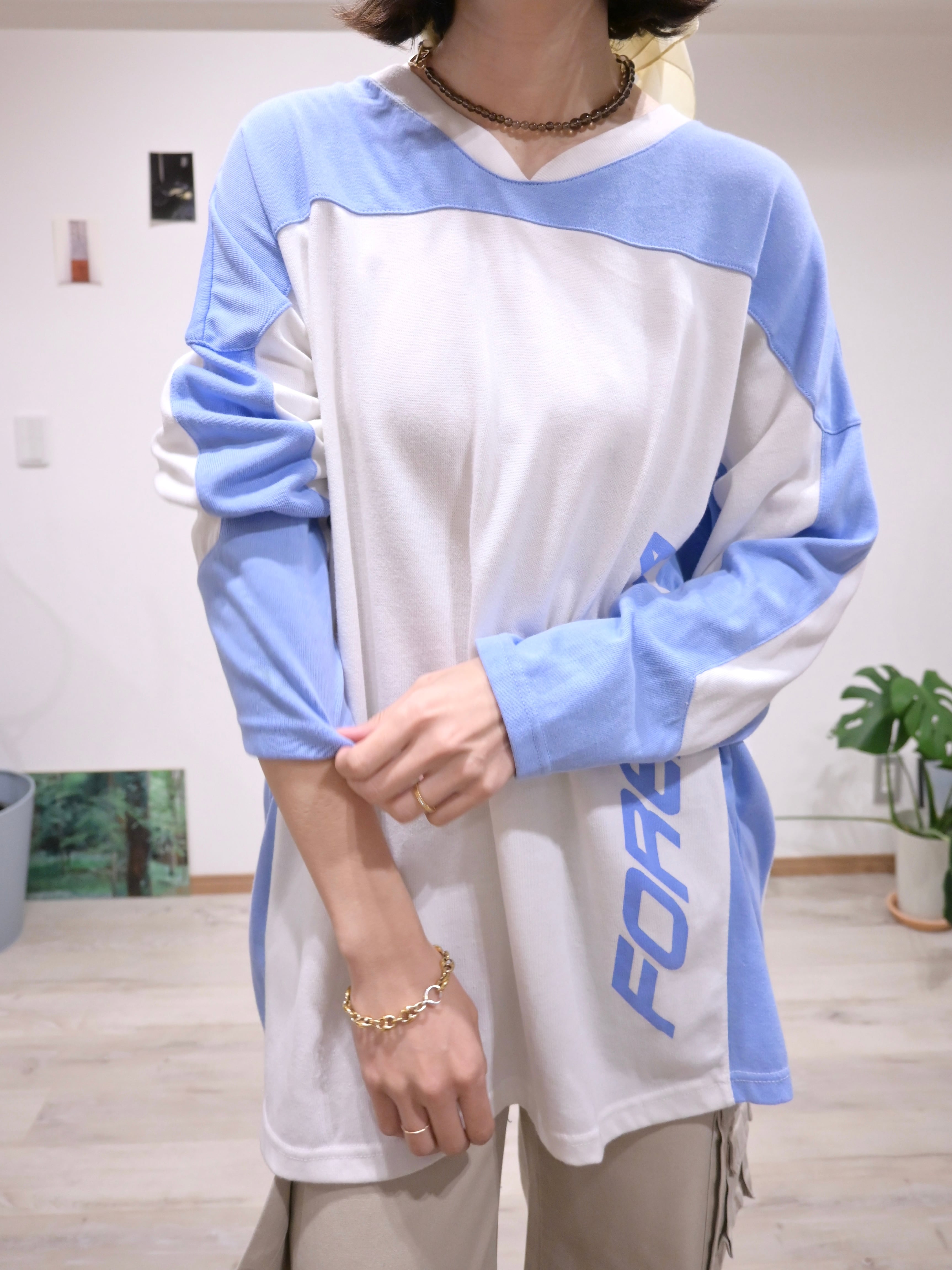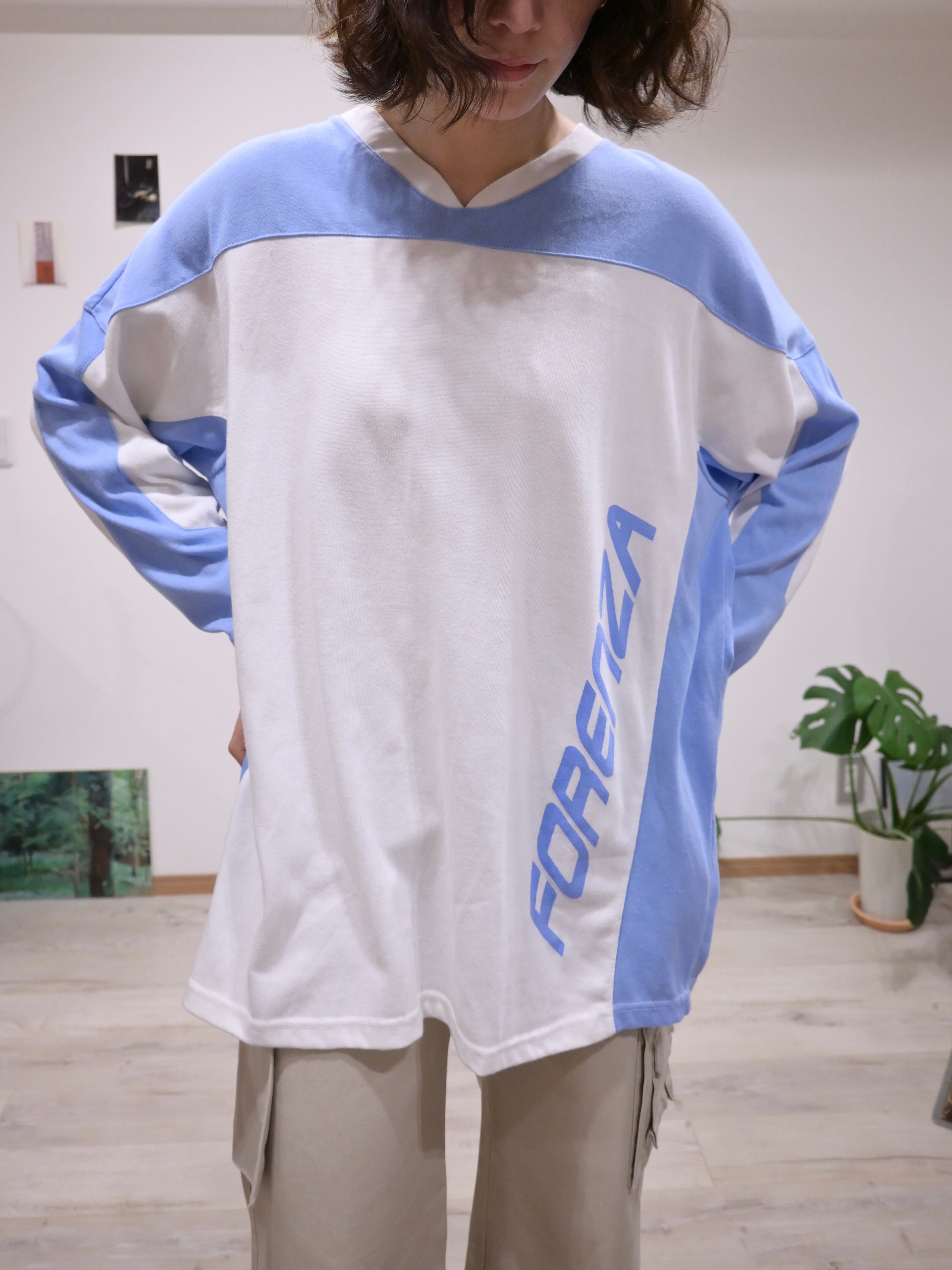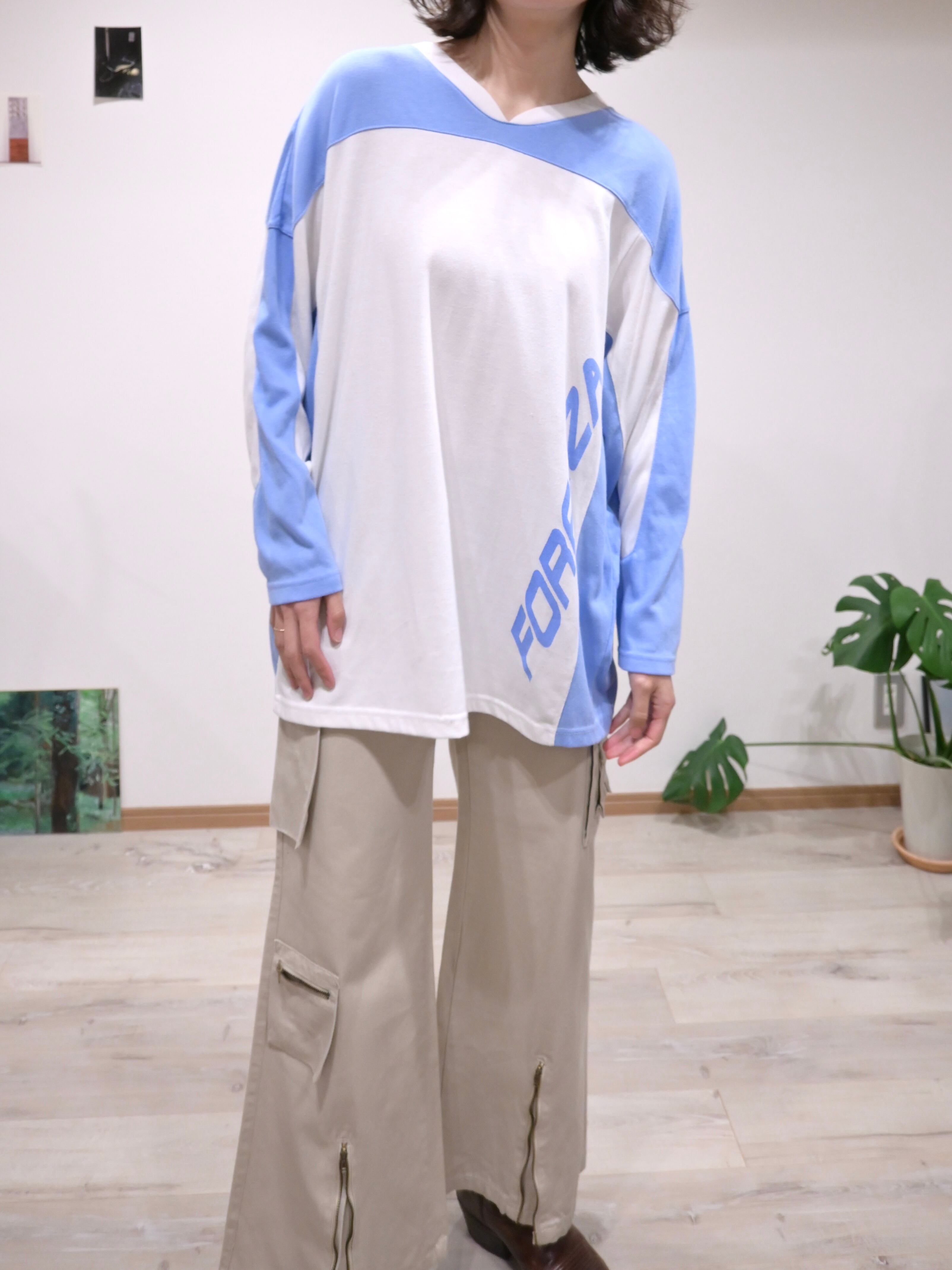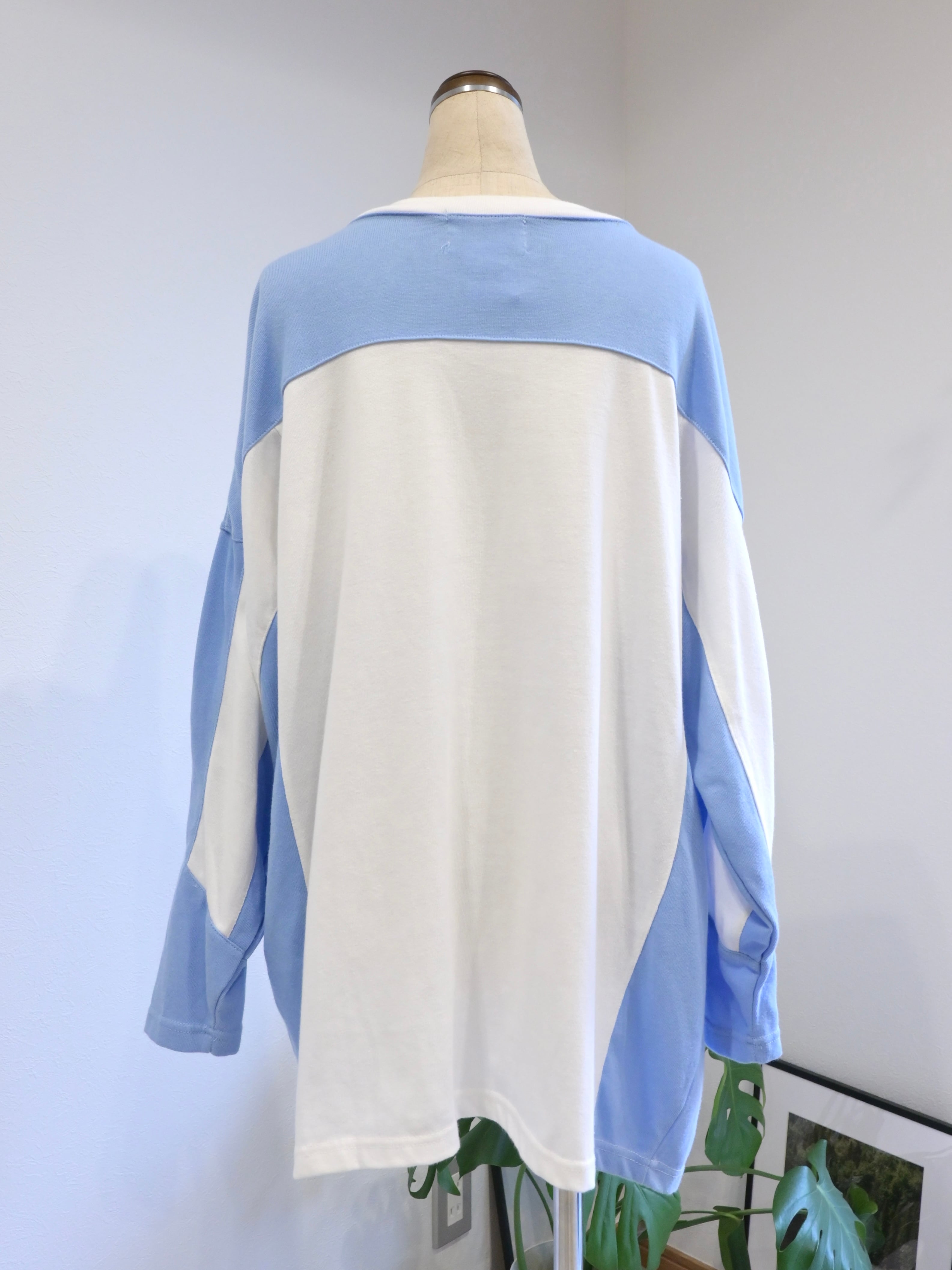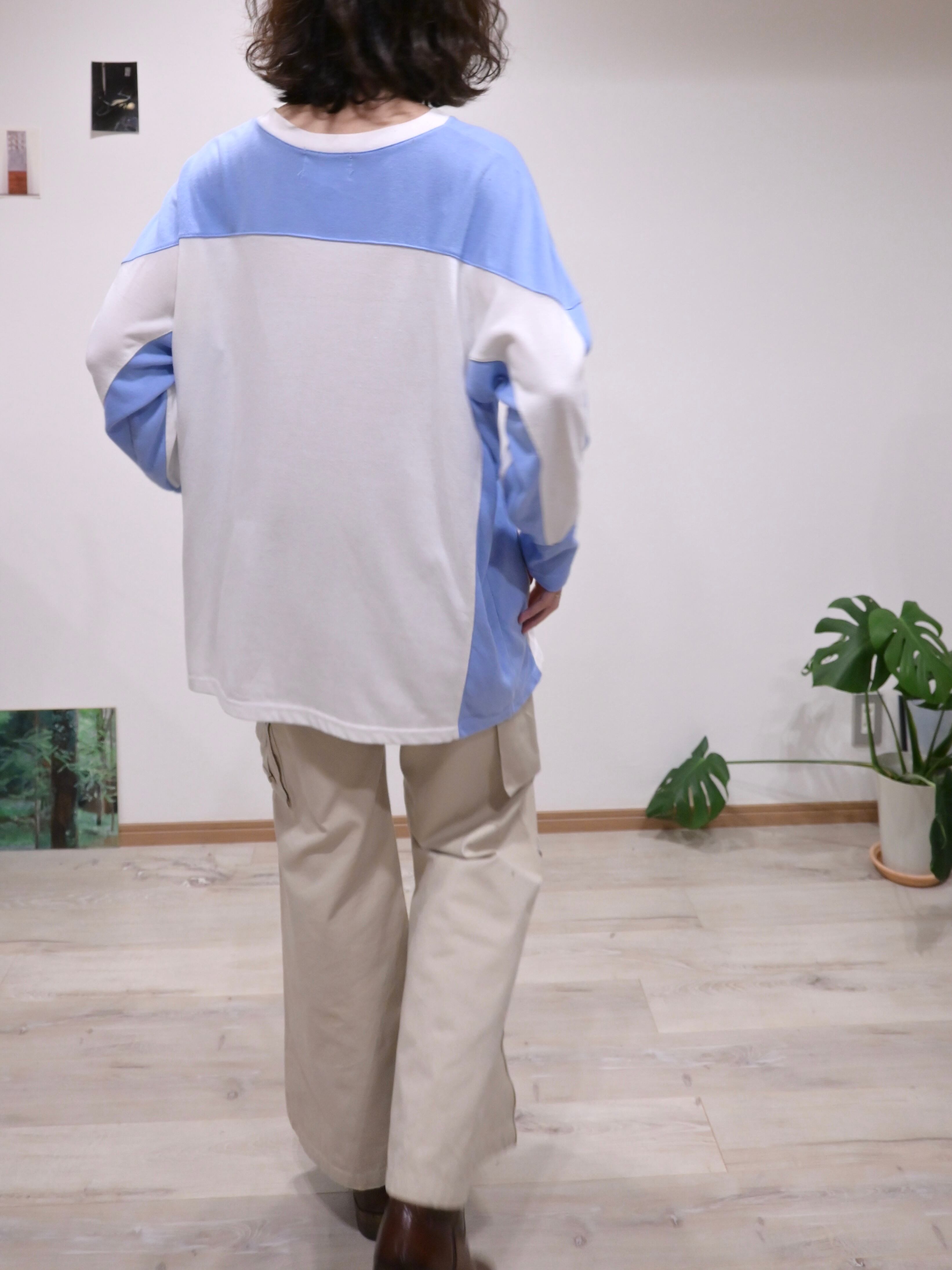 オーバーサイズ、肩のラインが落ちるリラックスした着心地です。