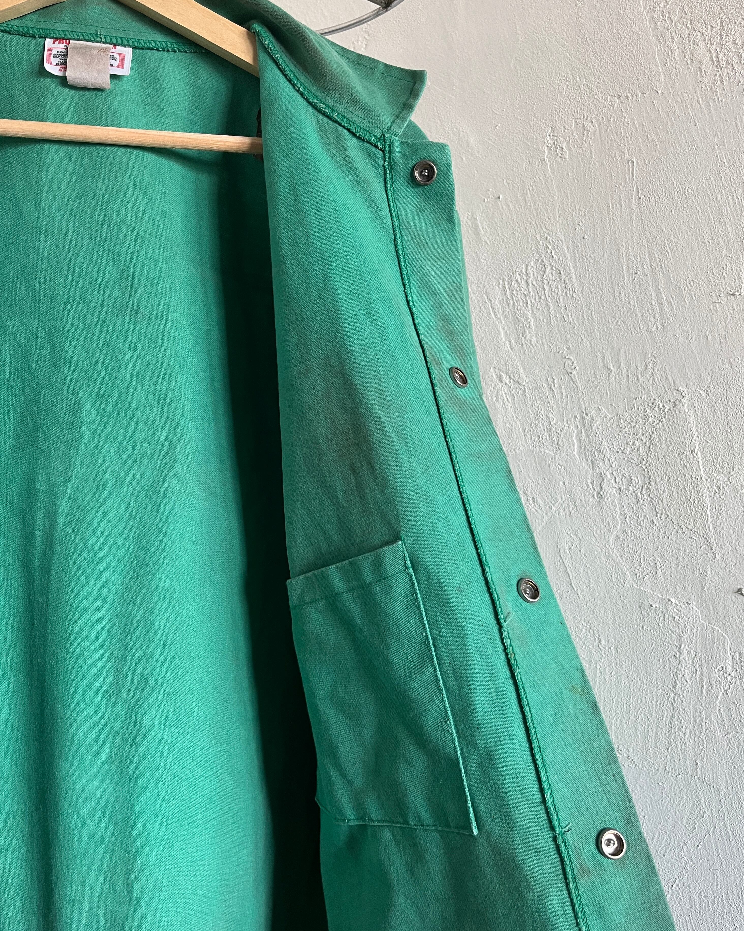 左胸に手書きで書かれた"CONNIE"、右肩のリペア、全体的なダメージが実際に作業着として使われていたと思われる唯一無二の一枚です。