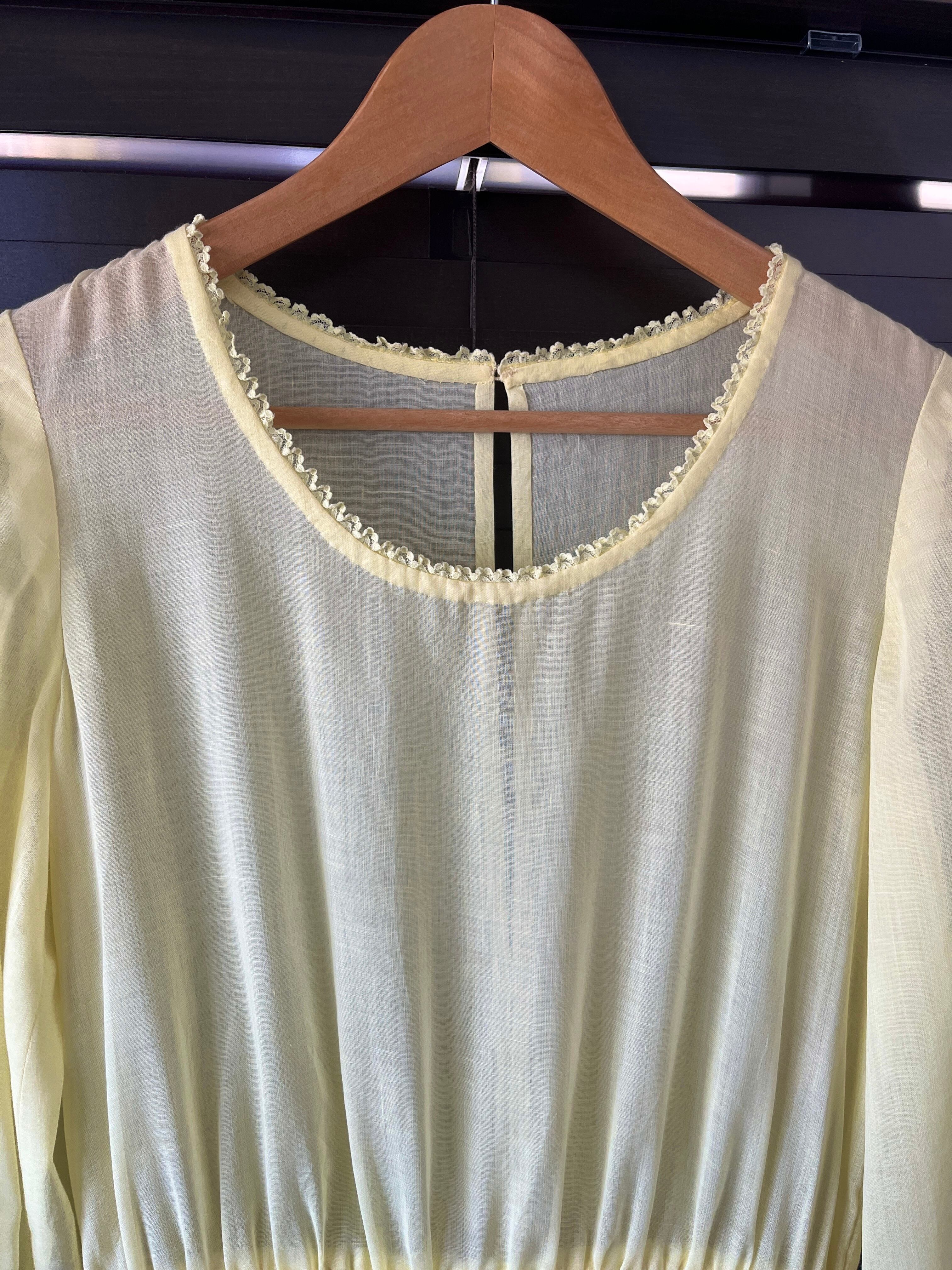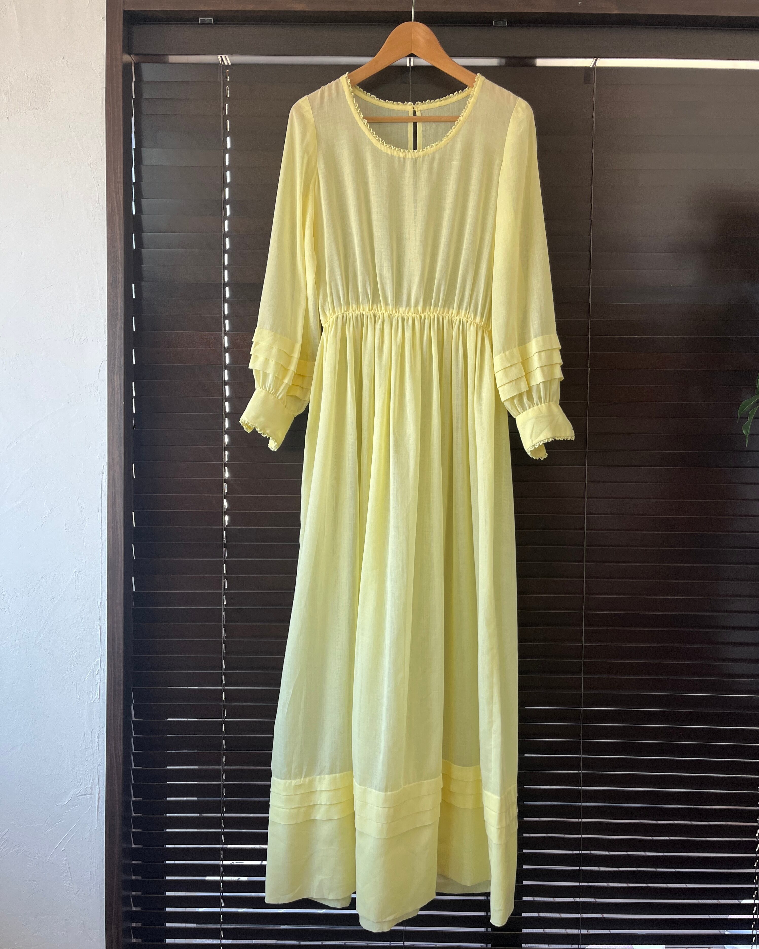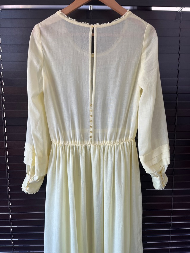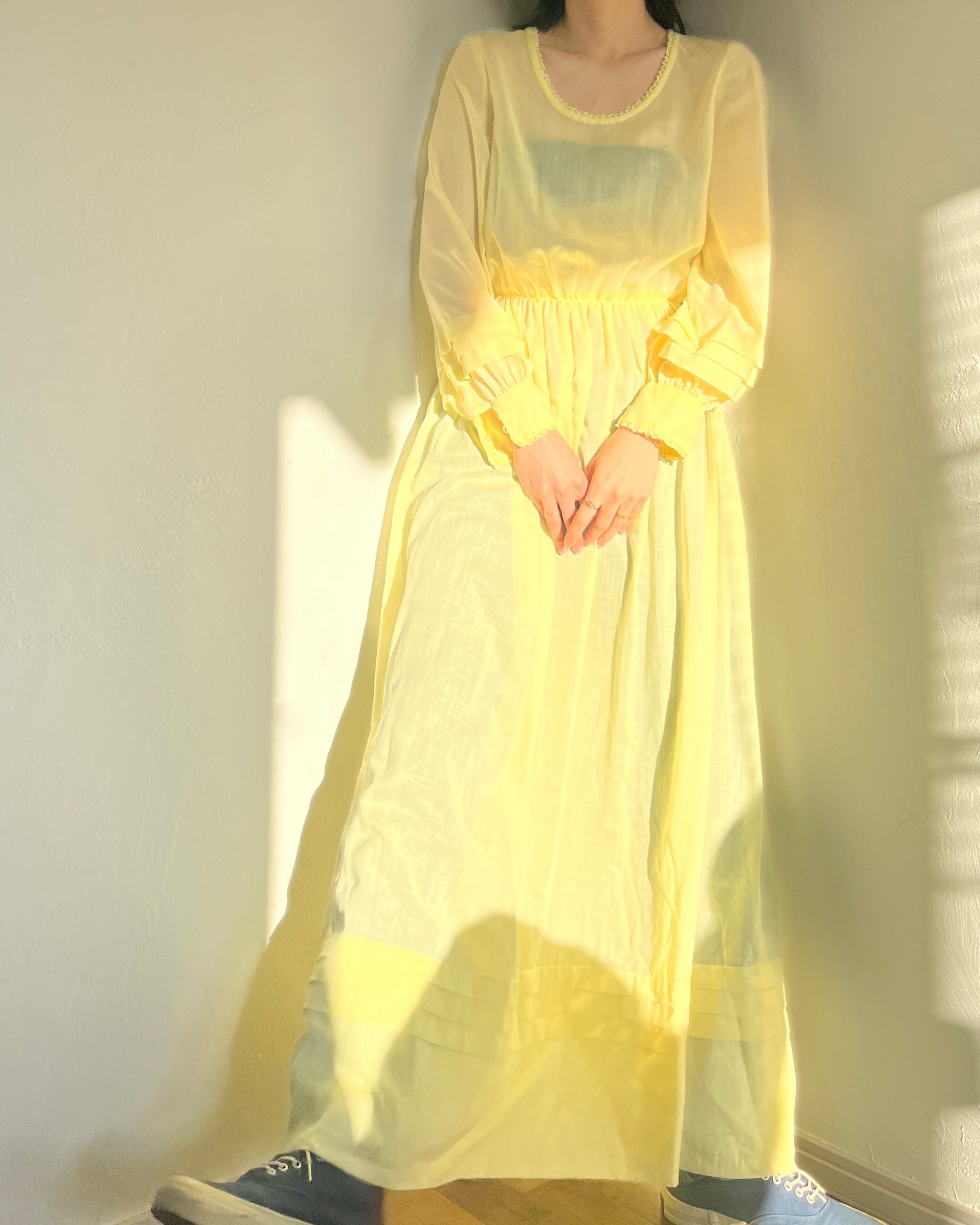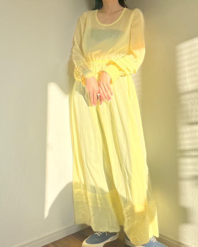 透け感のあるレモンイエローのワンピース。